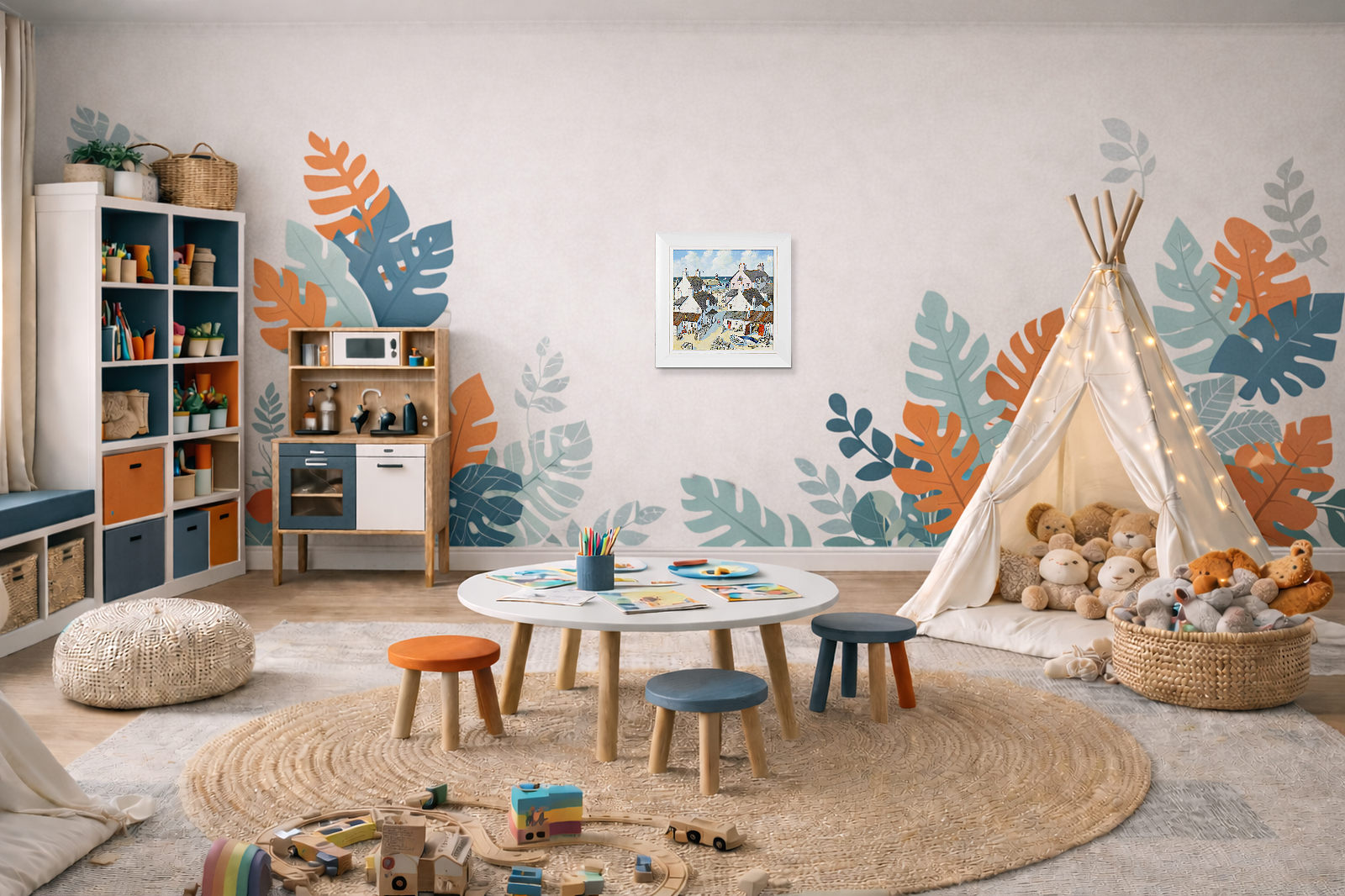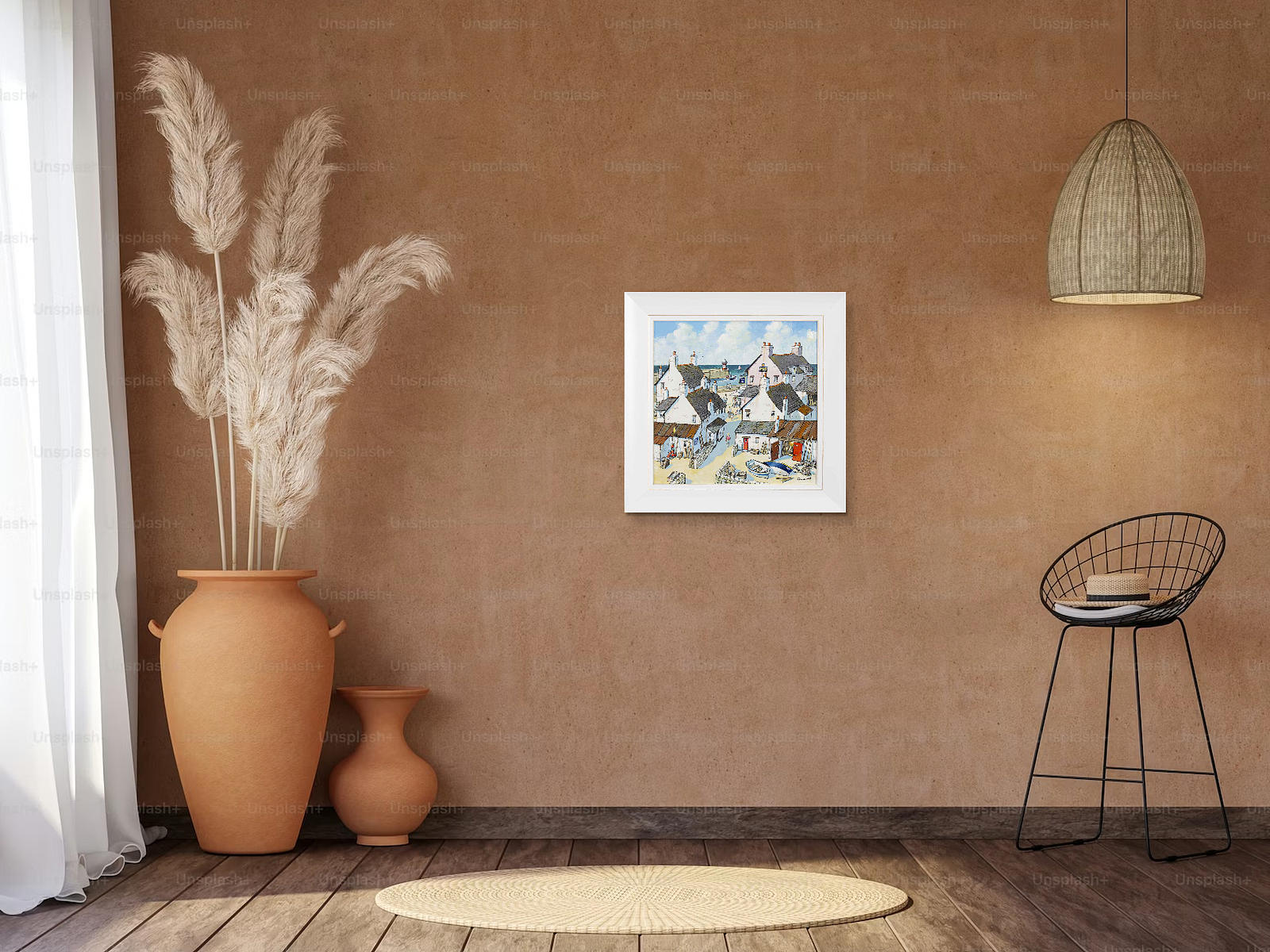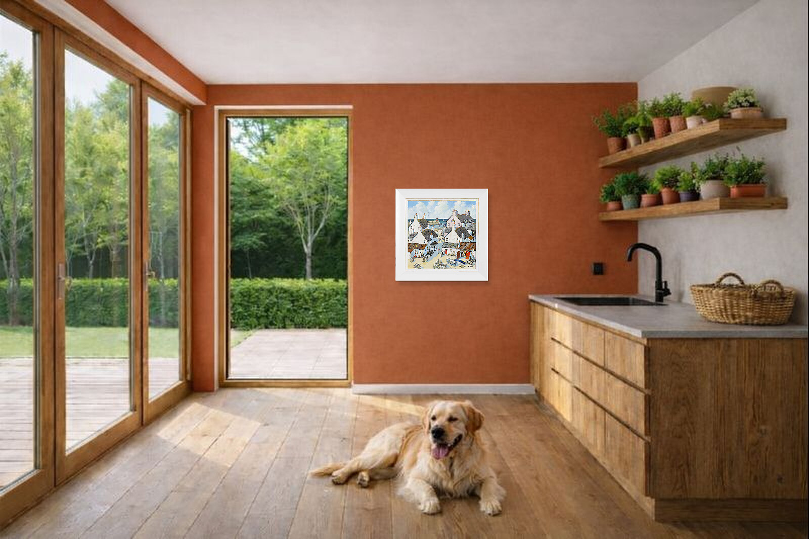 Playful coastal painting inspired the British south coast in Alan Smith’s signature contemporary style. Presented in white frame with edge details as shown and ready to hang.