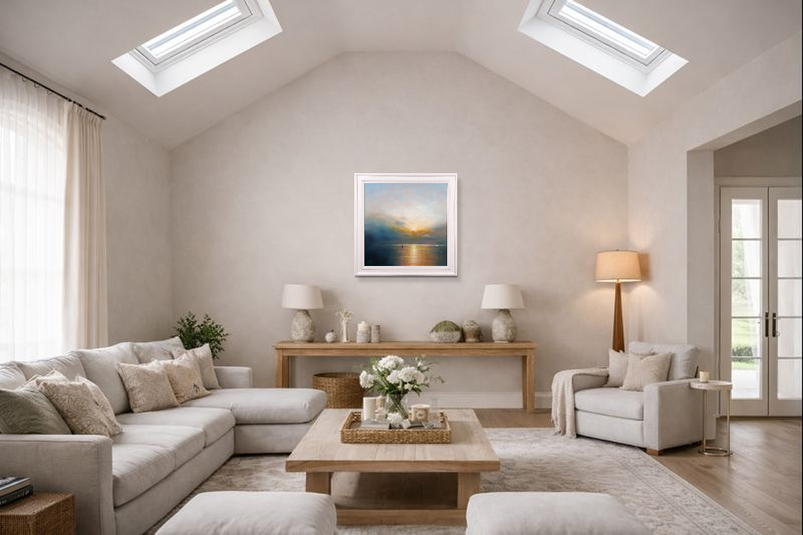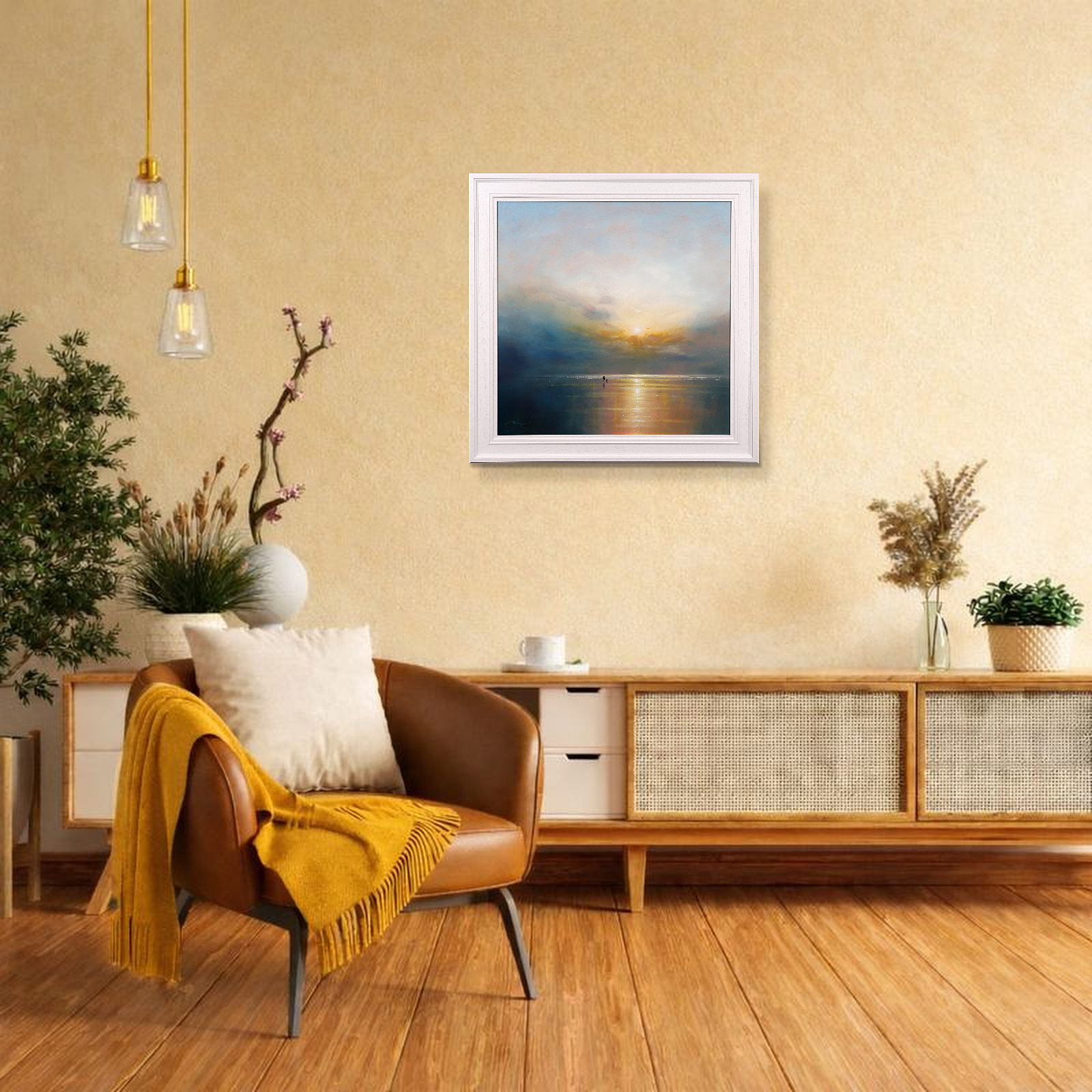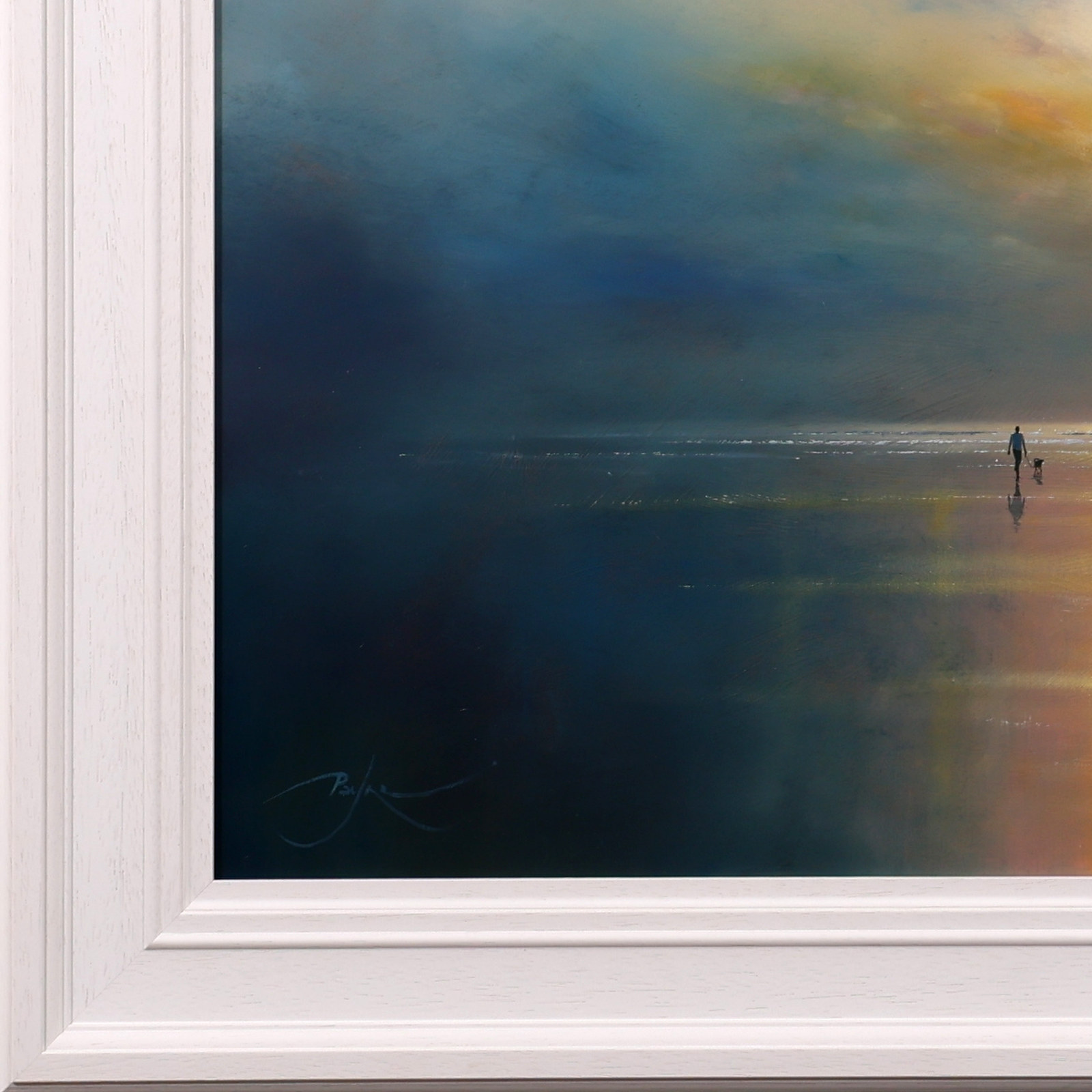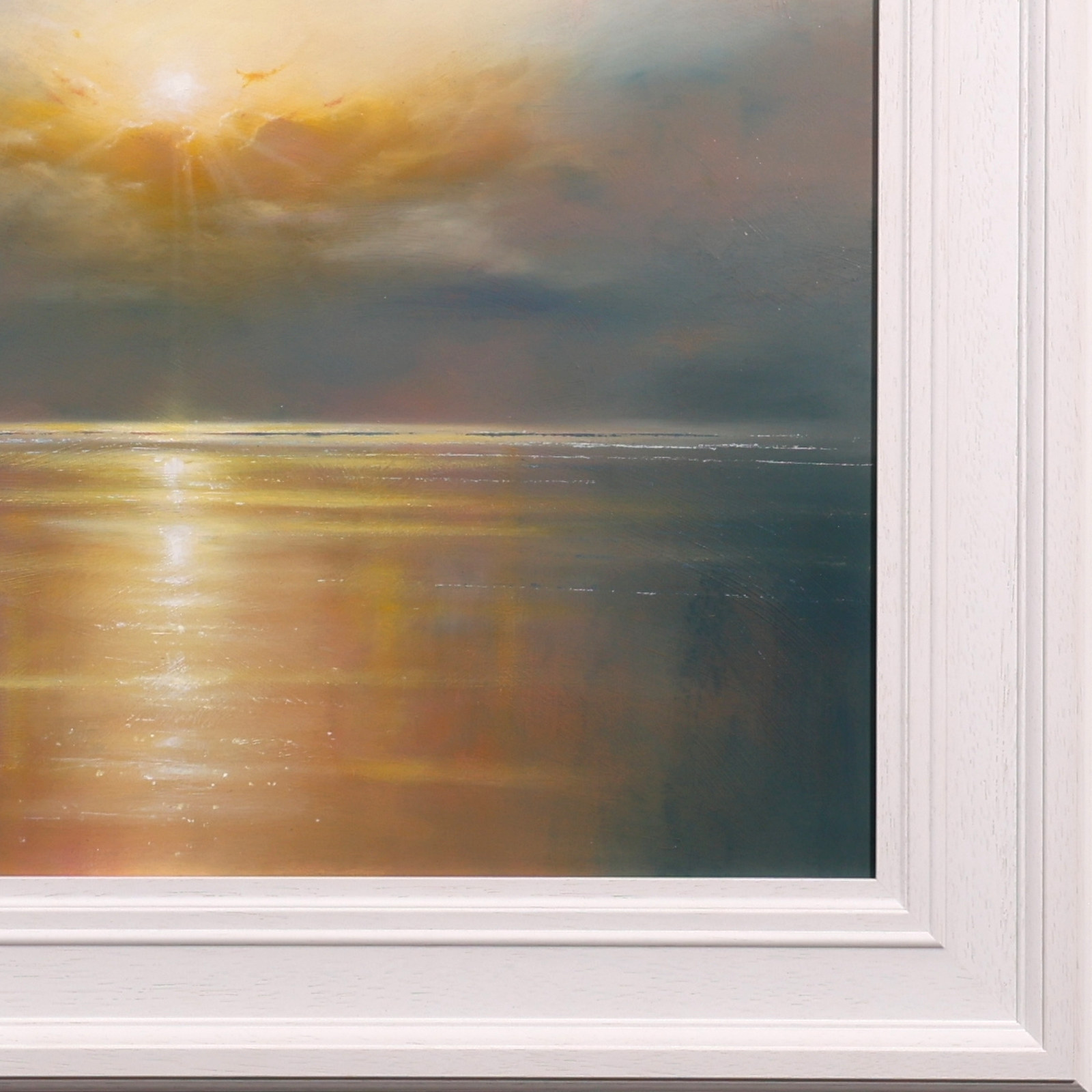 A sparkling seascape by British artist Ben Payne. Presented in white painted wood frame as shown and ready to hang.