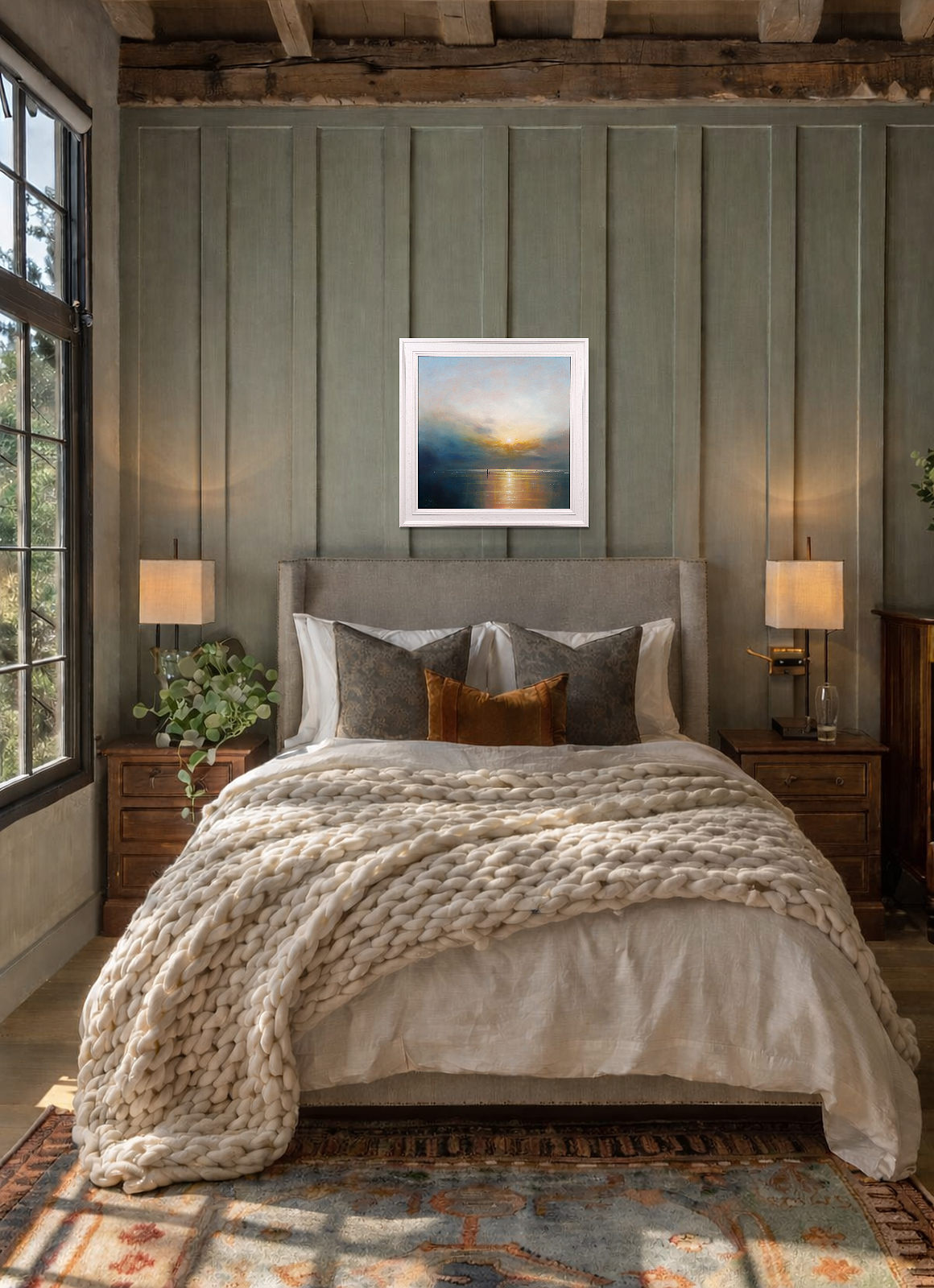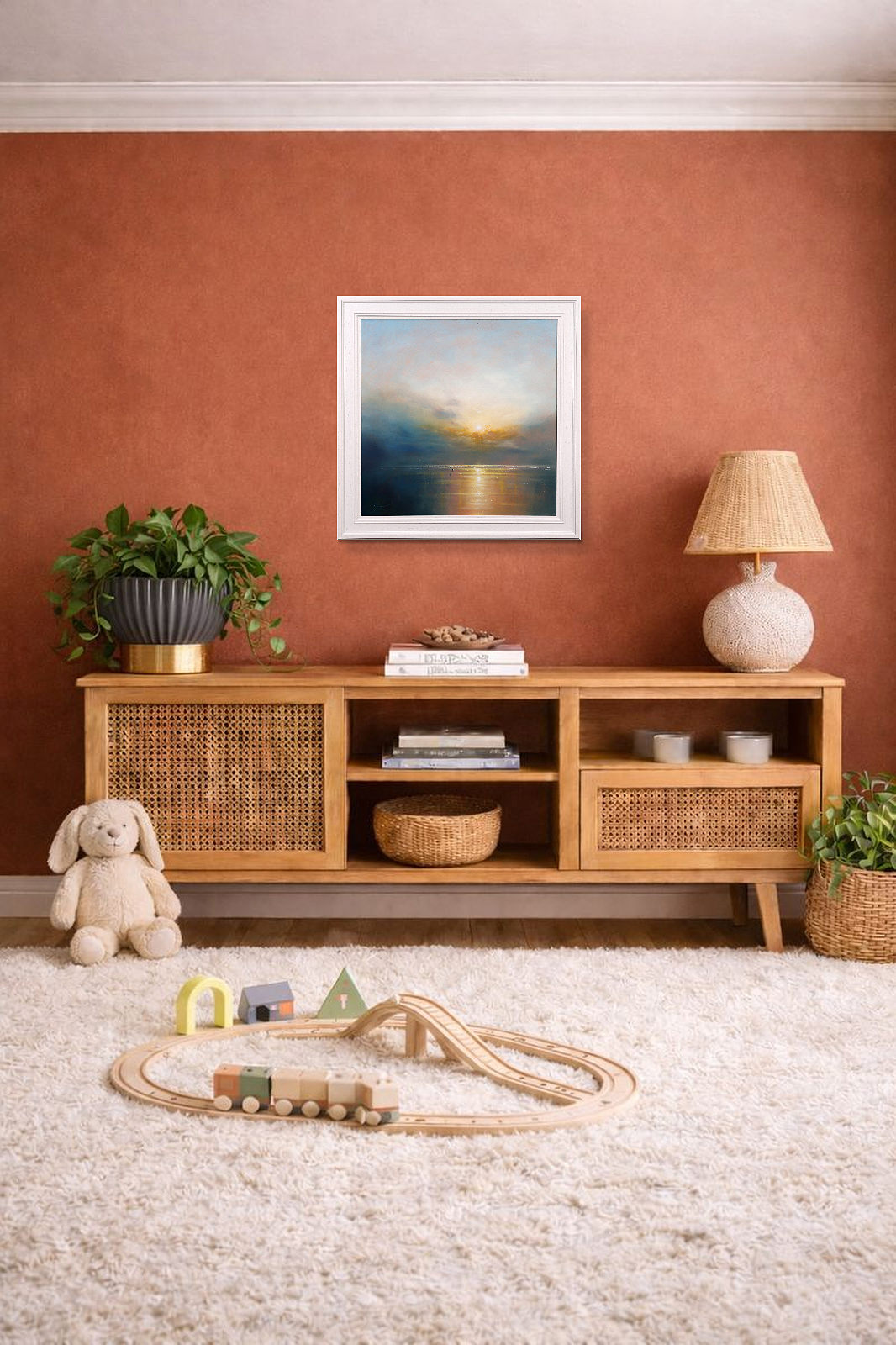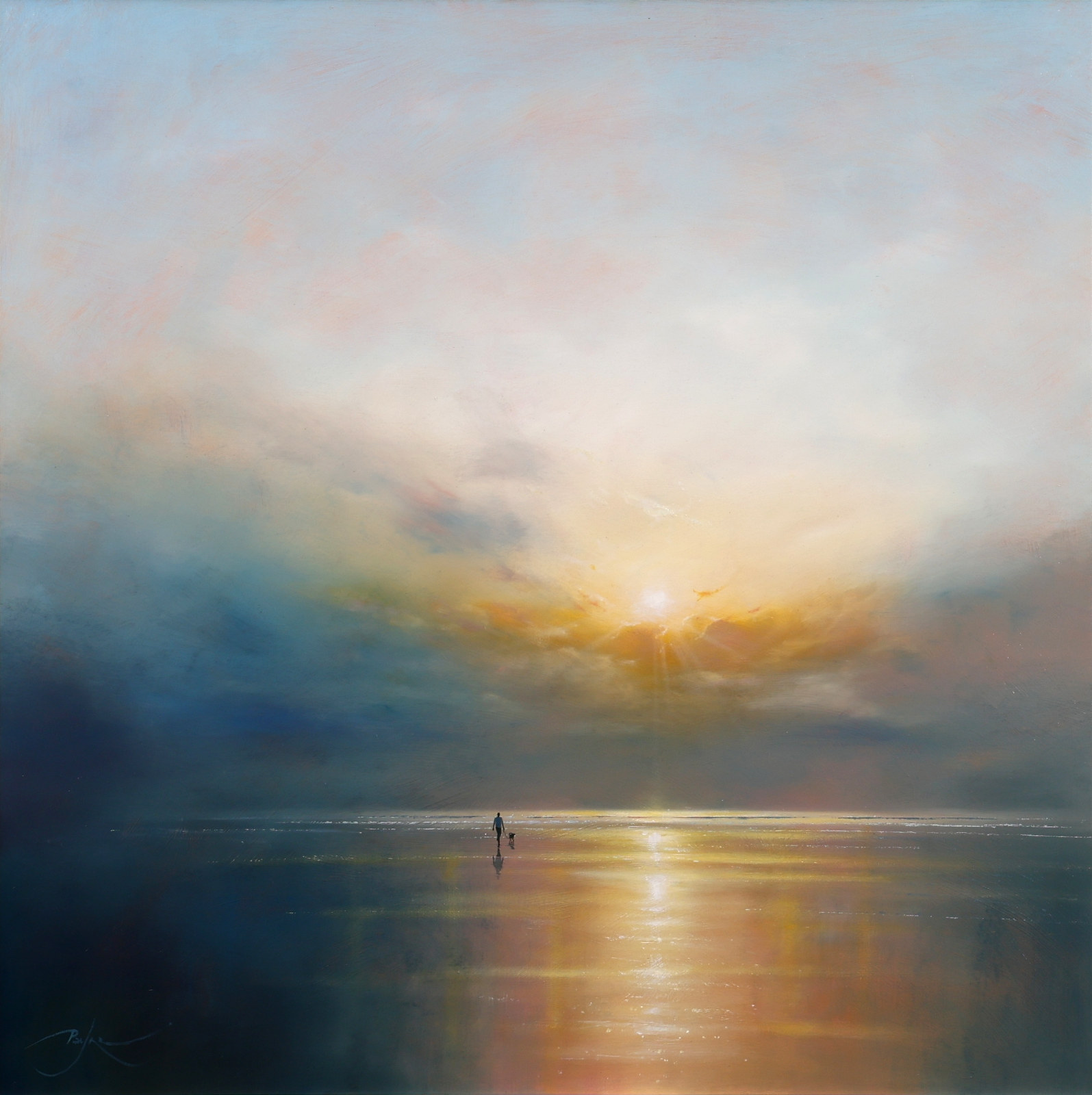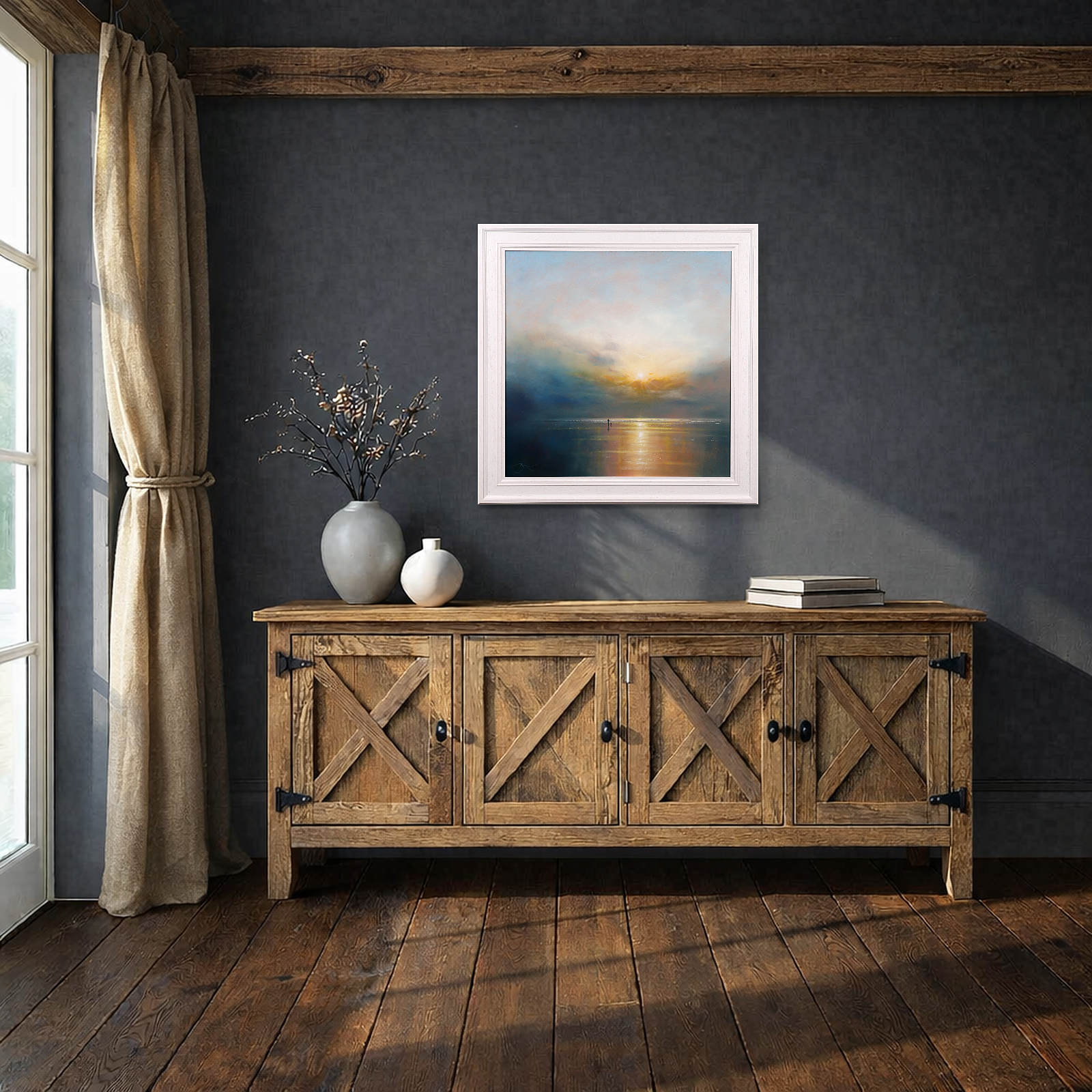 A sparkling seascape by British artist Ben Payne. Presented in white painted wood frame as shown and ready to hang.