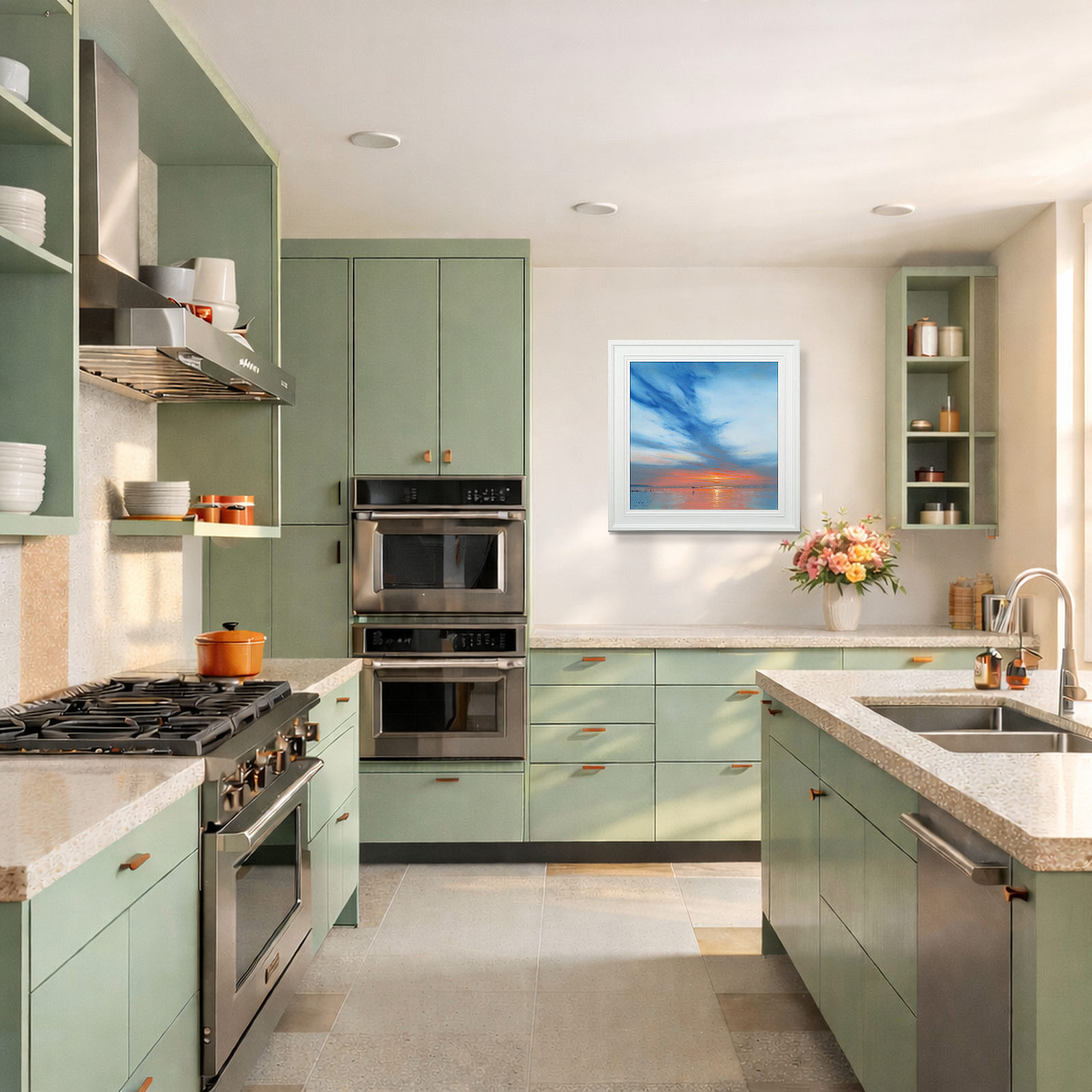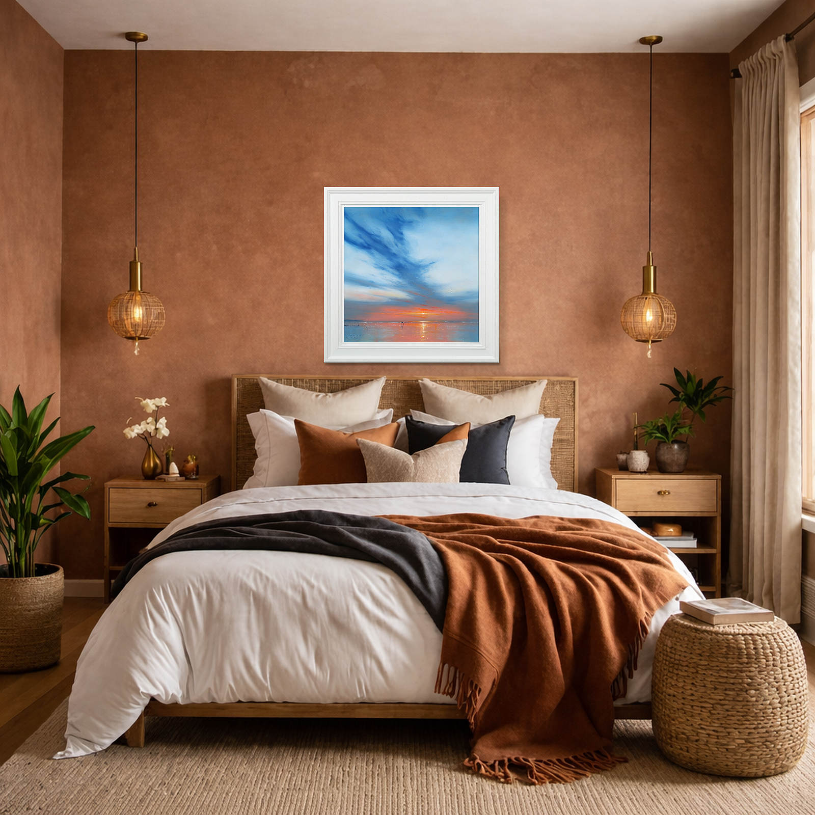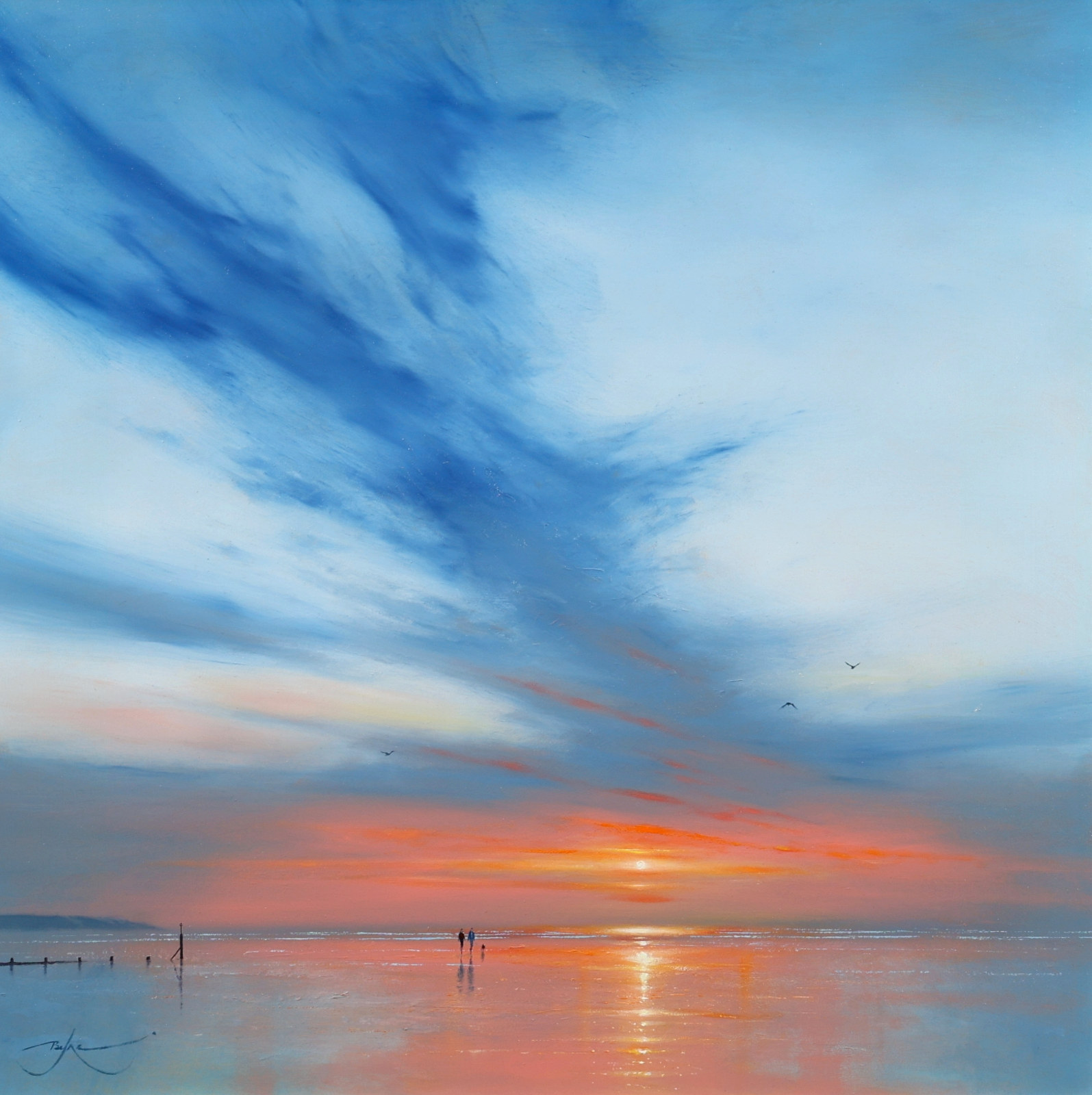 A sumptuous seascape by British artist Ben Payne. Presented in white painted wood frame as shown and ready to hang.