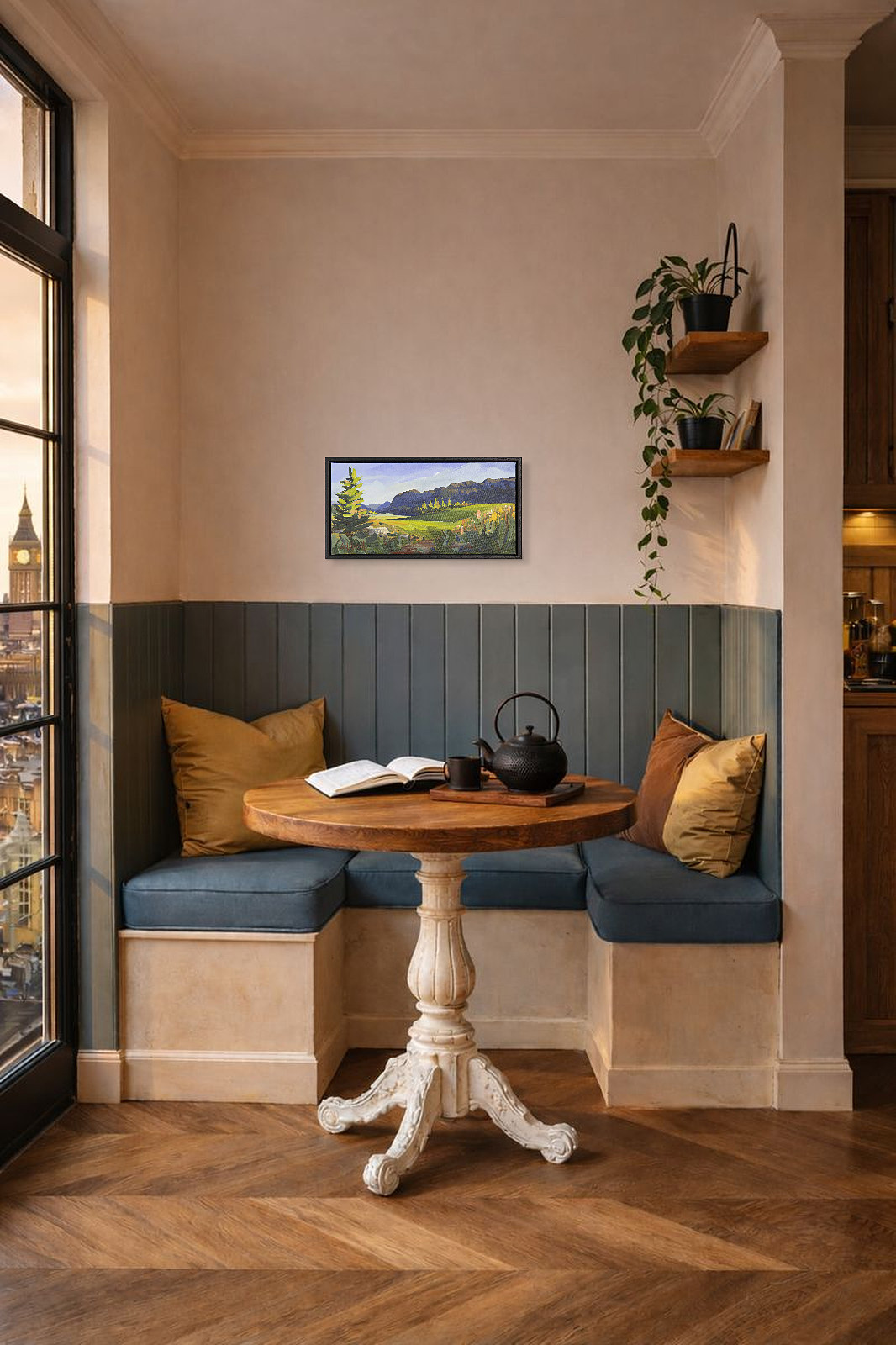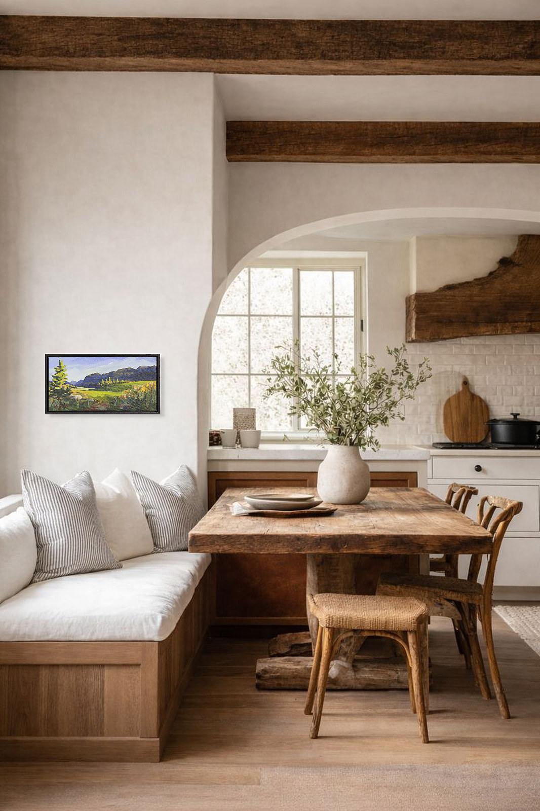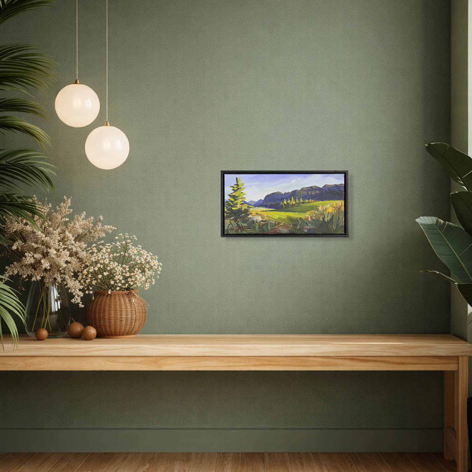 Contemporary landscape painting by South African born artist Carla Bosch. This artwork is completed in the artist’s signature loose brushstroke style. Presented in a contemporary black floating frame as shown and ready to display.