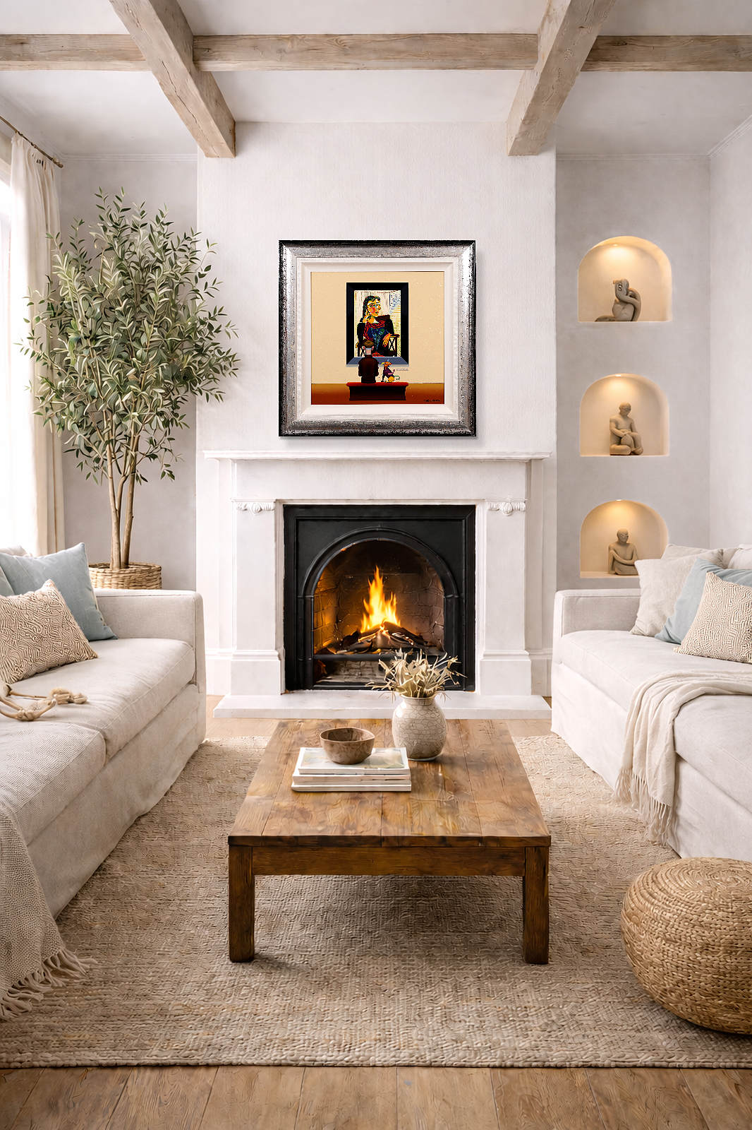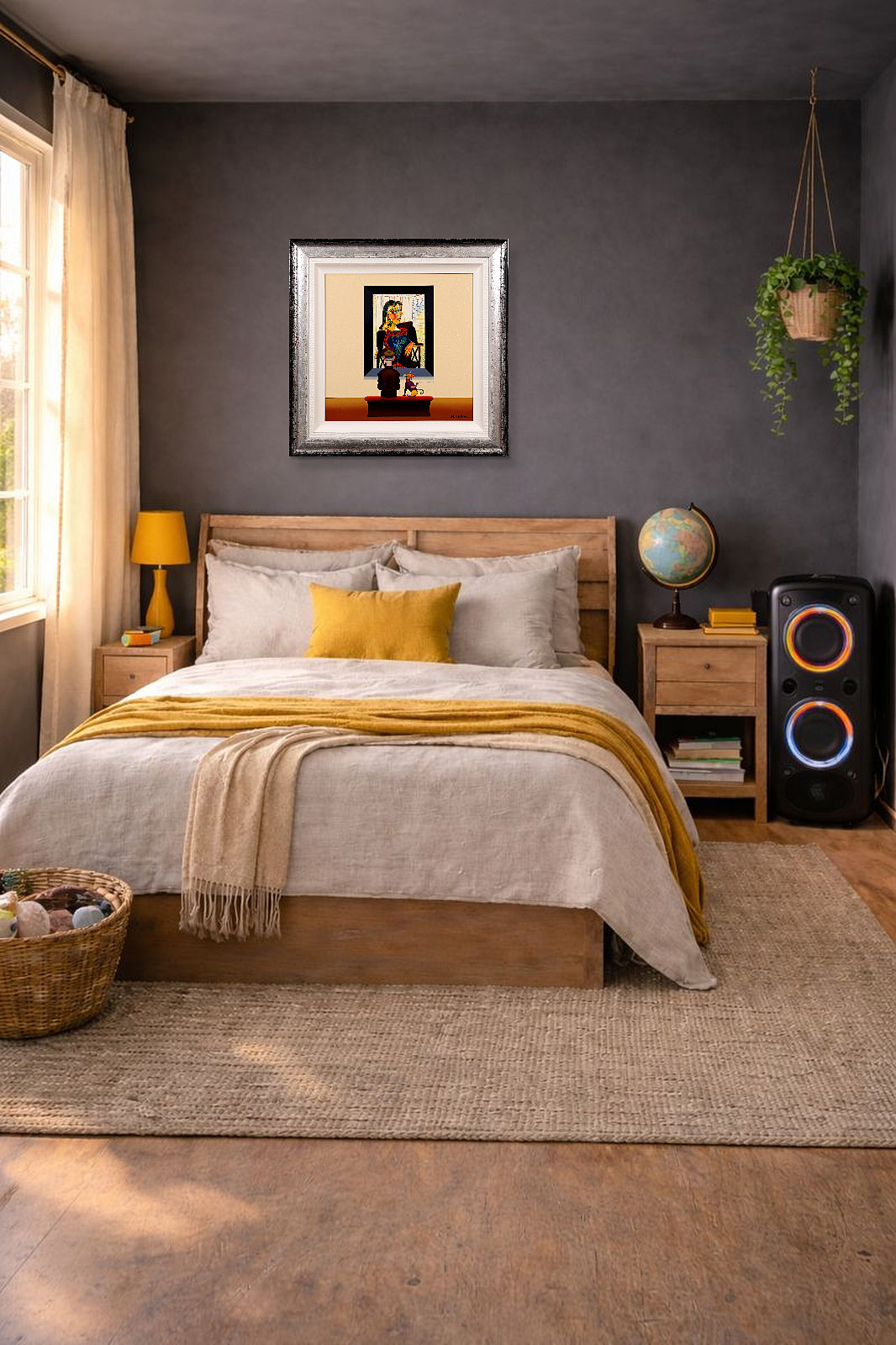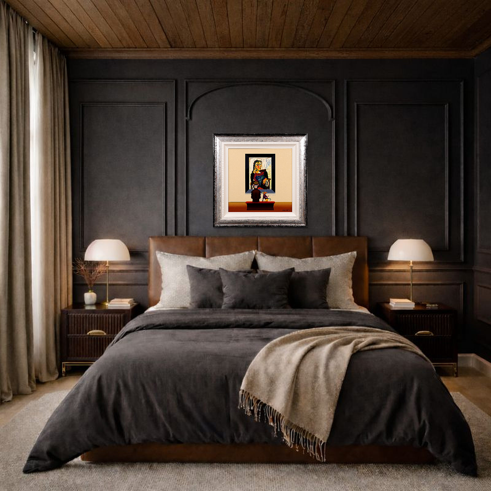 A fun and characterful original painting by Chris Chapman, created in the spirit of Pablo Picasso’s iconic style. Framed with a white slip and dappled silver wooden frame, as shown, and ready to hang.
