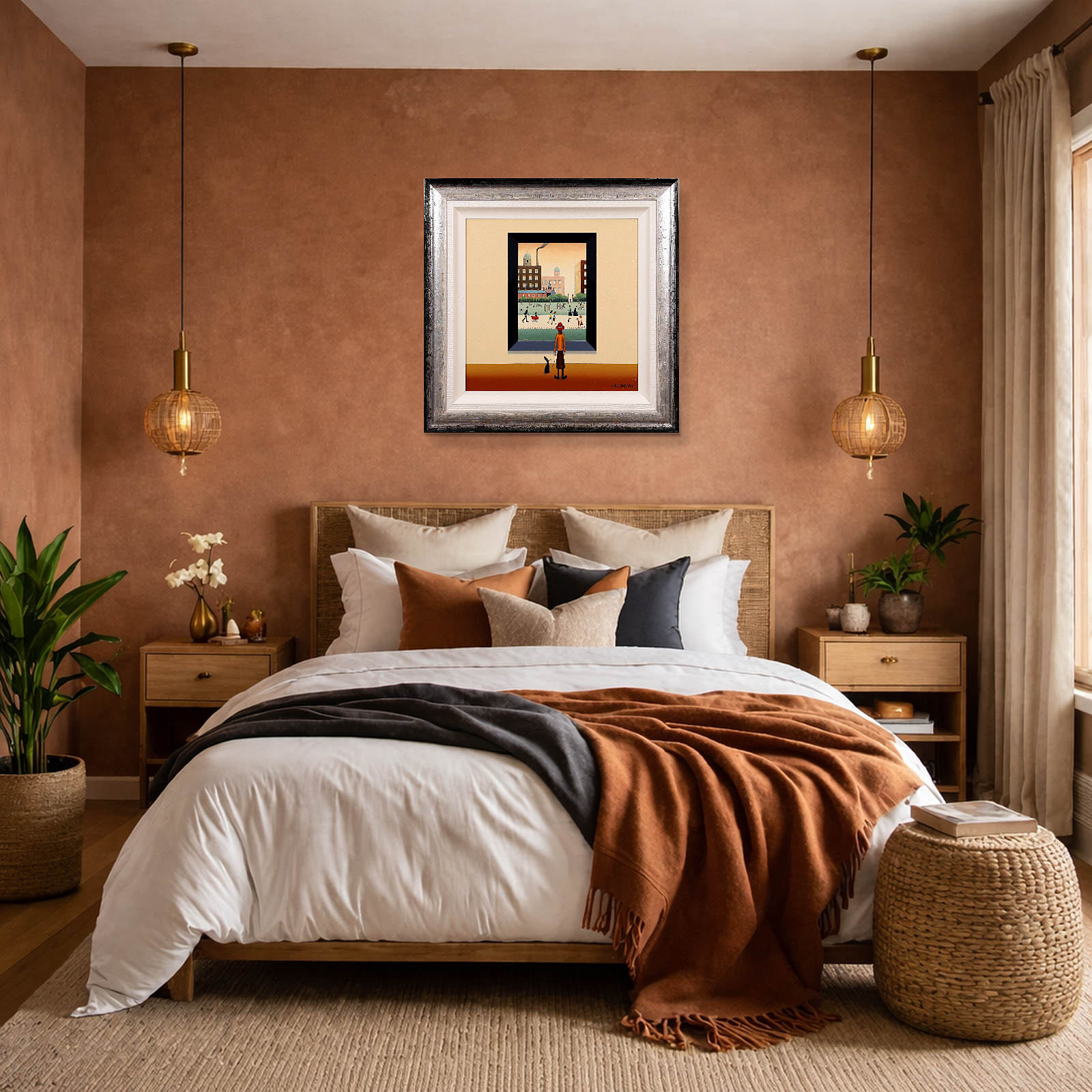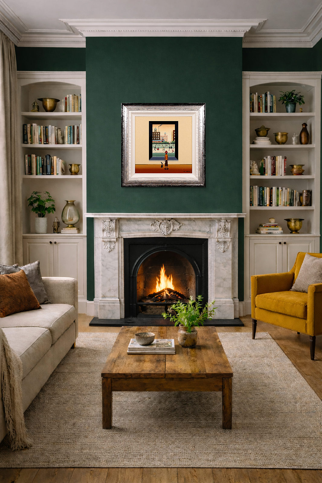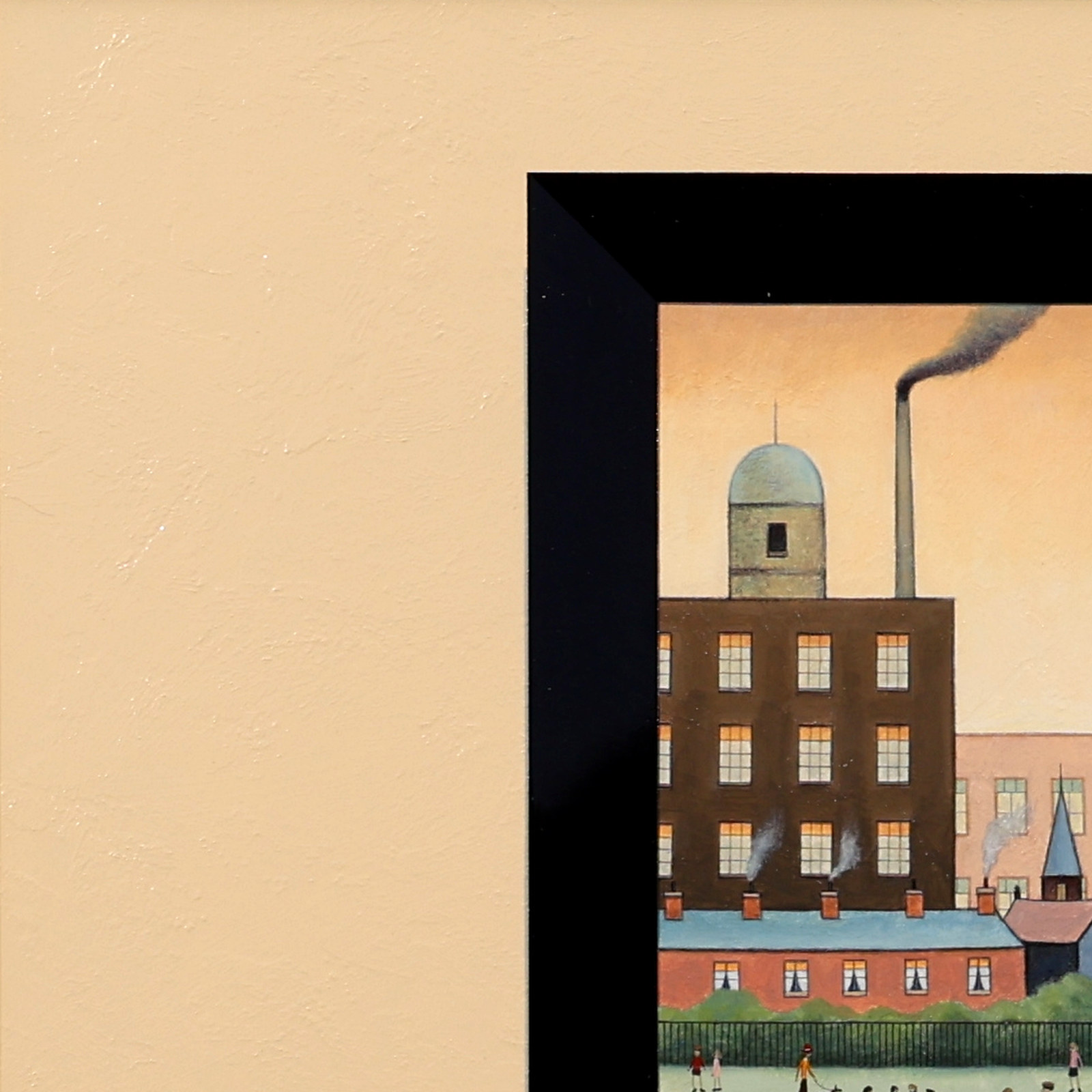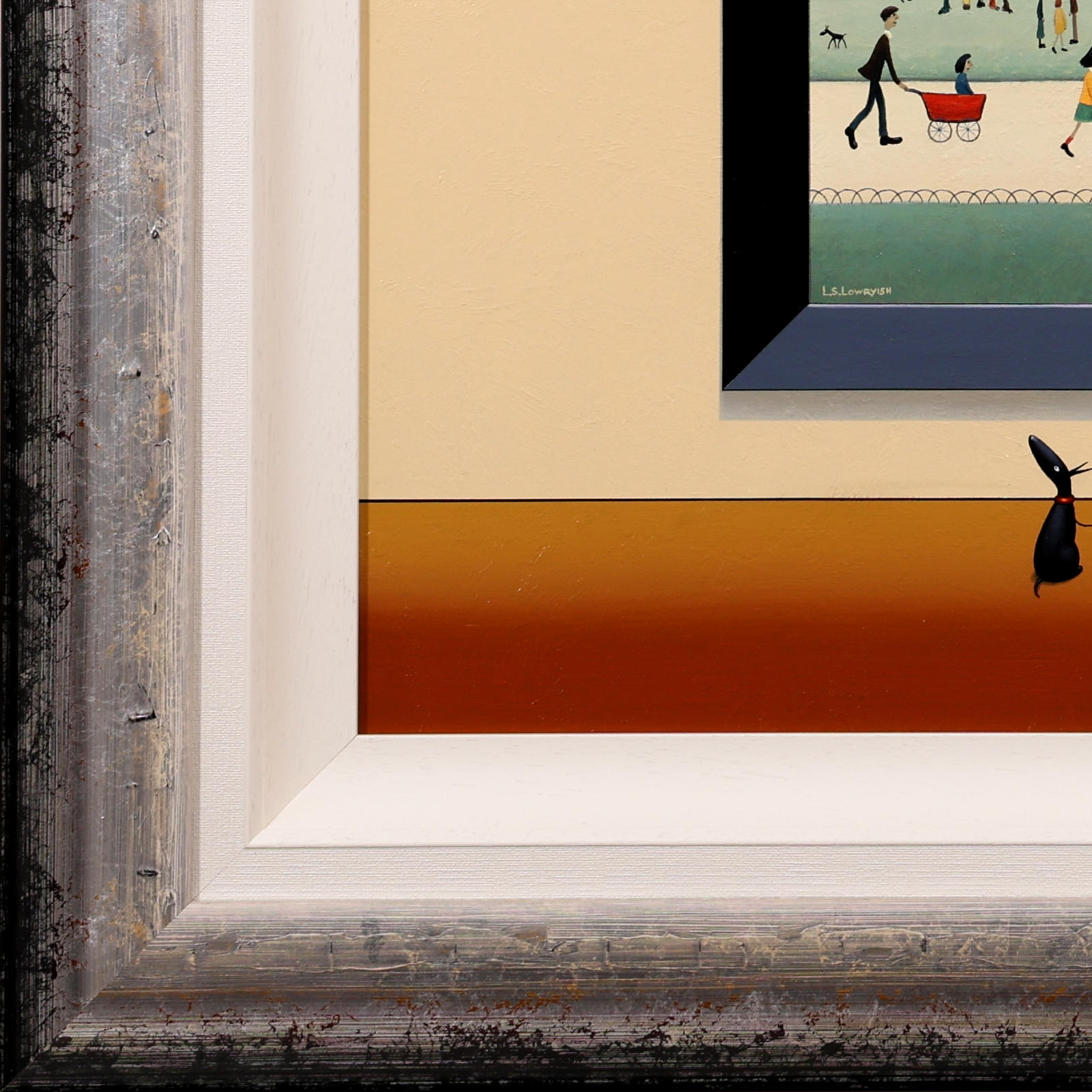 A fun and characterful original painting by Chris Chapman, created in the spirit of L.S. Lowry’s iconic style. Framed with a white slip and dappled silver wooden frame, as shown, and ready to hang.
