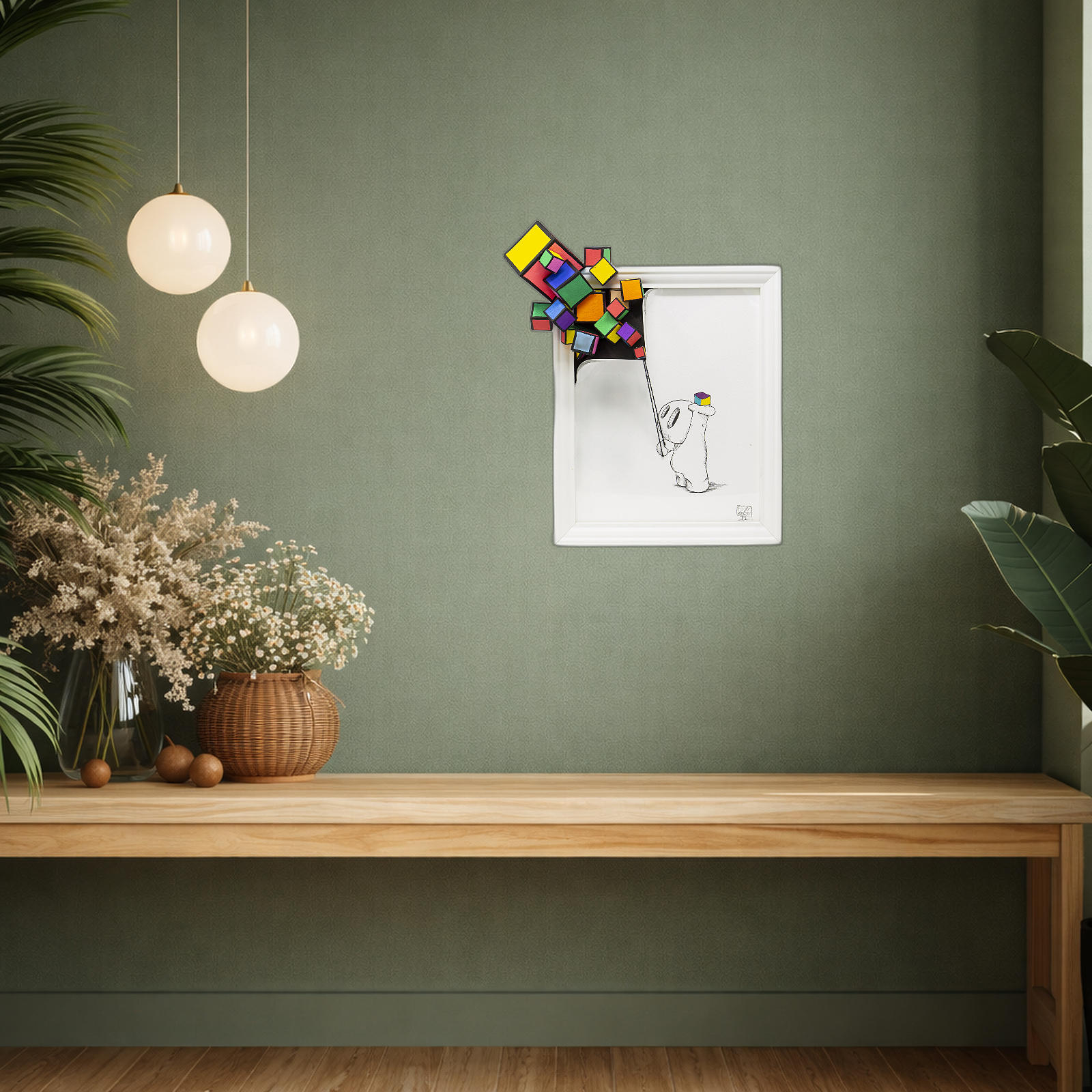 His style echoes influences such as M.C. Escher’s complexity and Banksy’s conceptual layering, yet remains distinctly his own—marked by spontaneous composition and dense visual symbolism. Odusote resists the idea of fixed interpretation; instead, he encourages viewers to bring their own lens, making each encounter with his work a personal experience.