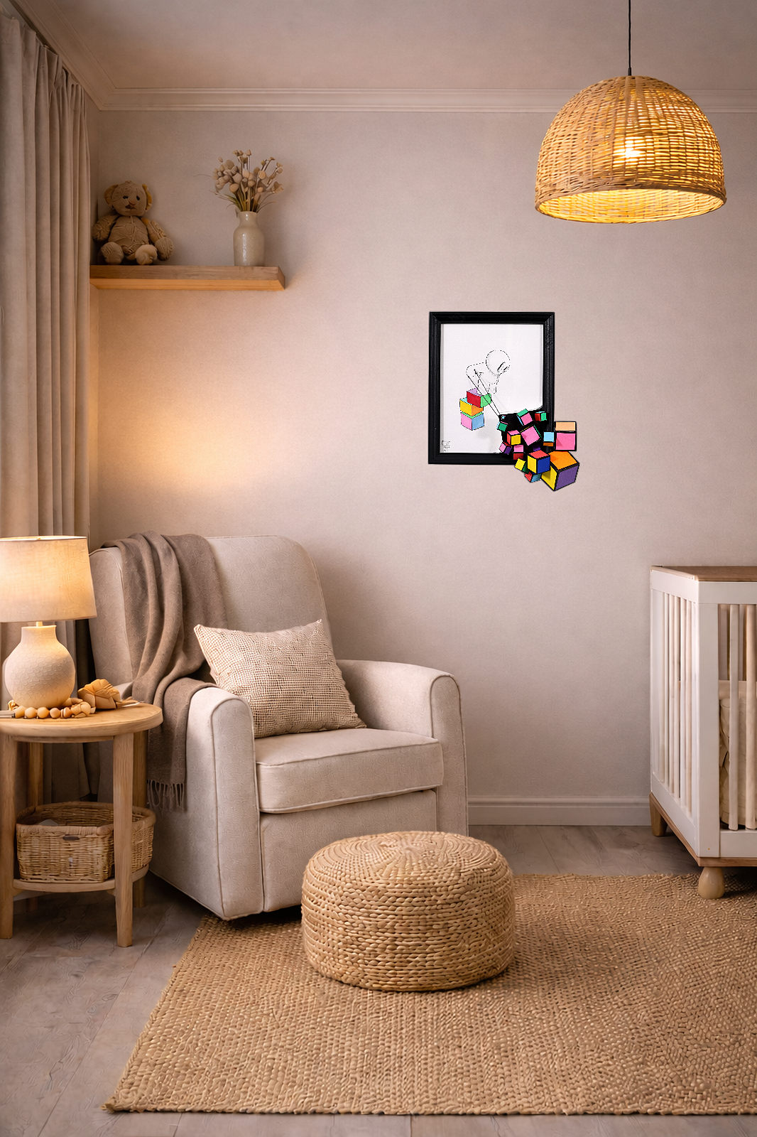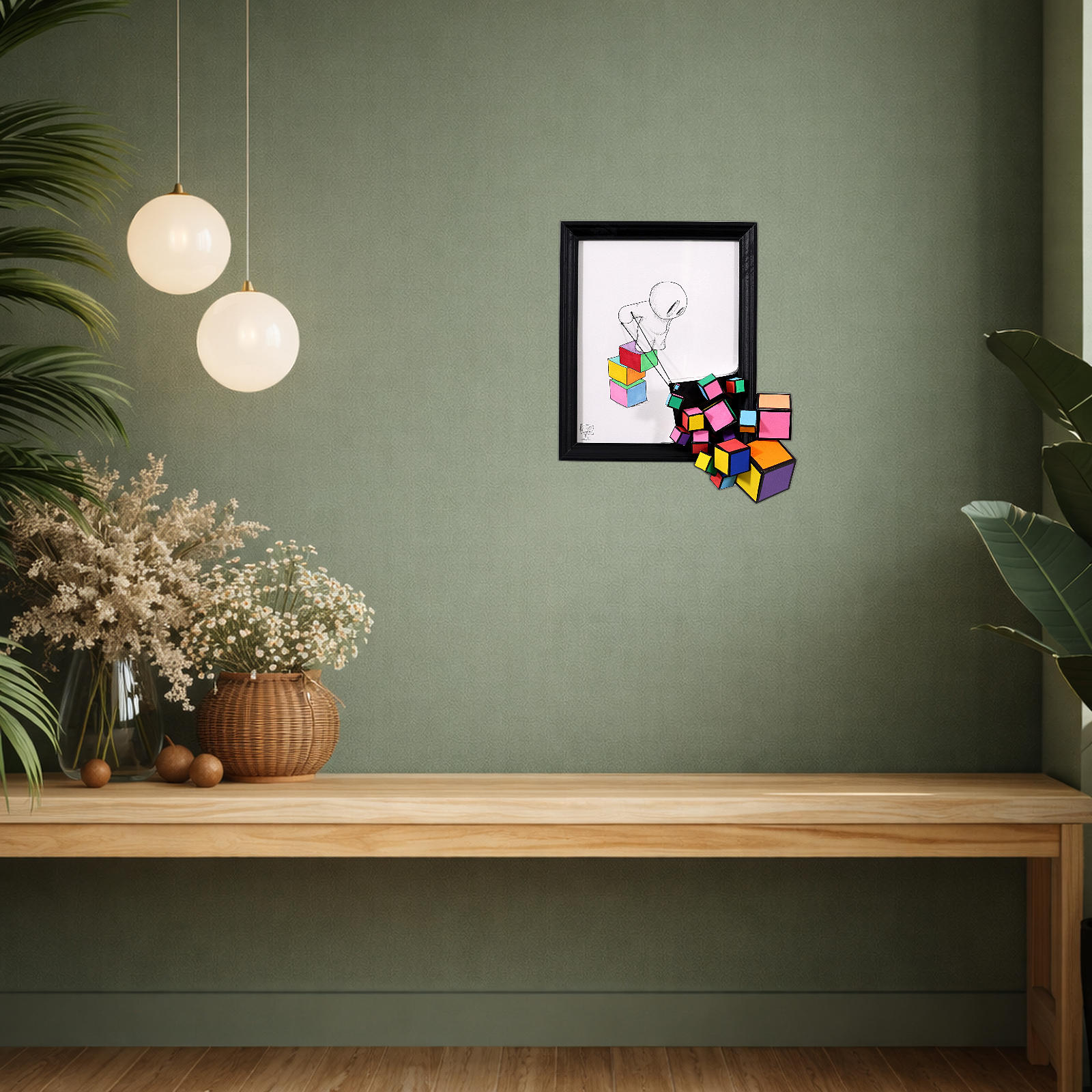Unique mixed media piece by internationally renowned artist Damilola Odusote from his popular ‘Cube Series. Can be wall hung or enjoyed freestanding on any surface with the in-built stand.