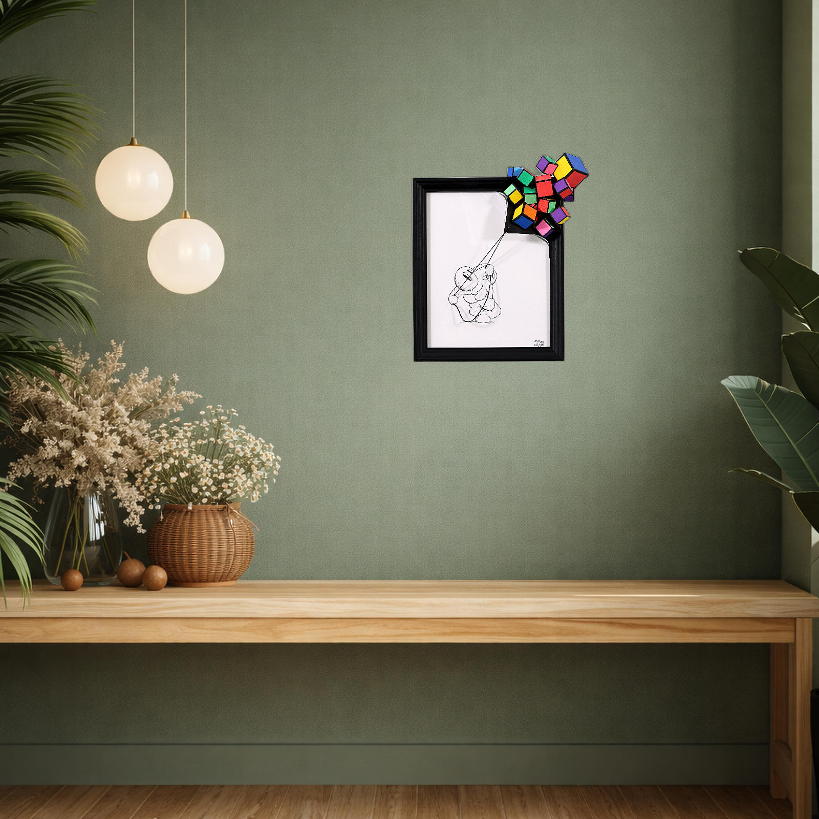 Unique mixed media piece by internationally renowned artist Damilola Odusote from his popular ‘Cube Series. Can be wall hung or enjoyed freestanding on any surface with the in-built stand.