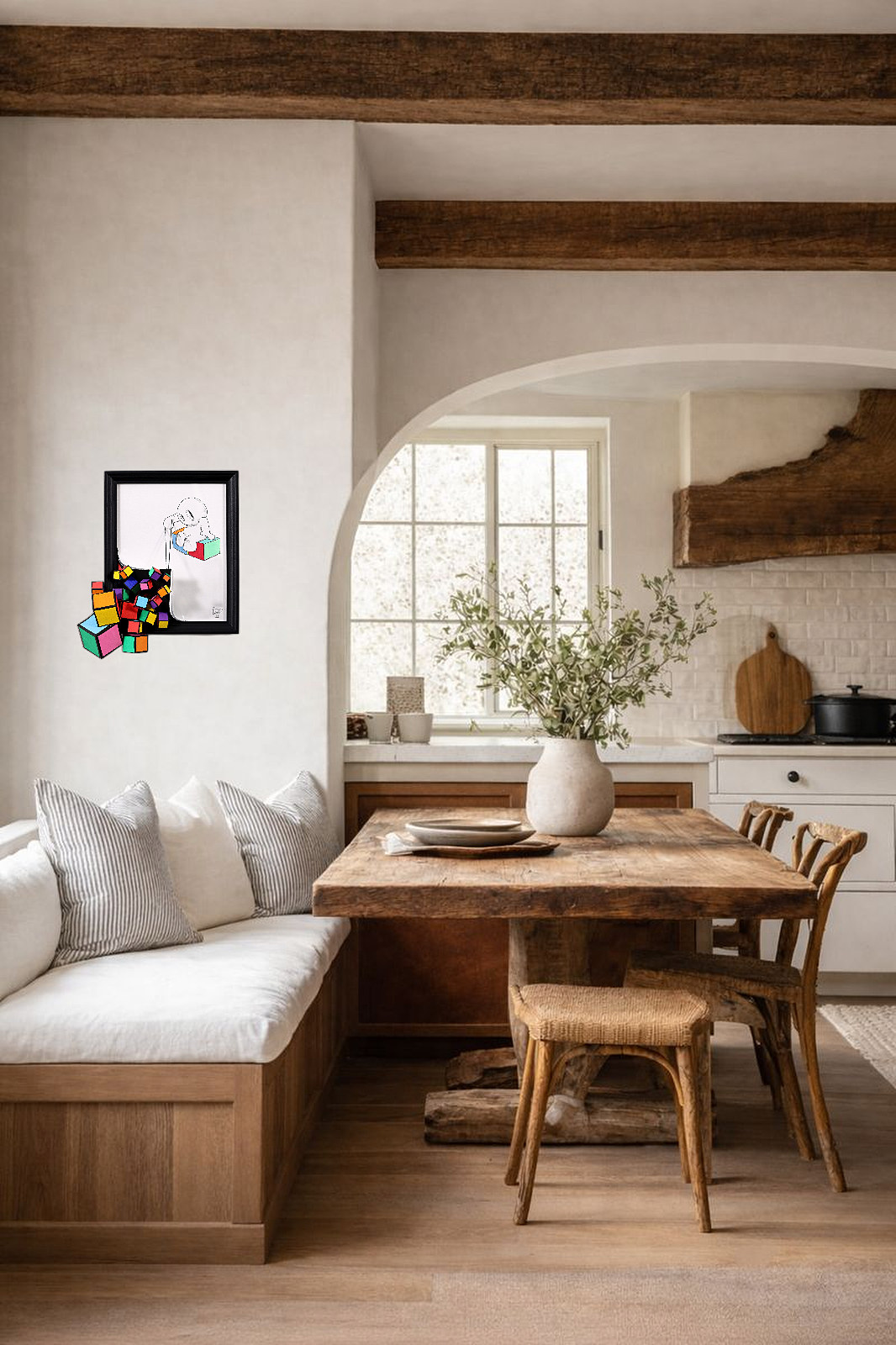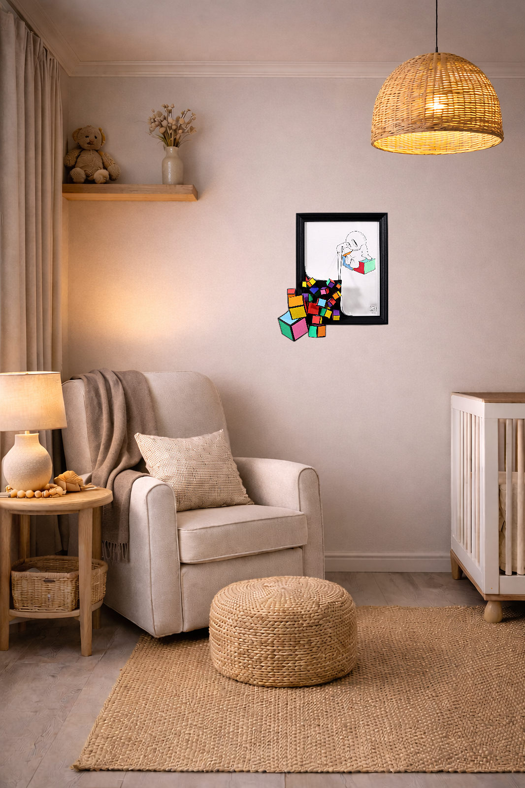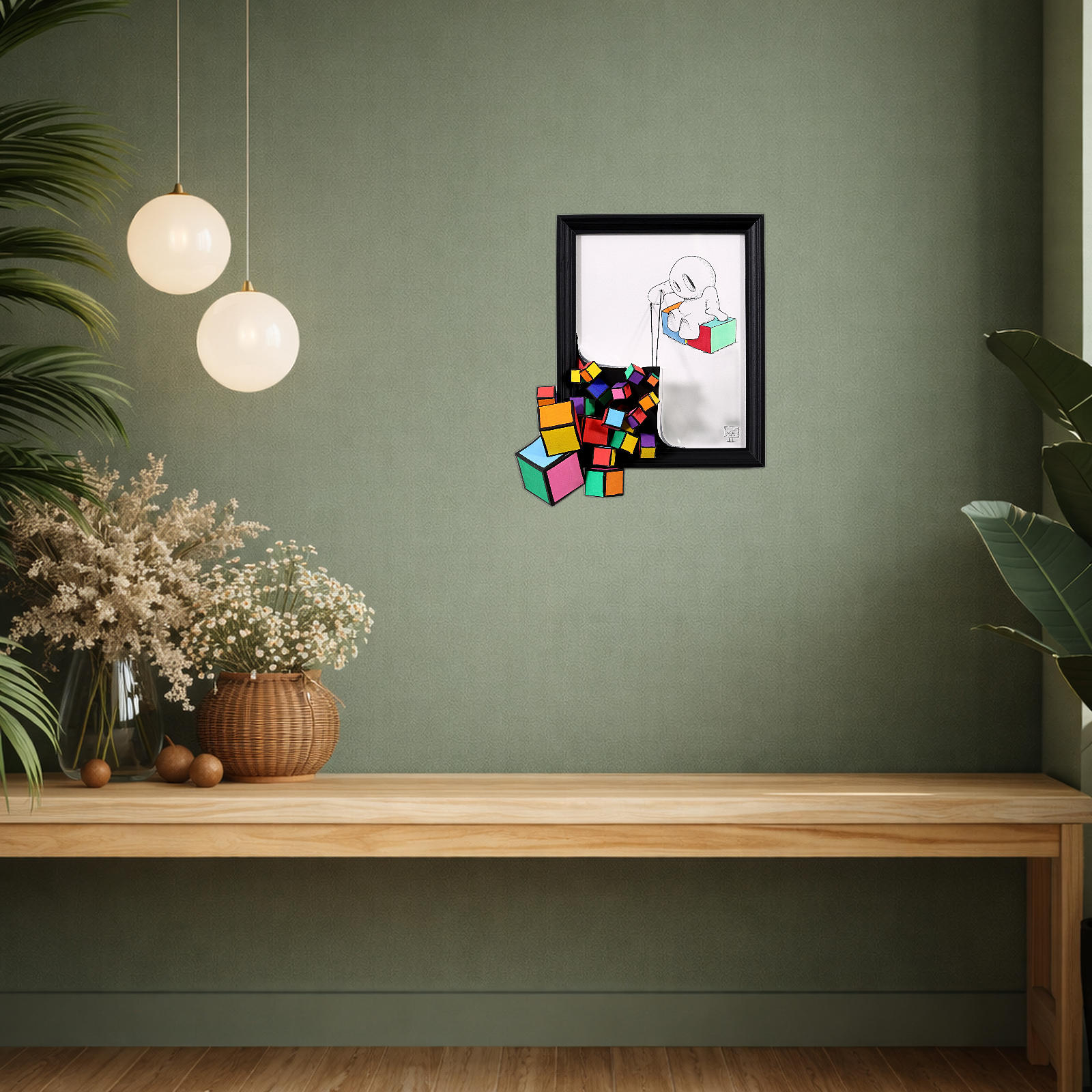 Unique mixed media piece by internationally renowned artist Damilola Odusote from his popular ‘Cube Series. Can be wall hung or enjoyed freestanding on any surface with the in-built stand.