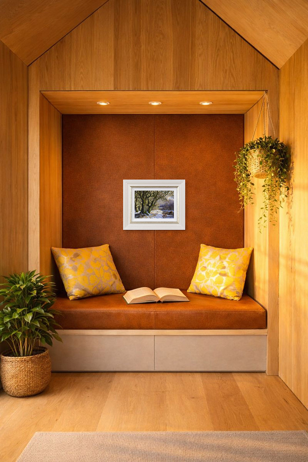 Winter sun casts a warming glow on this snow laden rural scene featuring a roe deer and lichen laden trees.. An original oil painting by Daniel Van der Putten which has been masterfully completed on panel and signed by the artist.