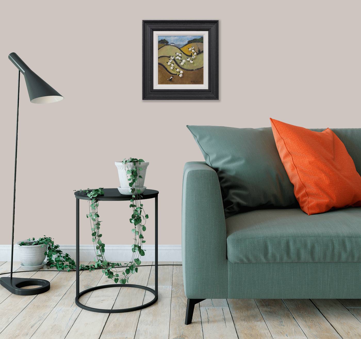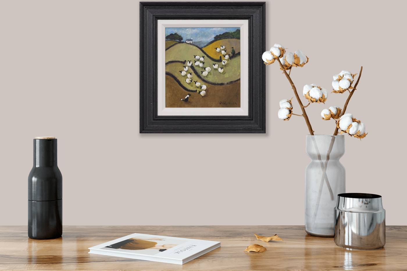 A colourful original painting by British artist David Alderman as part of the artist’s ‘sheepscape’ series. Framed as pictured and ready to hang.