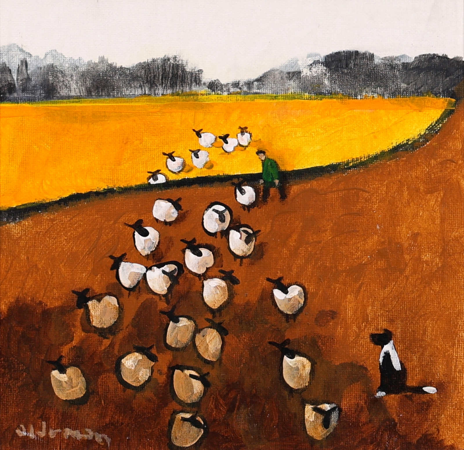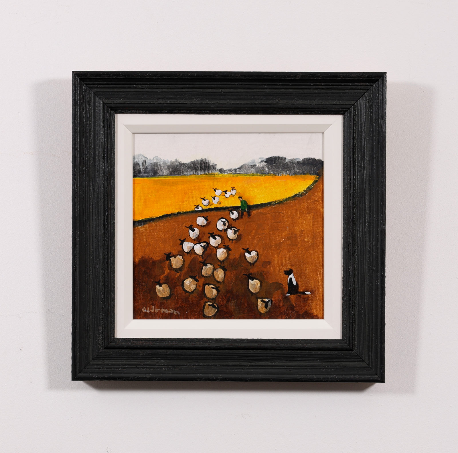 A colourful original painting by British artist David Alderman as part of the artist’s ‘sheepscape’ series. Framed as pictured and ready to hang.