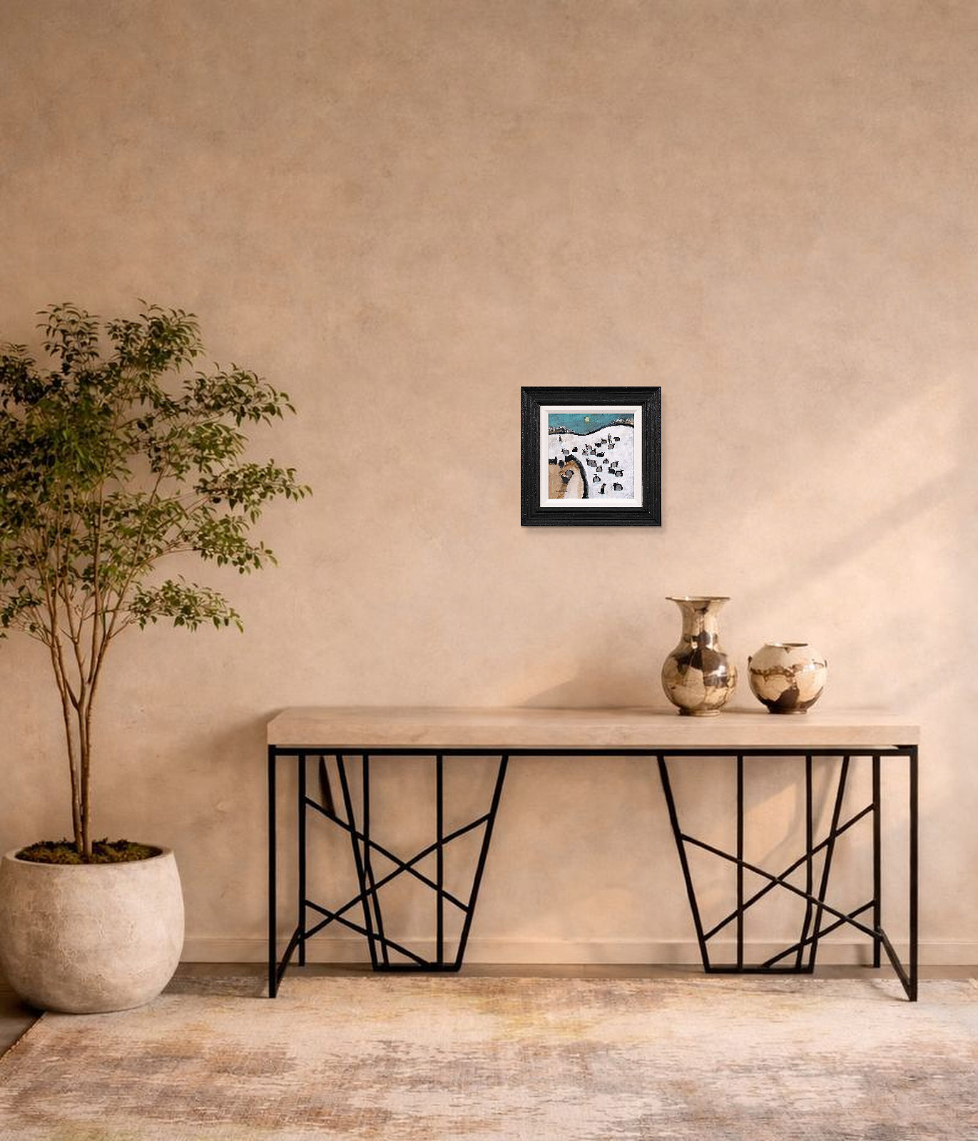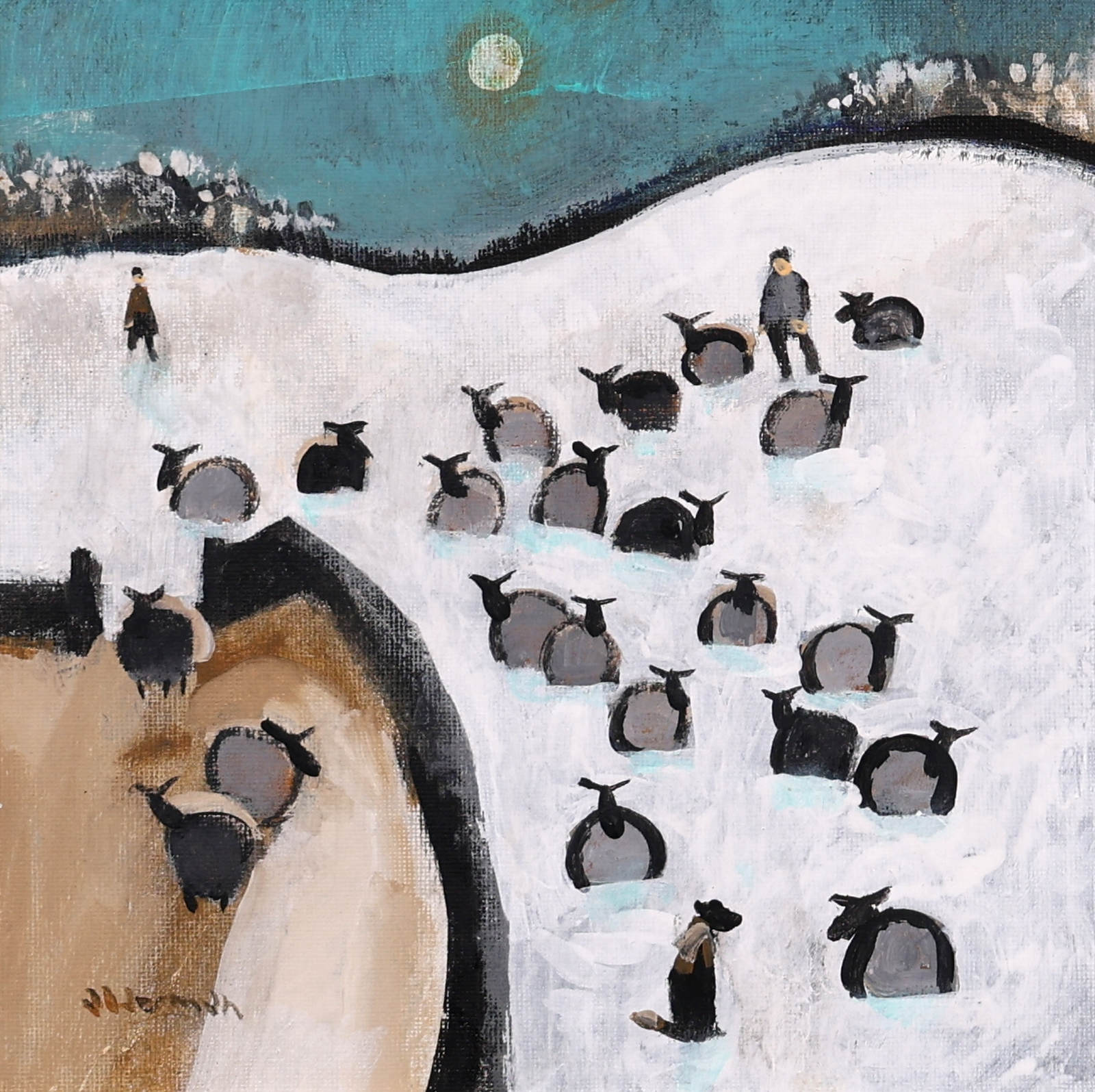 A colourful original painting by British artist David Alderman as part of the artist’s ‘sheepscape’ series. Framed as pictured and ready to hang.