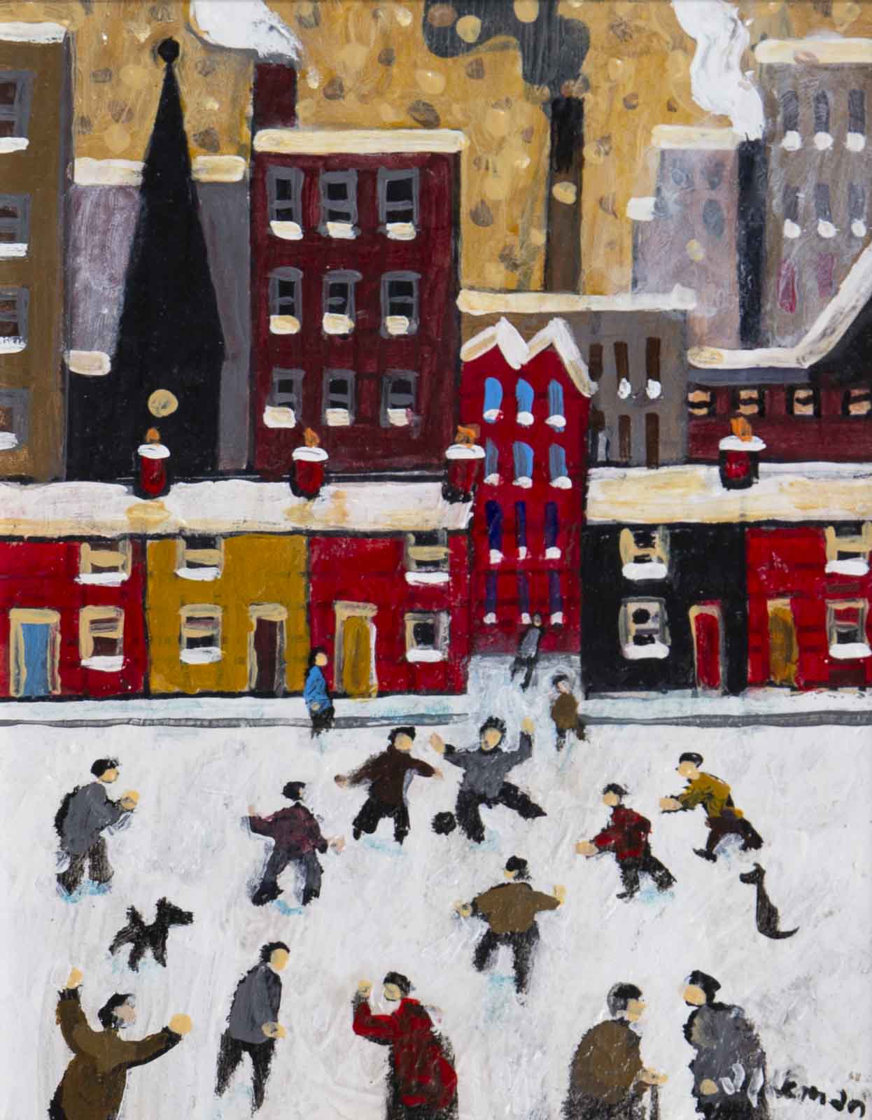 A colourful original painting by British artist David Alderman as part of the artist’s ‘townscape’ series. Framed as pictured and ready to hang.