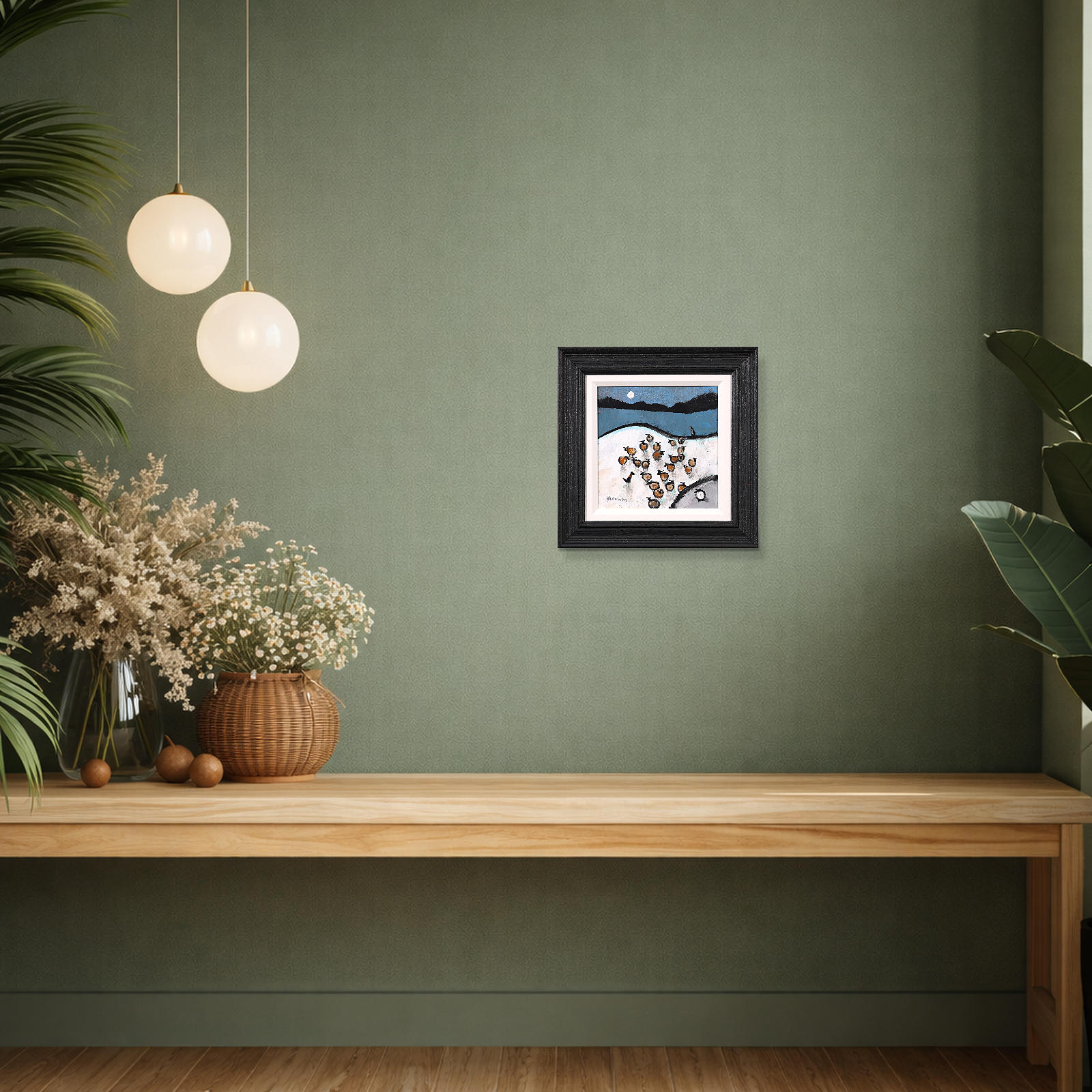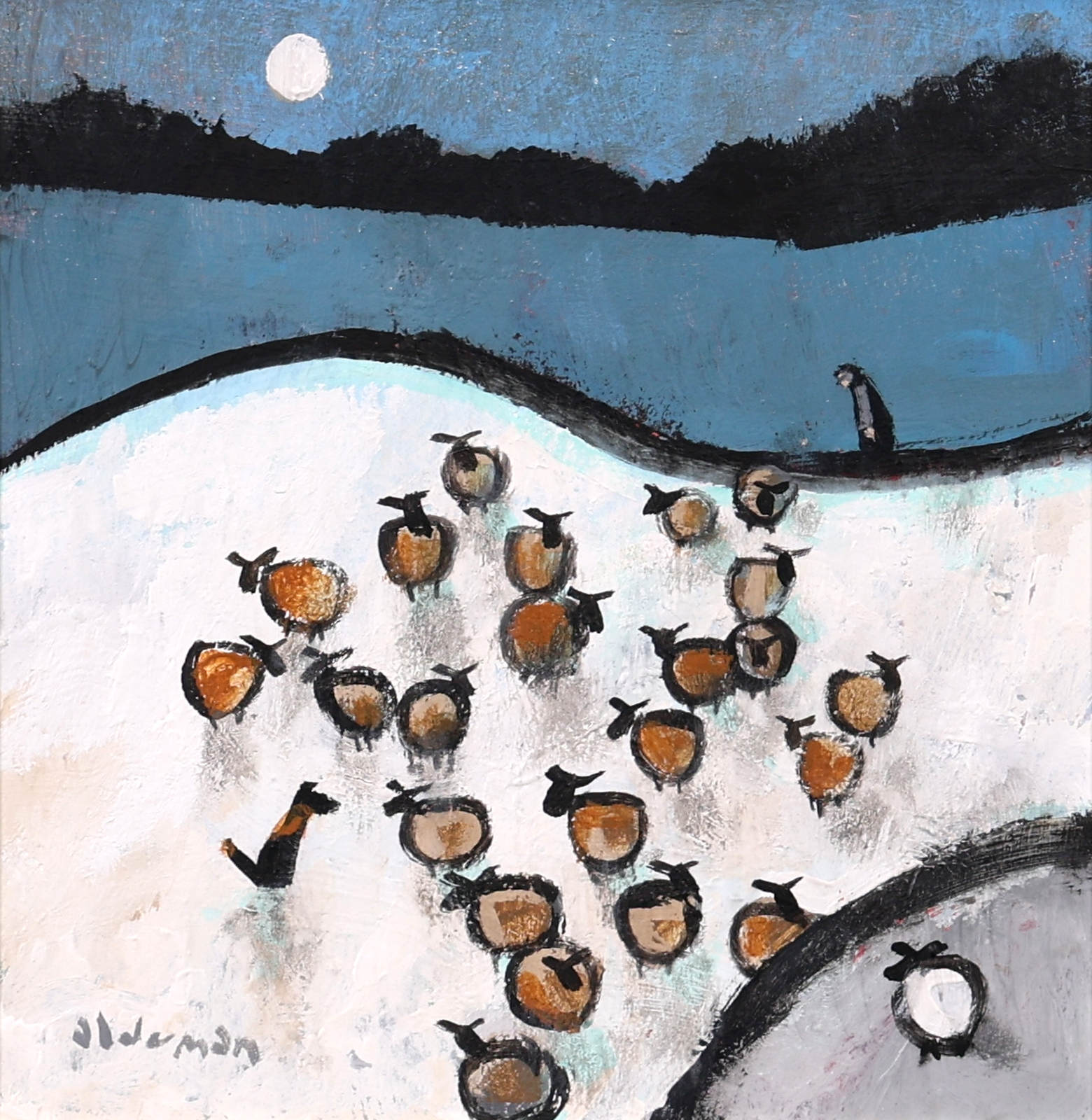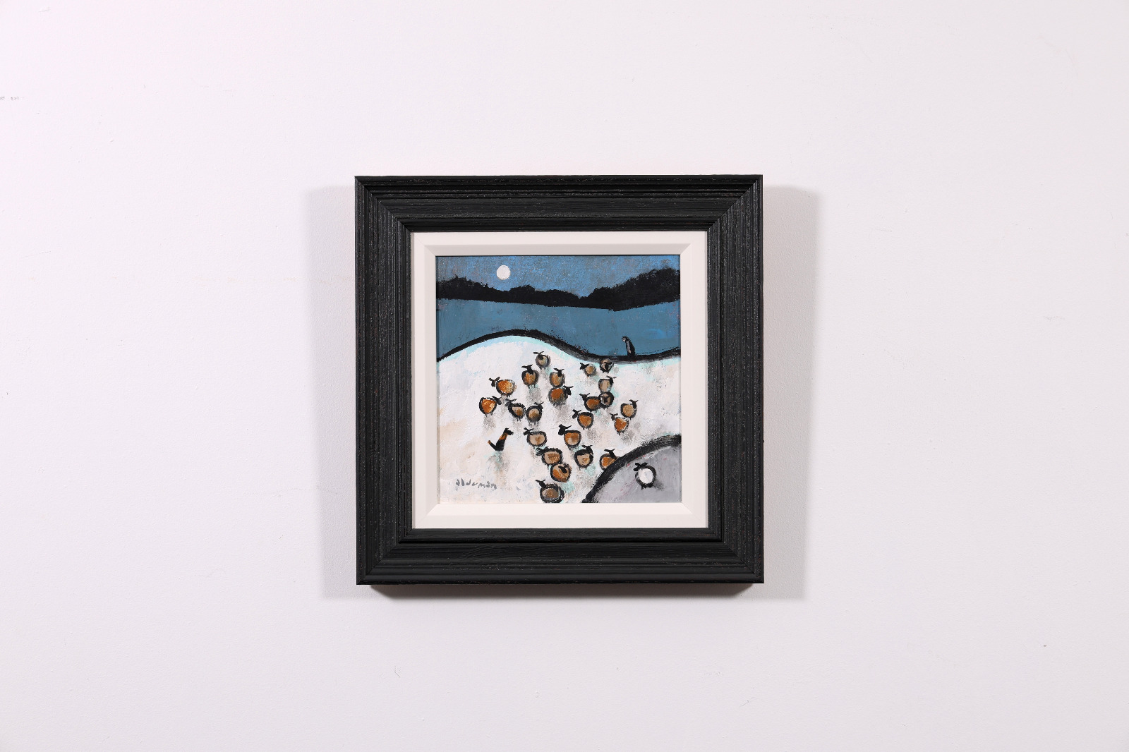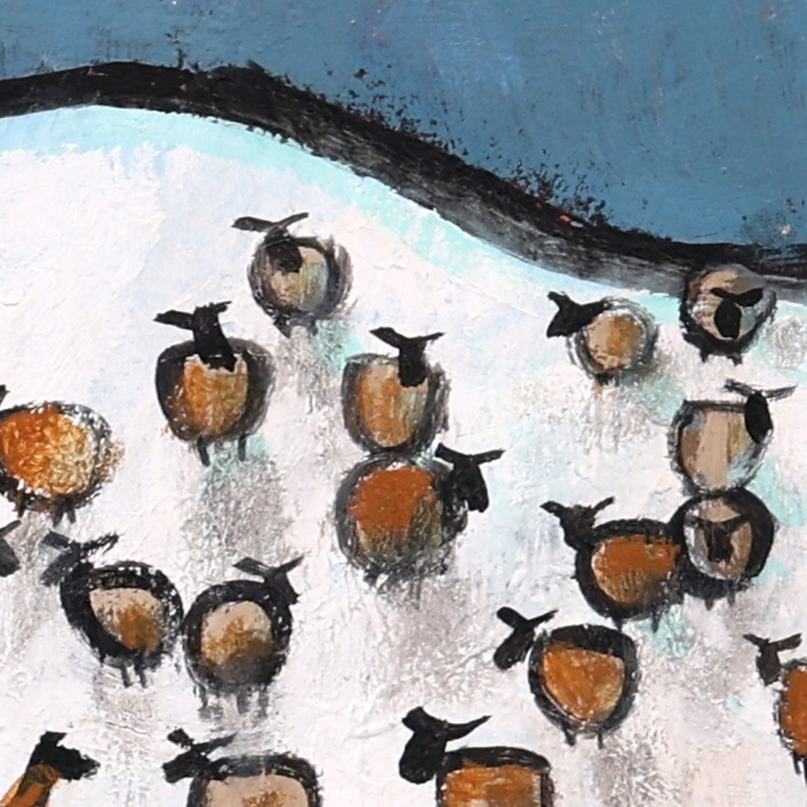 A colourful original painting by British artist David Alderman as part of the artist’s ‘sheepscape’ series. Framed as pictured and ready to hang.
