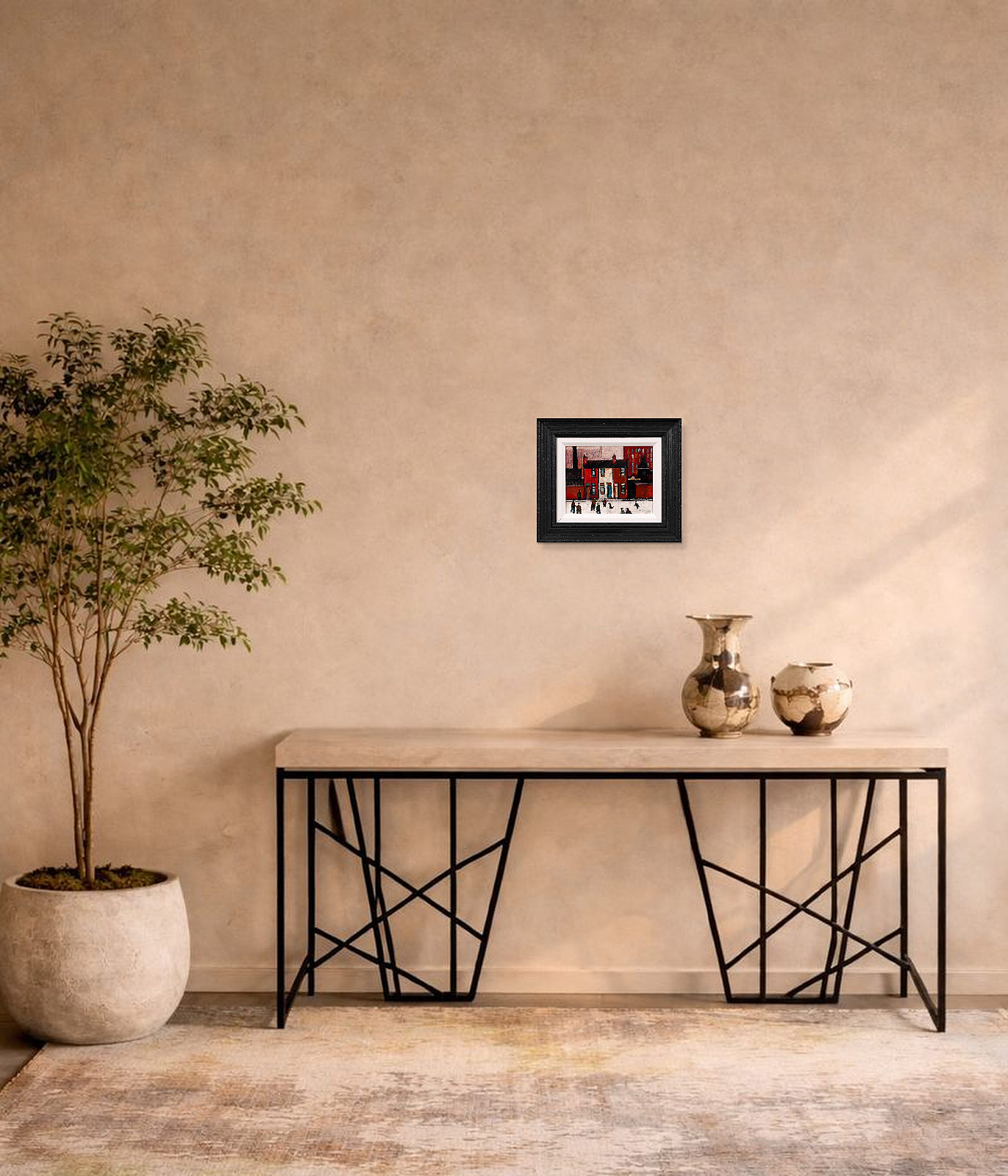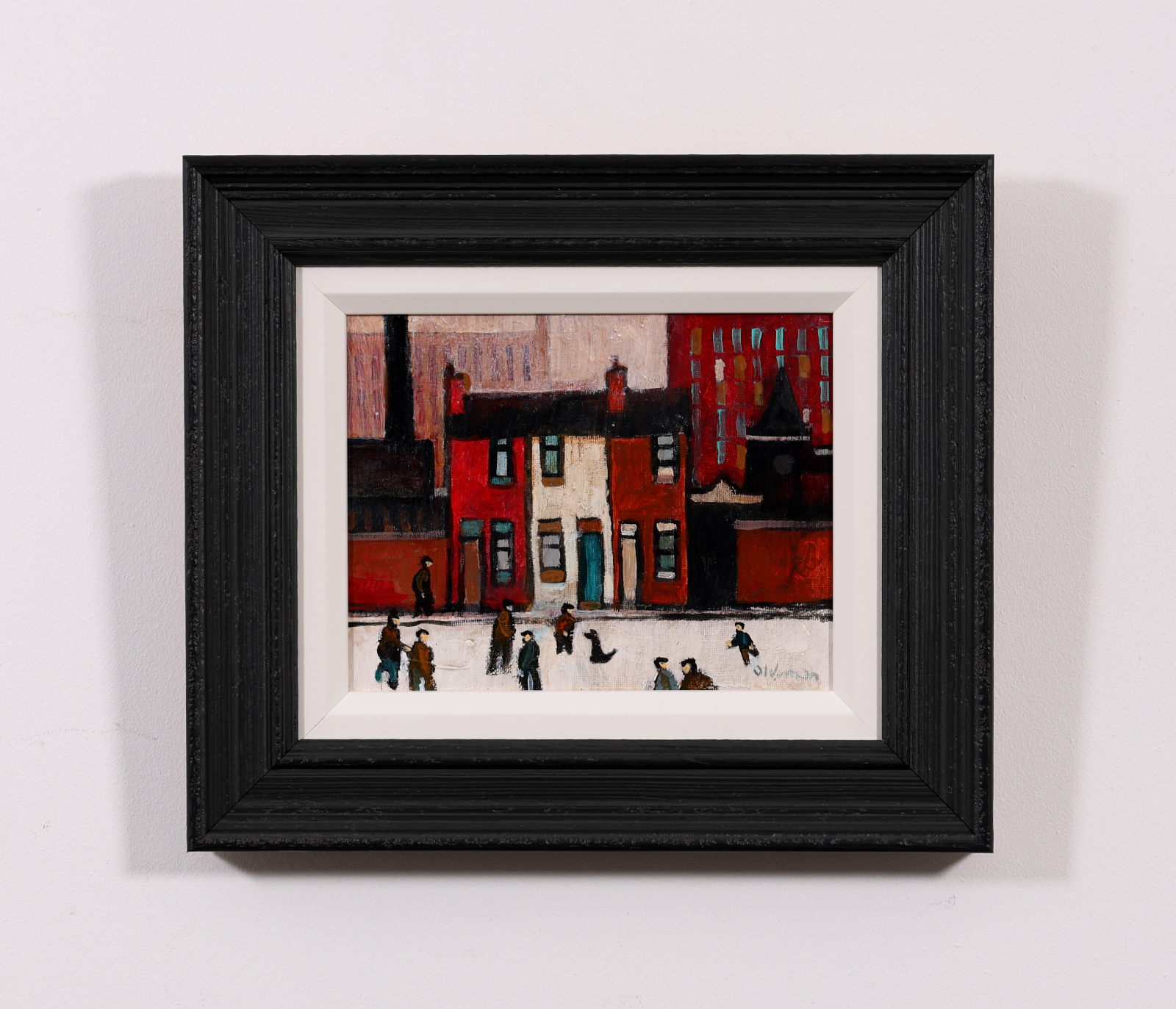A colourful original painting by British artist David Alderman as part of the artist’s ‘townscape’ series. Framed as pictured and ready to hang.