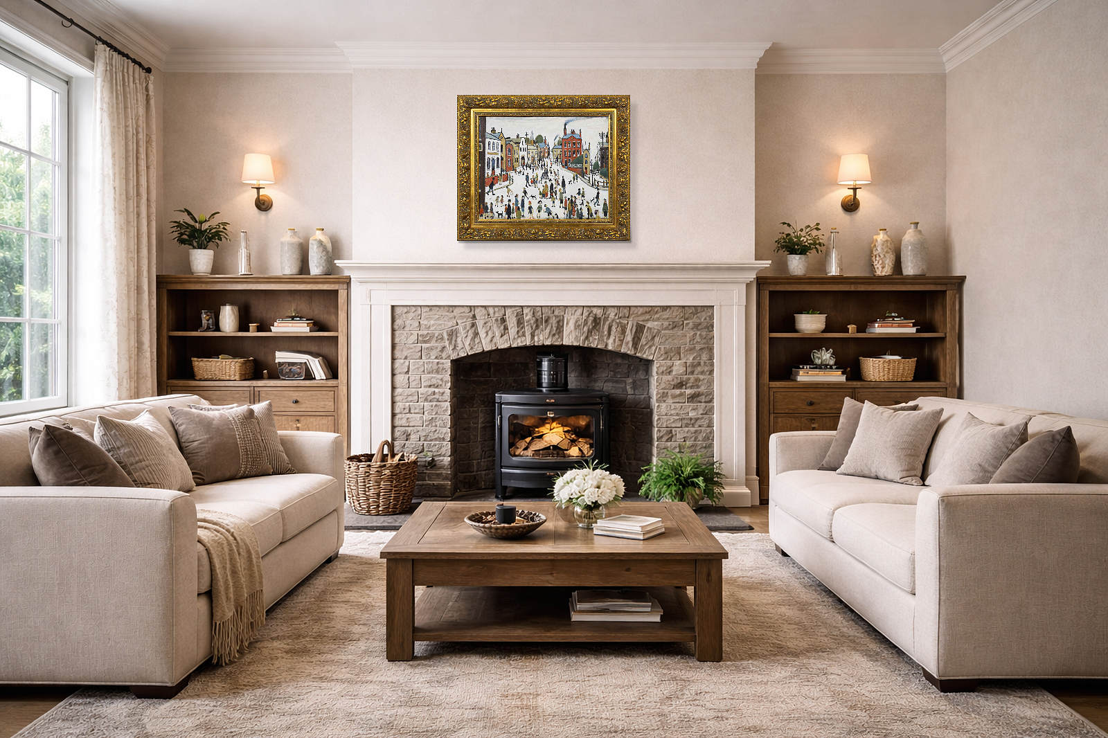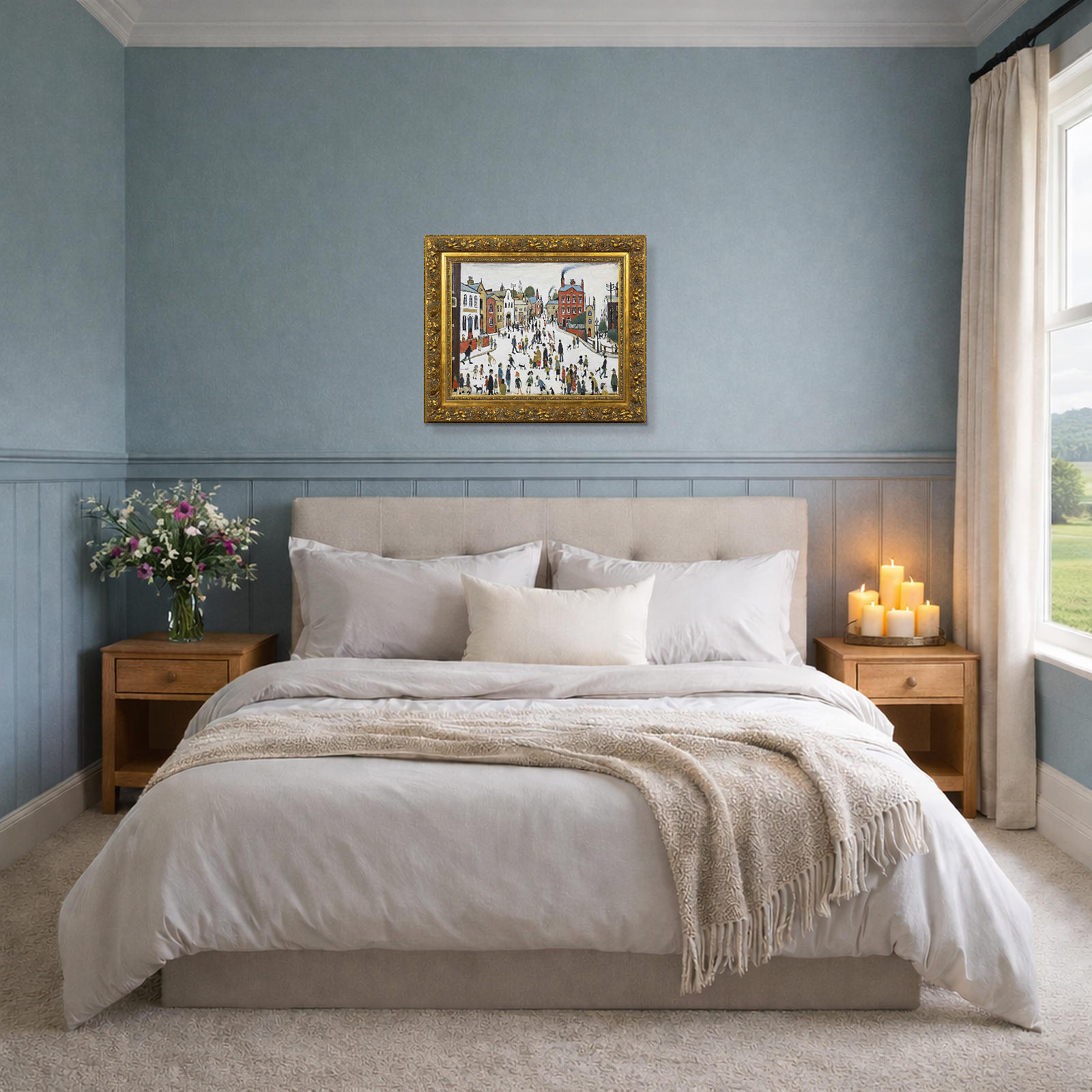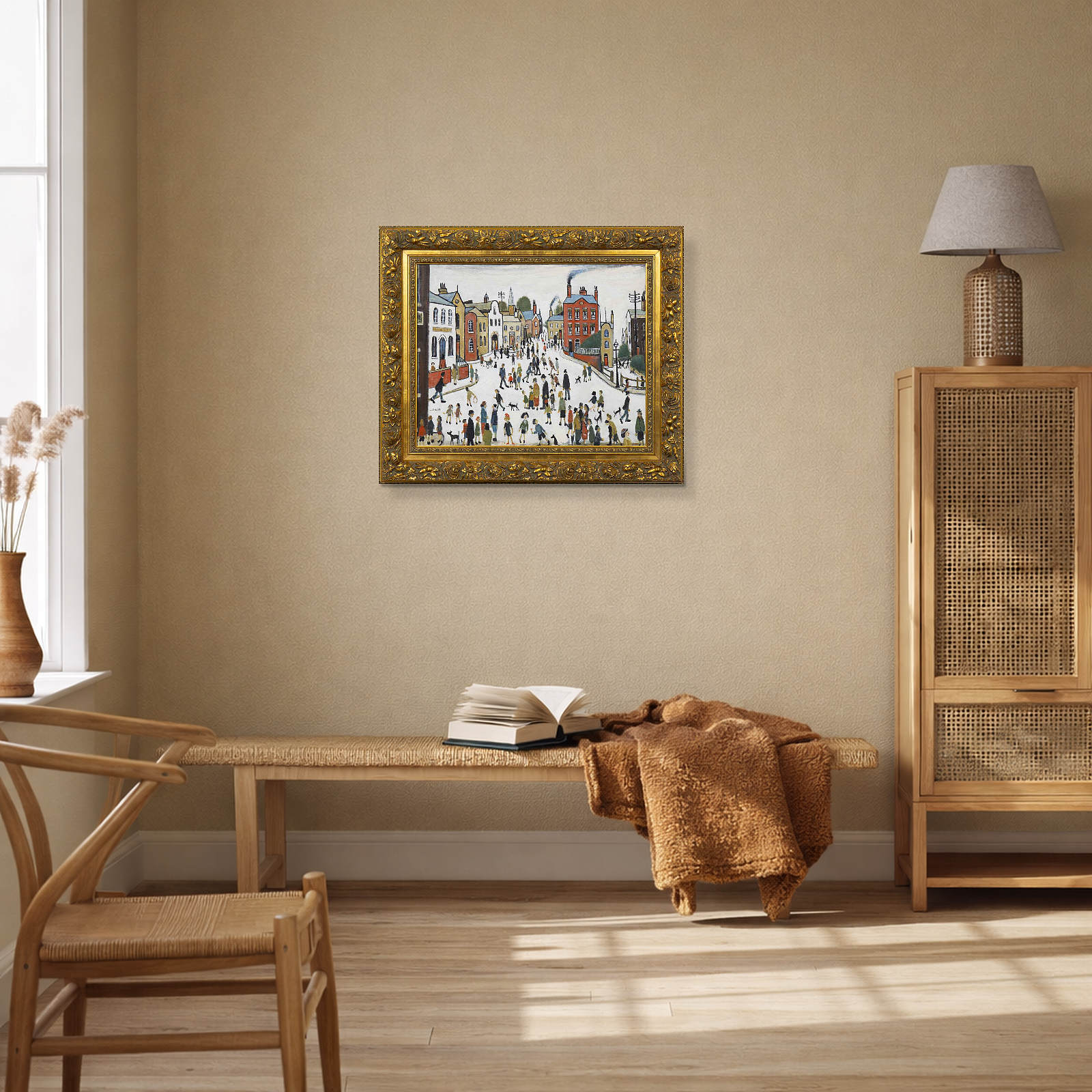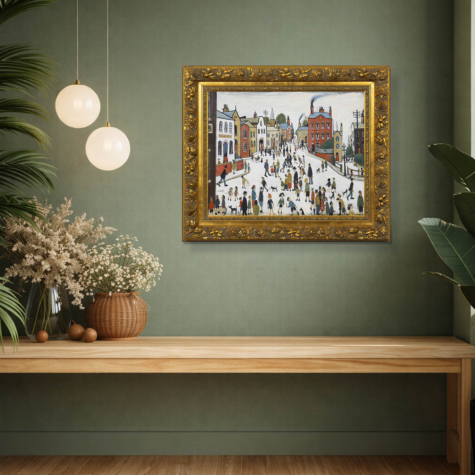 Stunning original painting by David Henty after the well-known artwork by LS Lowry. Presented in ornate gold swept frame as shown and ready to impress!