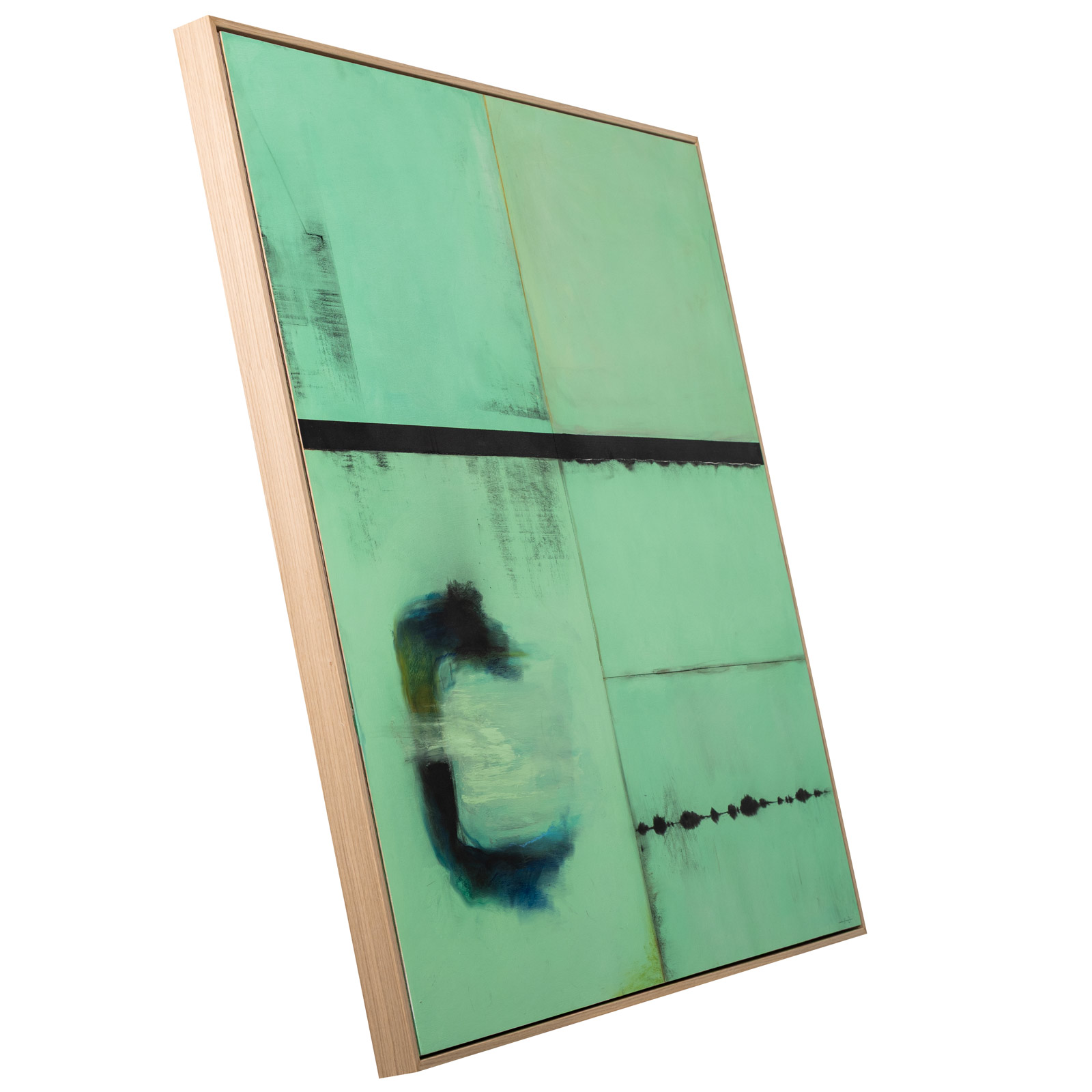 Thought provoking abstract artwork by Spanish artist De Tomàs forming part of his debut collection with Forest Gallery titled ‘Aurora’. Created on multiple wooden panels combined and joined to form one harmonised piece. Presented in a stylish contemporary oak frame as shown and ready to hang.