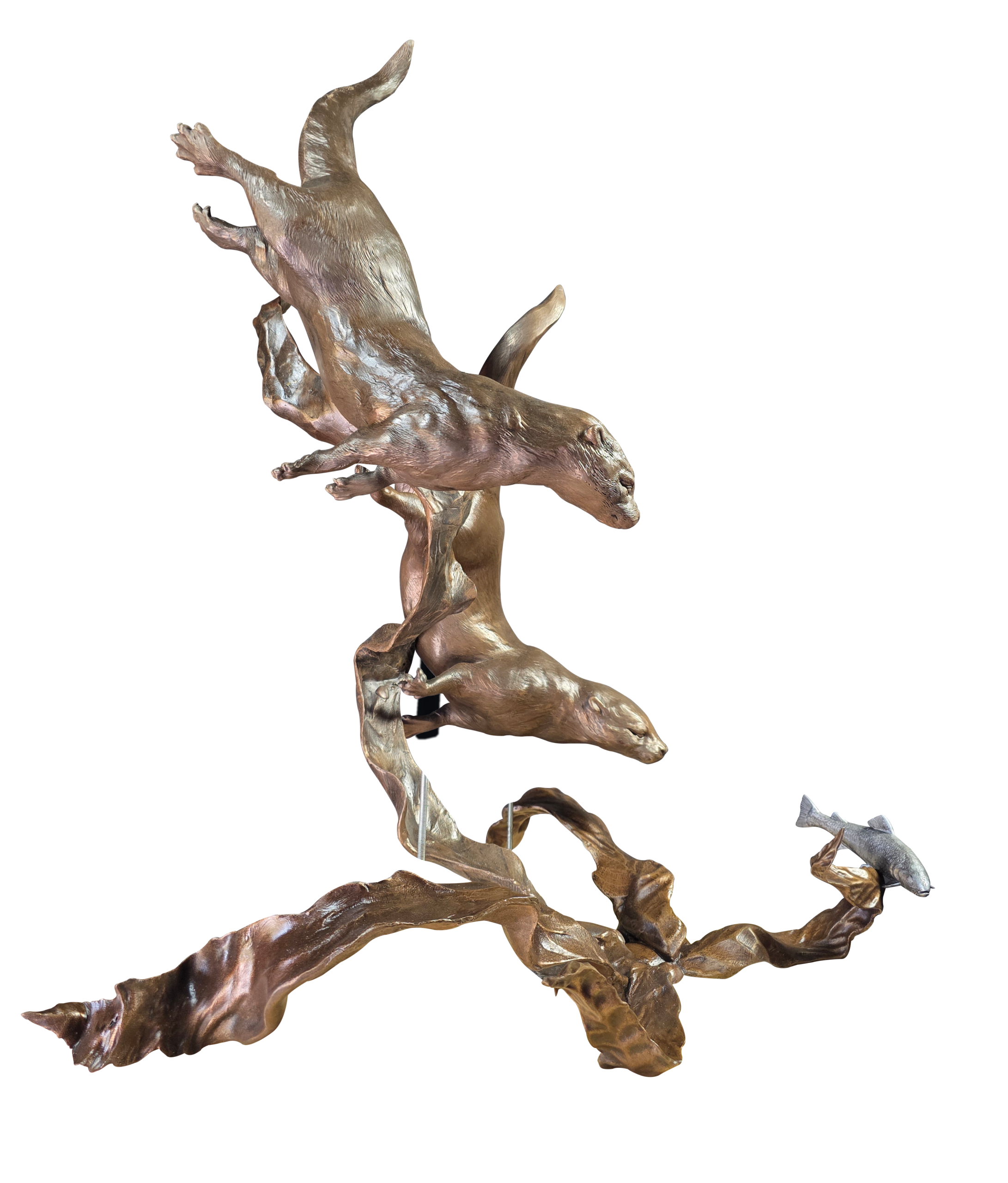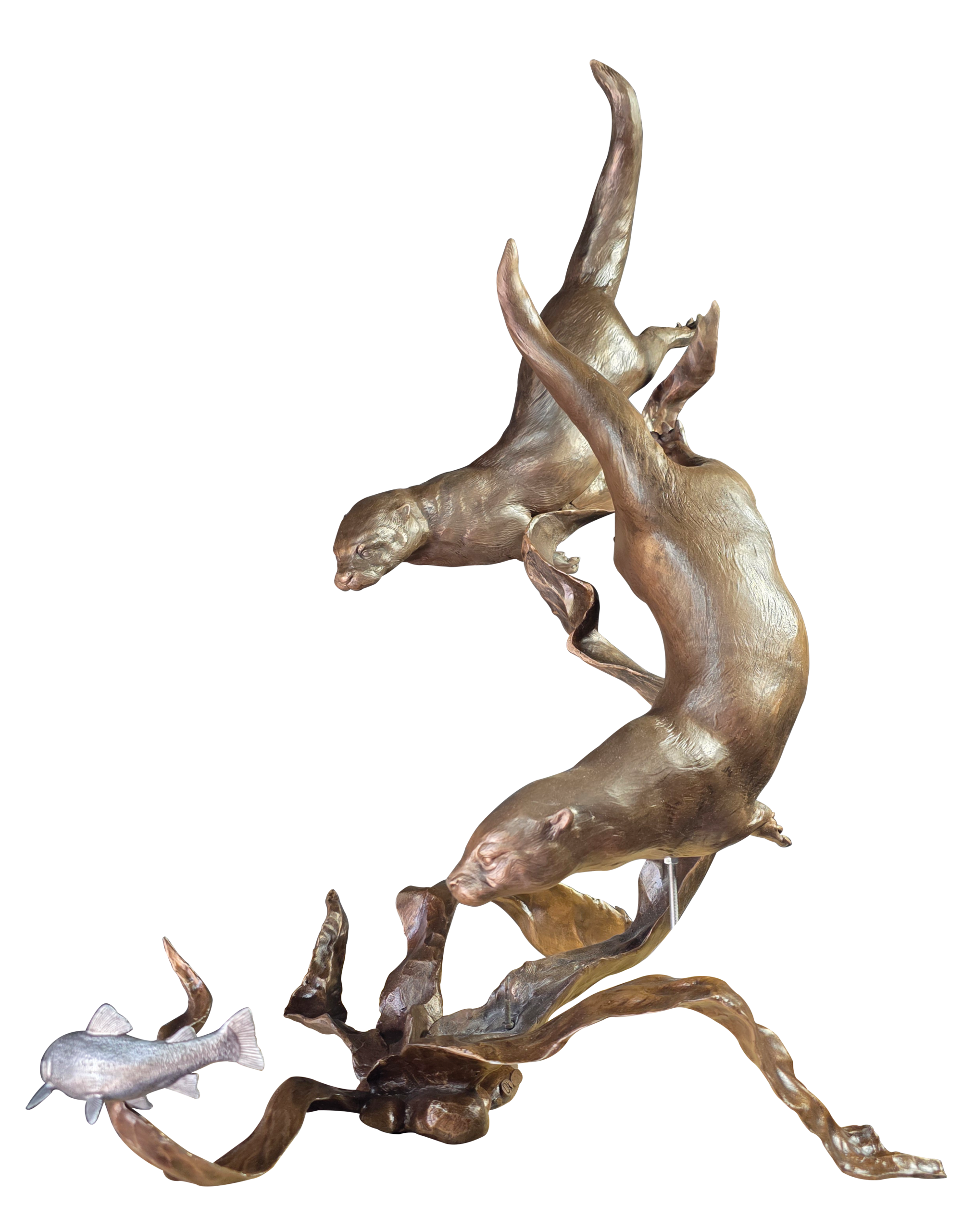 This wonderful sculpture has been crafted by Dean Kendrick, a master of natural wildlife design. He has studied the movement of Otters using both skilled photography and film to capture the subtle gyrations of the Otter twisting and turning in the flowing waters.