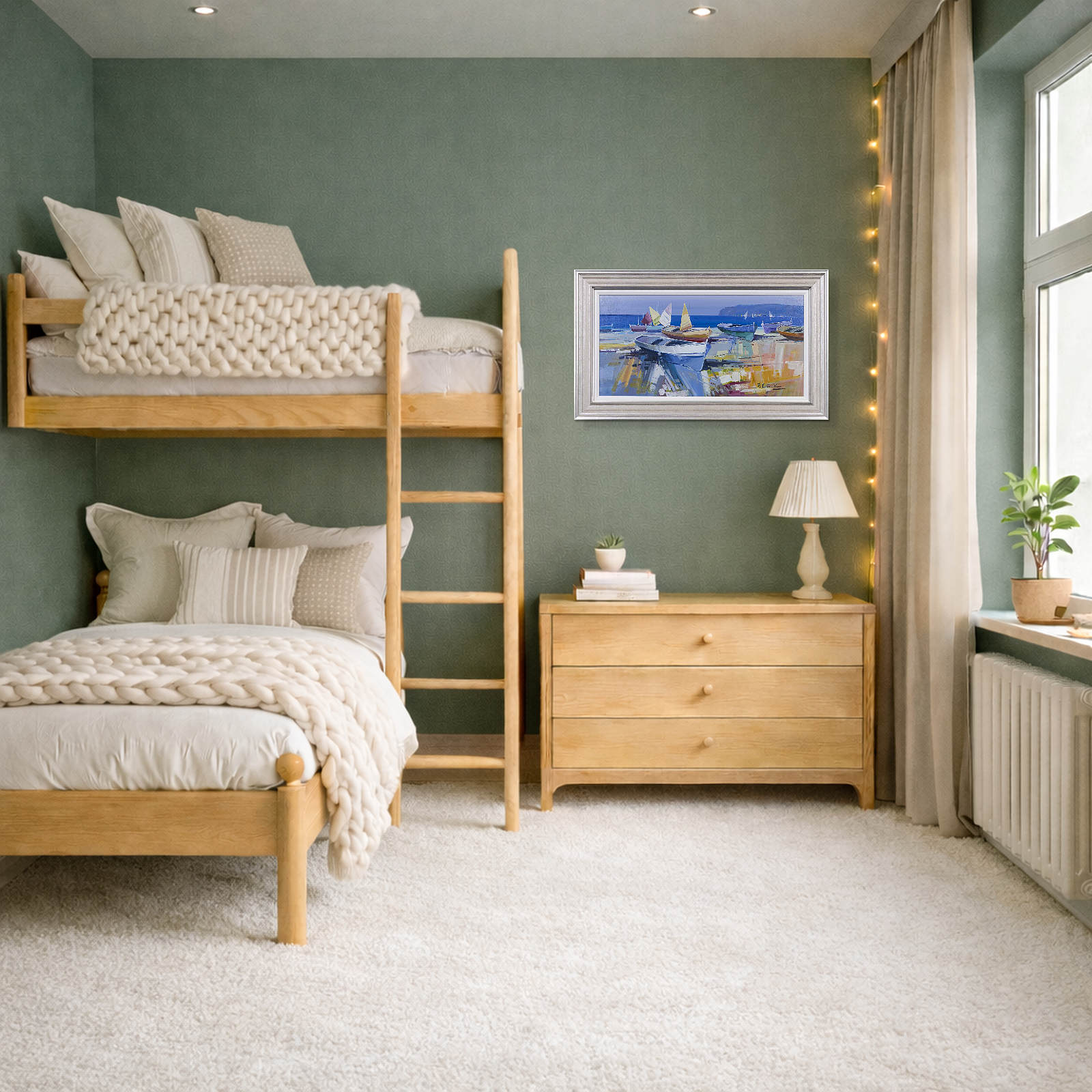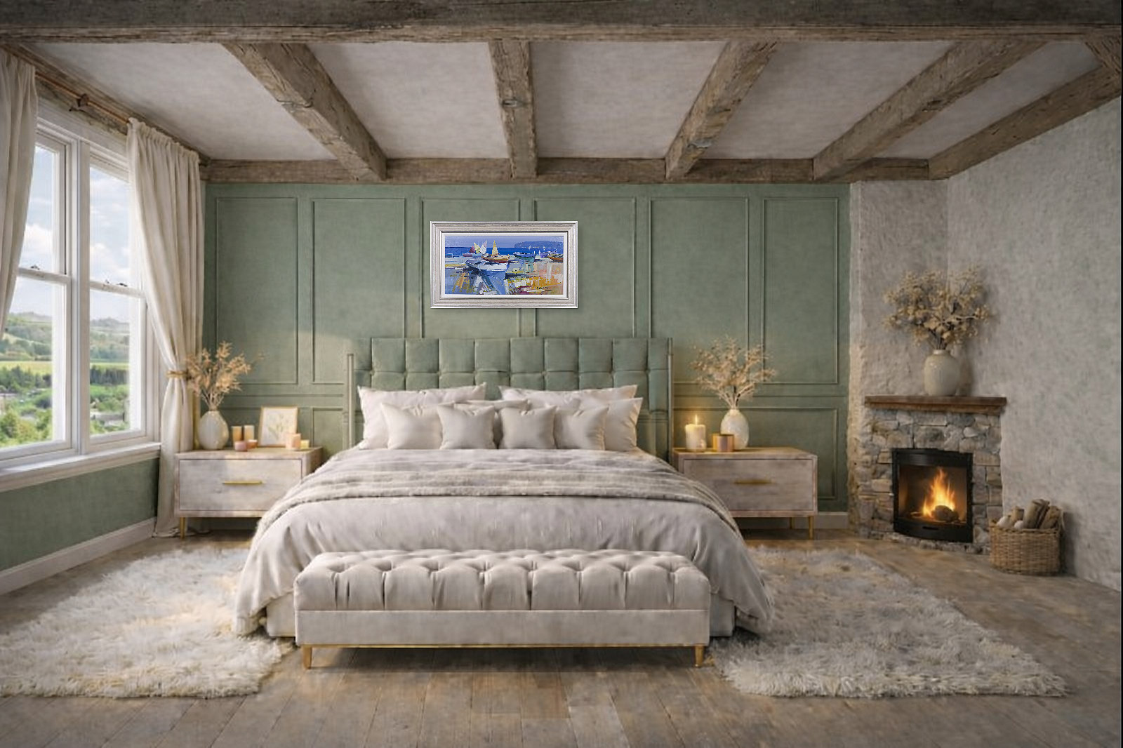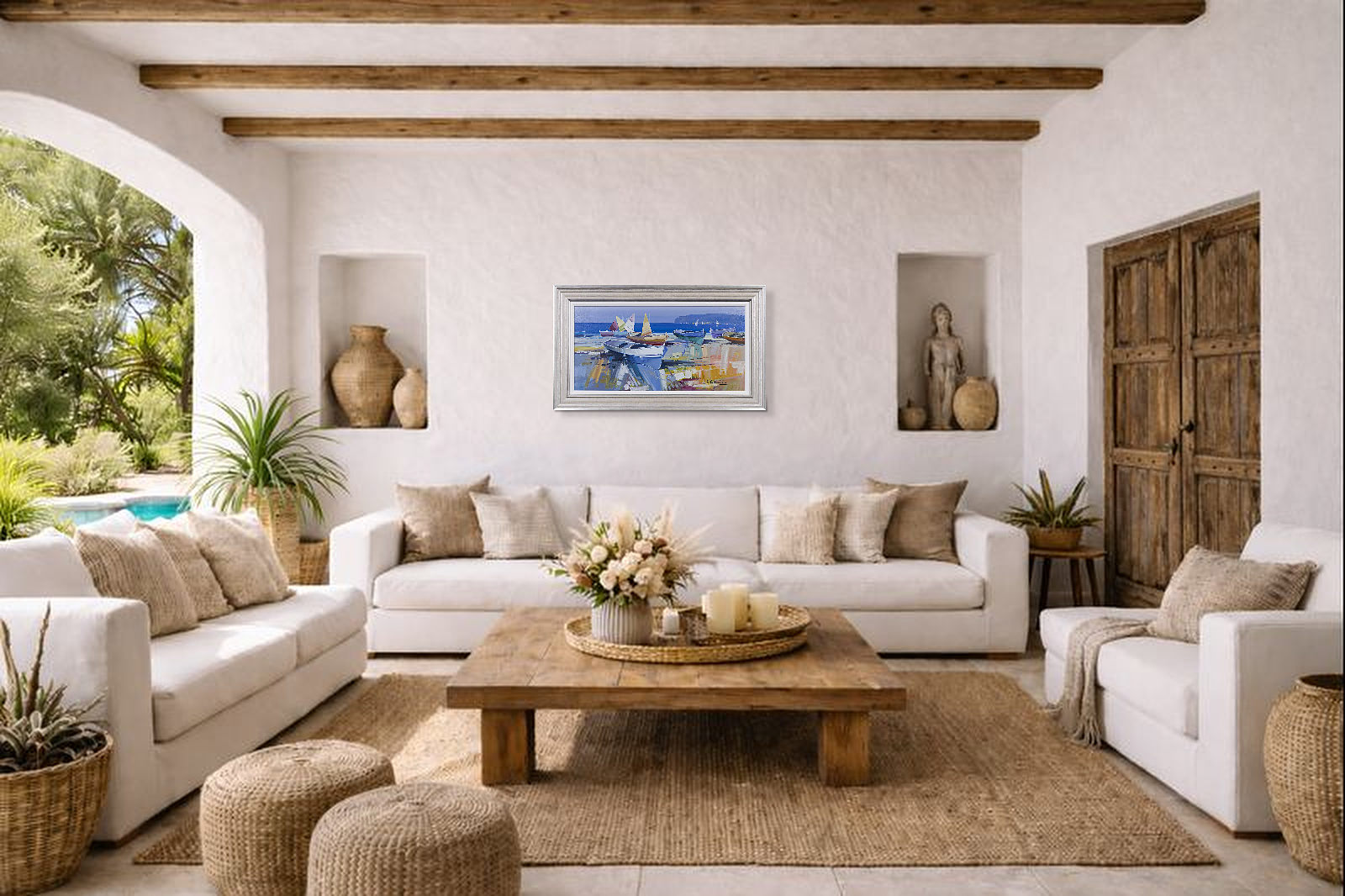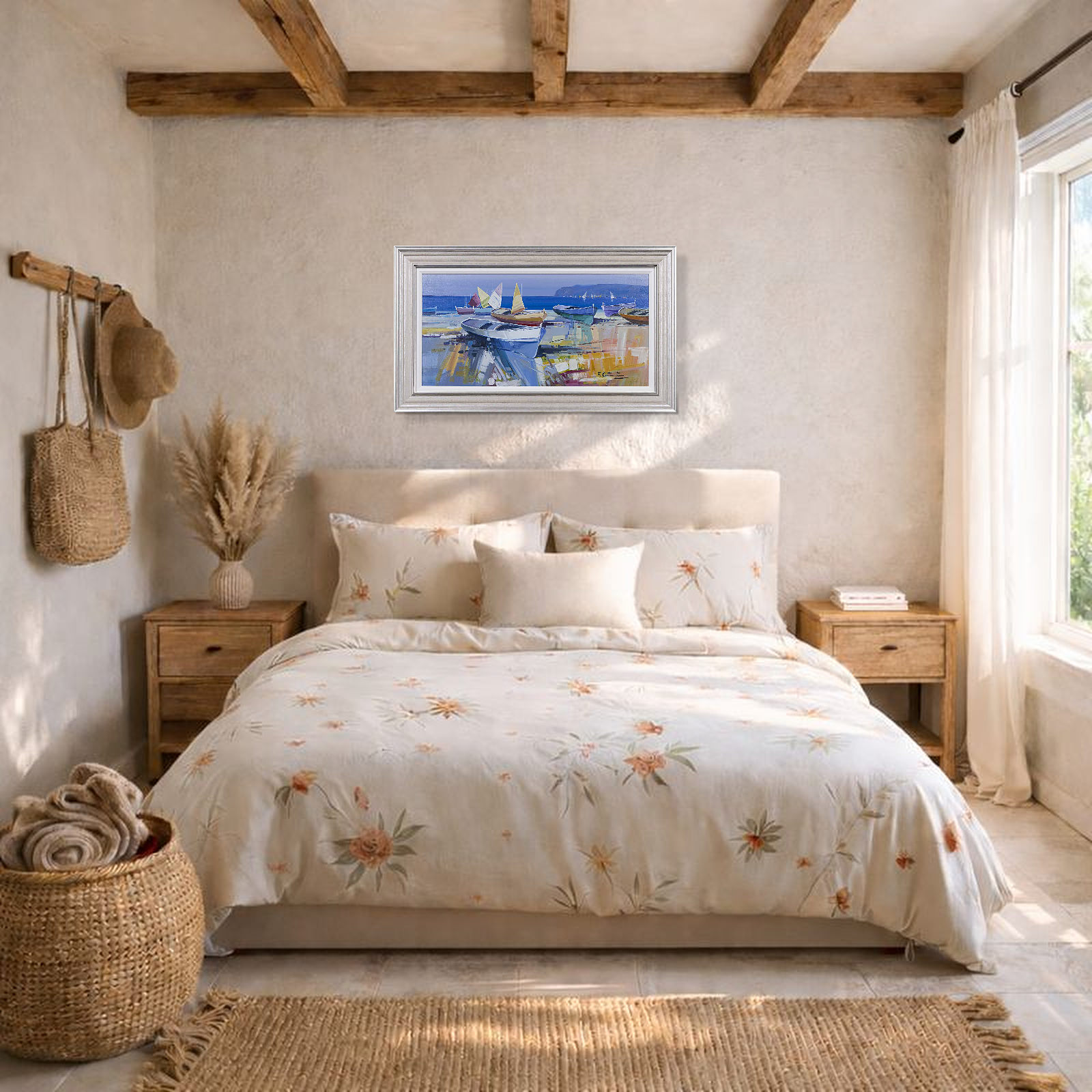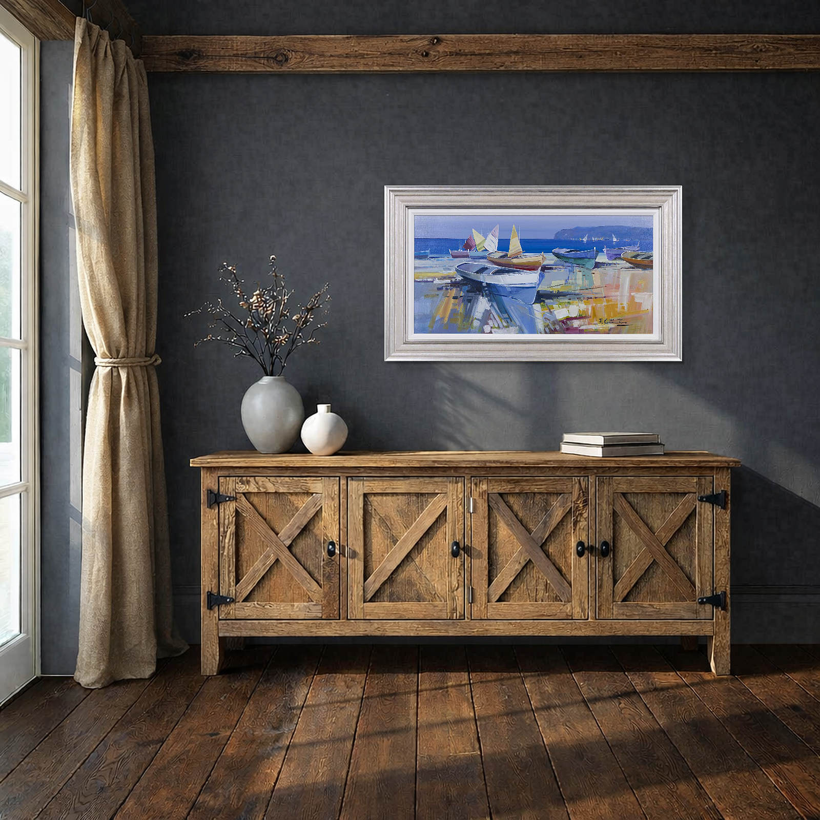 Fabio Constantino is an Italian painter celebrated for his luminous seascapes and atmospheric coastal scenes. This original painting utilises a beautiful soft palette which the artist is known for. Presented in silver/cream moulding with white slip as shown and ready to hang.