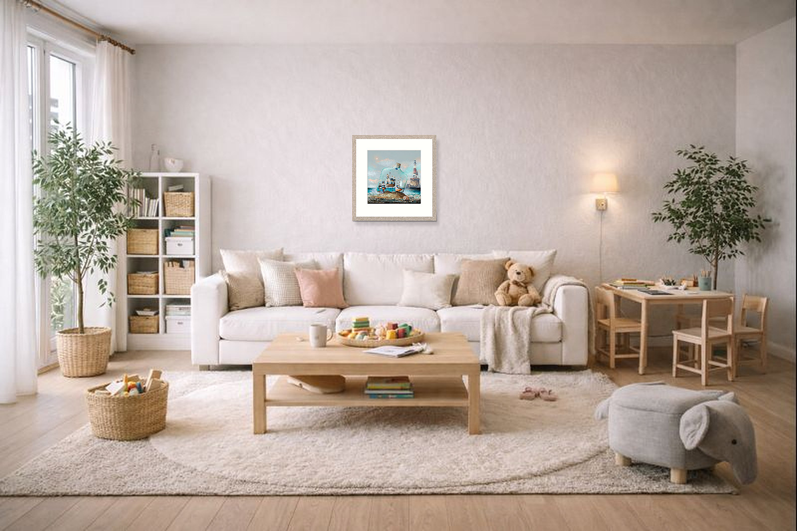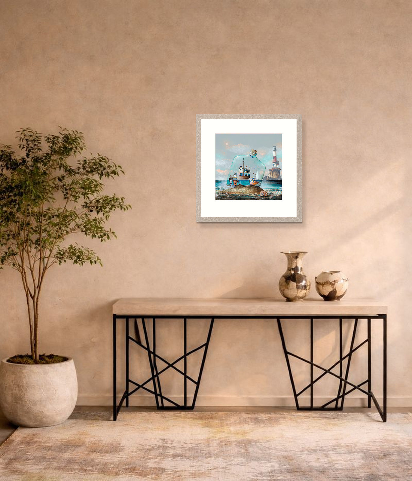 This artwork is available mounted (57.5x59cm) or framed in a 3cm whitewashed oak effect moulding as pictured and ready to hang (finished size 62×63.5cm). Fine quality limited edition of 150 and 15 Artist Proofs provided with Certificate of Authenticity. Signed and numbered by the artist. Printed with light fast inks on 300gsm fine art paper. Image size of actual artwork within the mount is 40 x 40cm.
