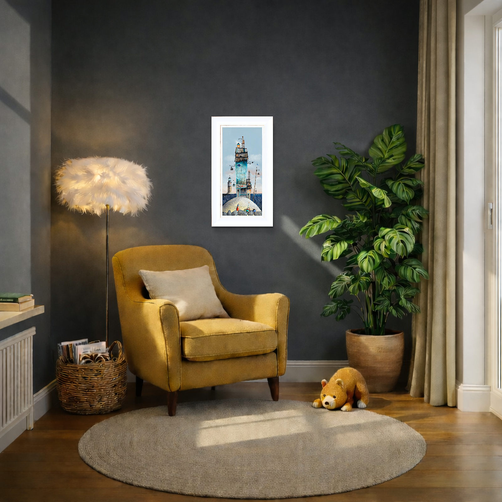 ‘Harbourside Boatyard’ is a stunning new release from Gary Walton. Gary is a hugely popular and collectable artist. At Forest Gallery we are proud to offer his full range of prints alongside some unique original paintings. This artwork is available ready to frame (26.5x60cm) or framed in a 7.5cm white frame with distressed edge detailing as shown and ready to hang.