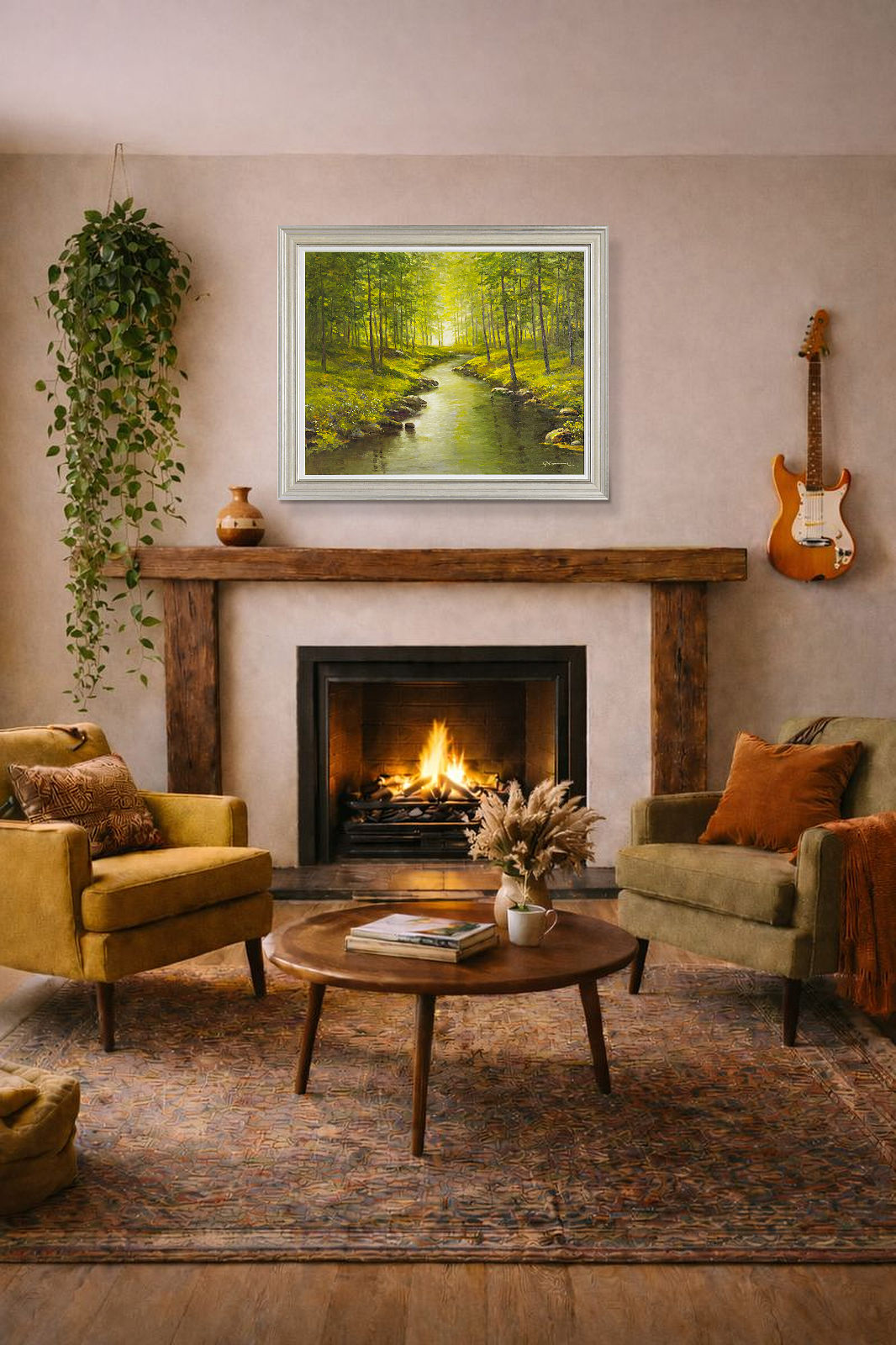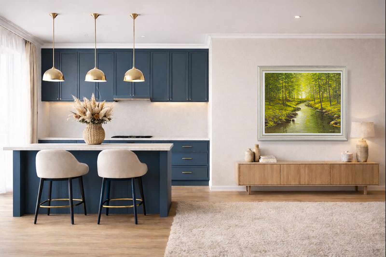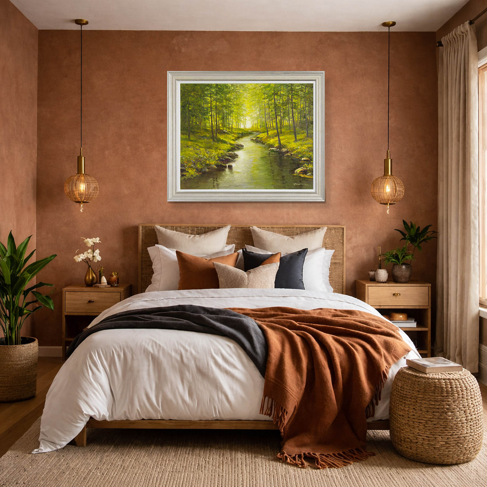 Enjoy forest bathing in this original landscape painting by the talented artist Gerhard Nesvadba. Presented in silver/cream moulding with white slip as shown and ready to hang.