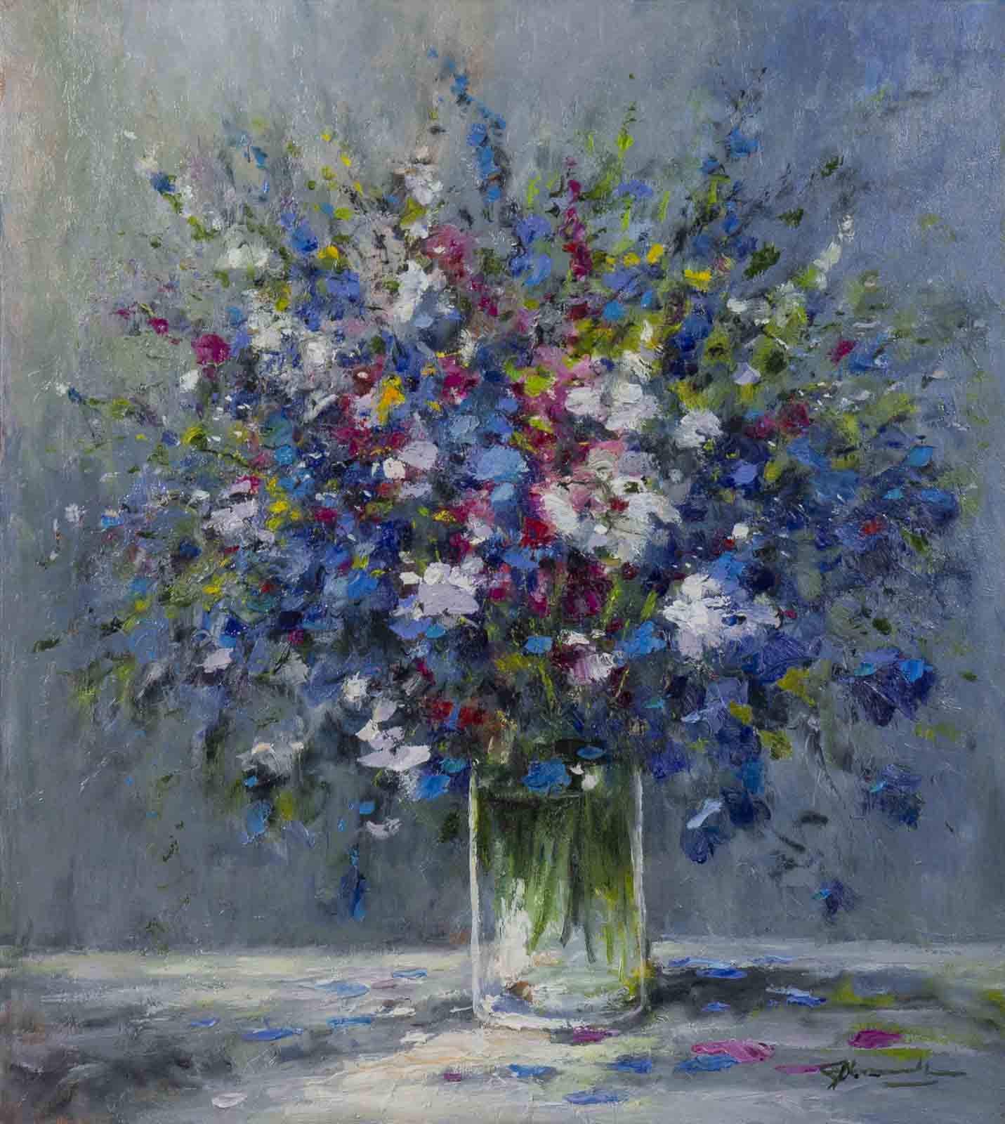 A beautiful floral display painted in oils by the talented artist Gerhard Nesvadba. Presented framed as shown and ready to hang.