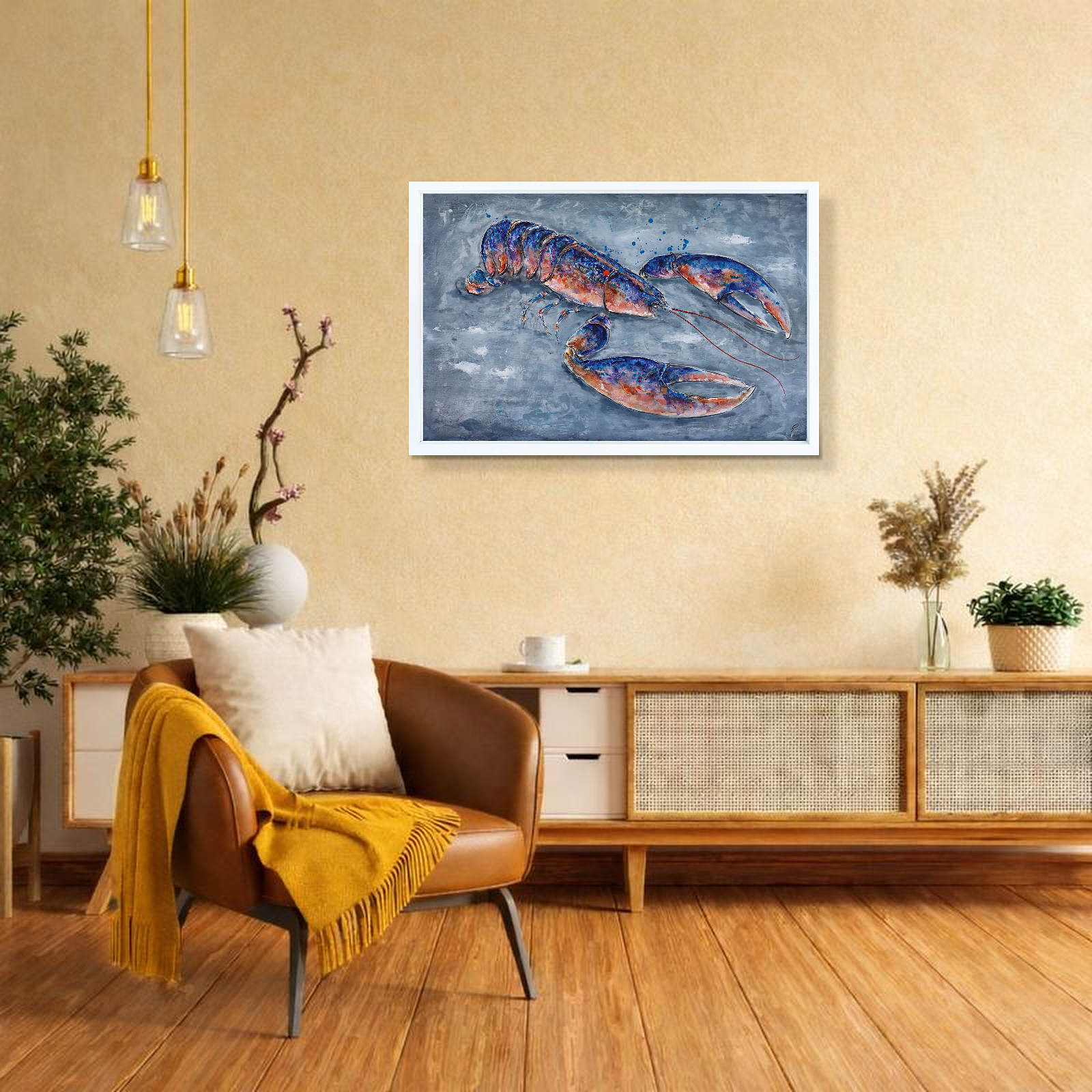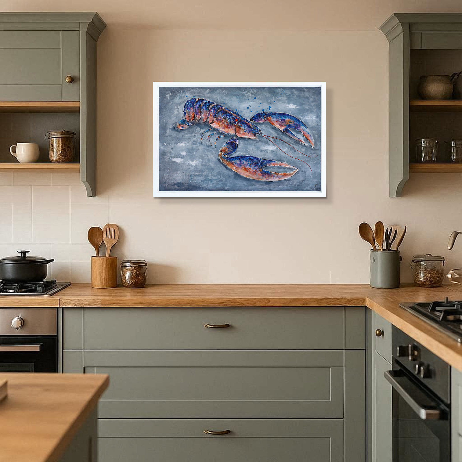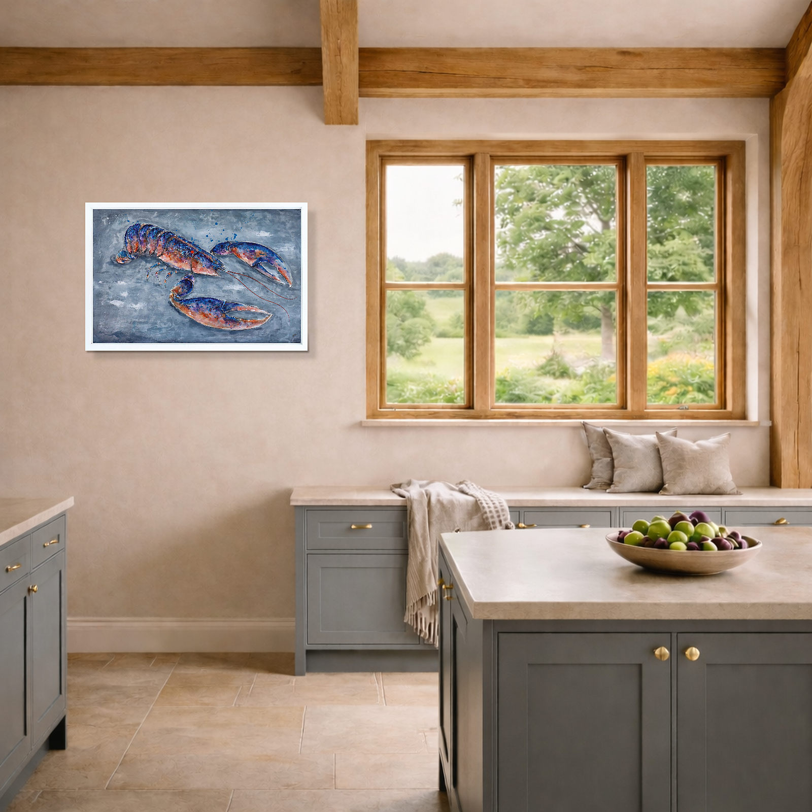 A creative original painting by artist Giles Ward featuring heavy texture, layered strokes and inks to give a lifelike quality to the subject. Framed in a white floating effect frame and ready to hang.