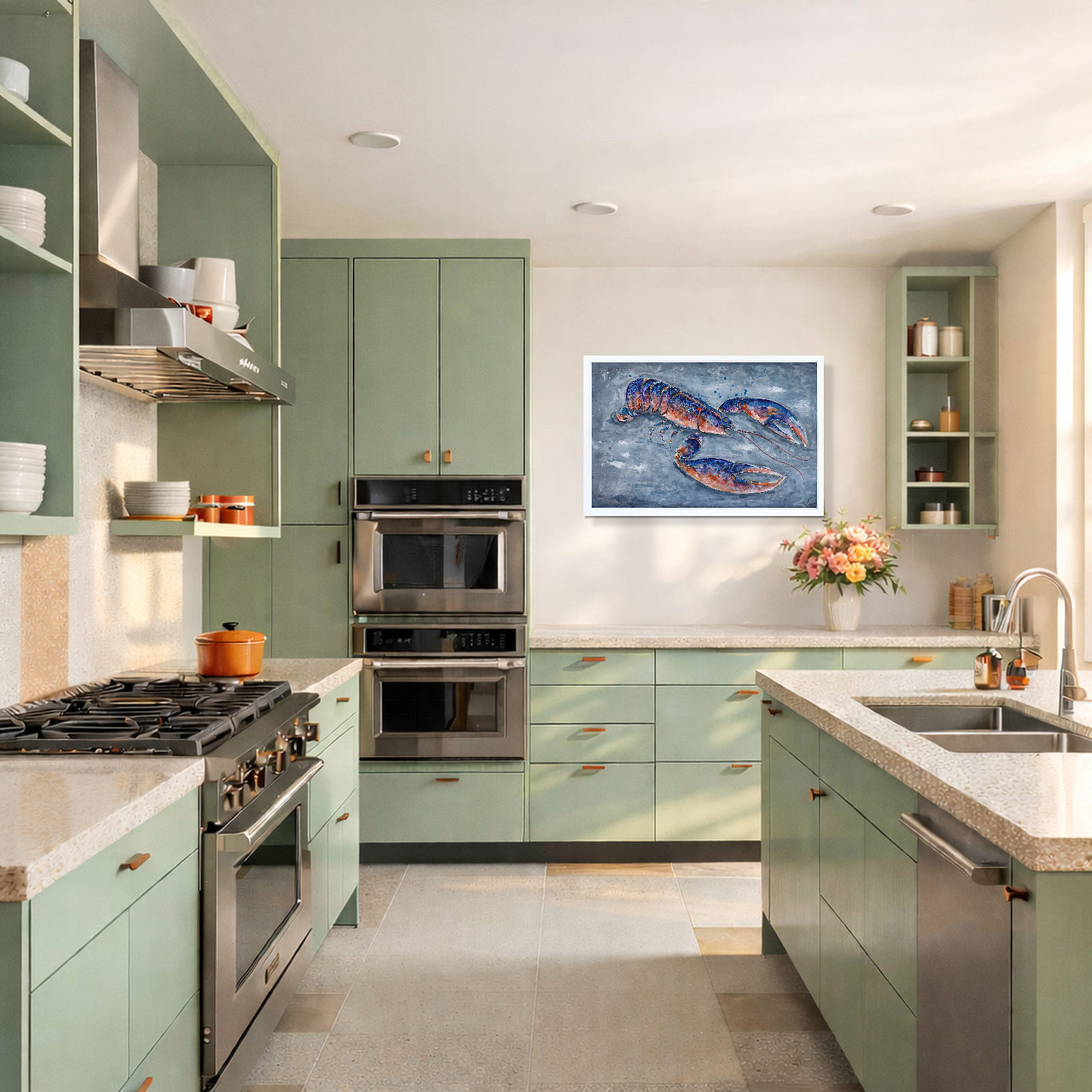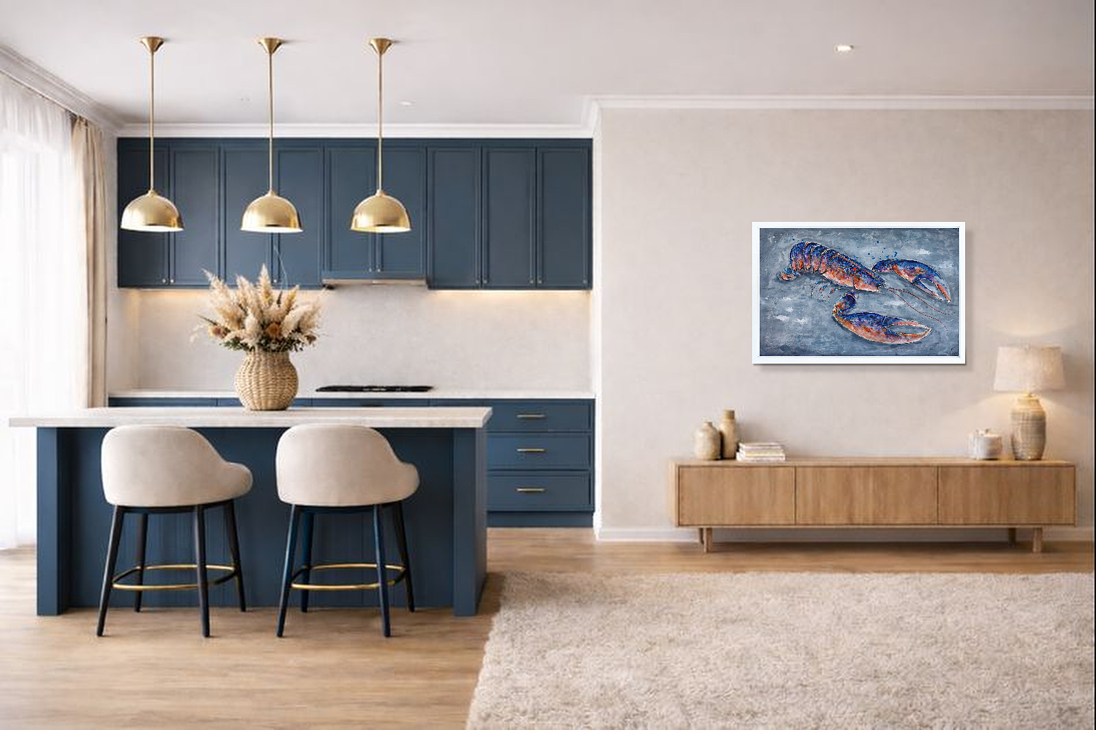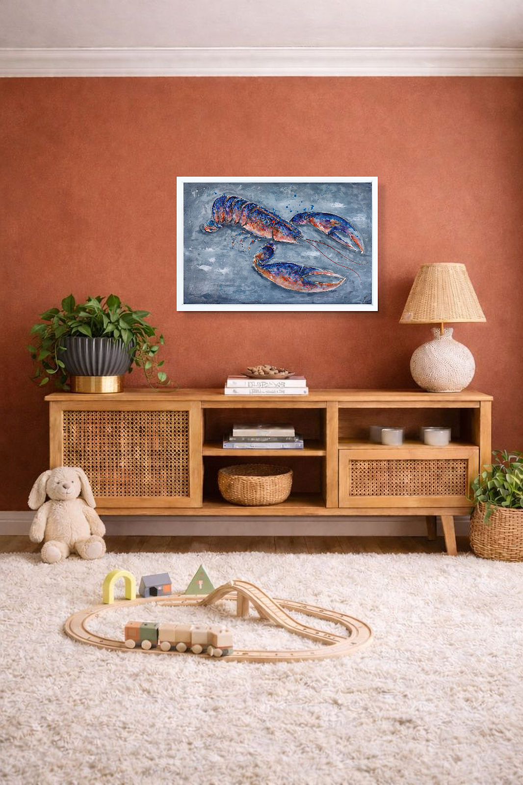 A creative original painting by artist Giles Ward featuring heavy texture, layered strokes and inks to give a lifelike quality to the subject. Framed in a white floating effect frame and ready to hang.