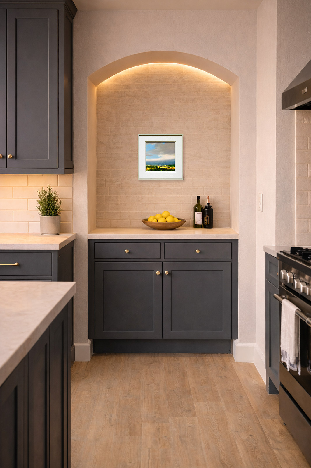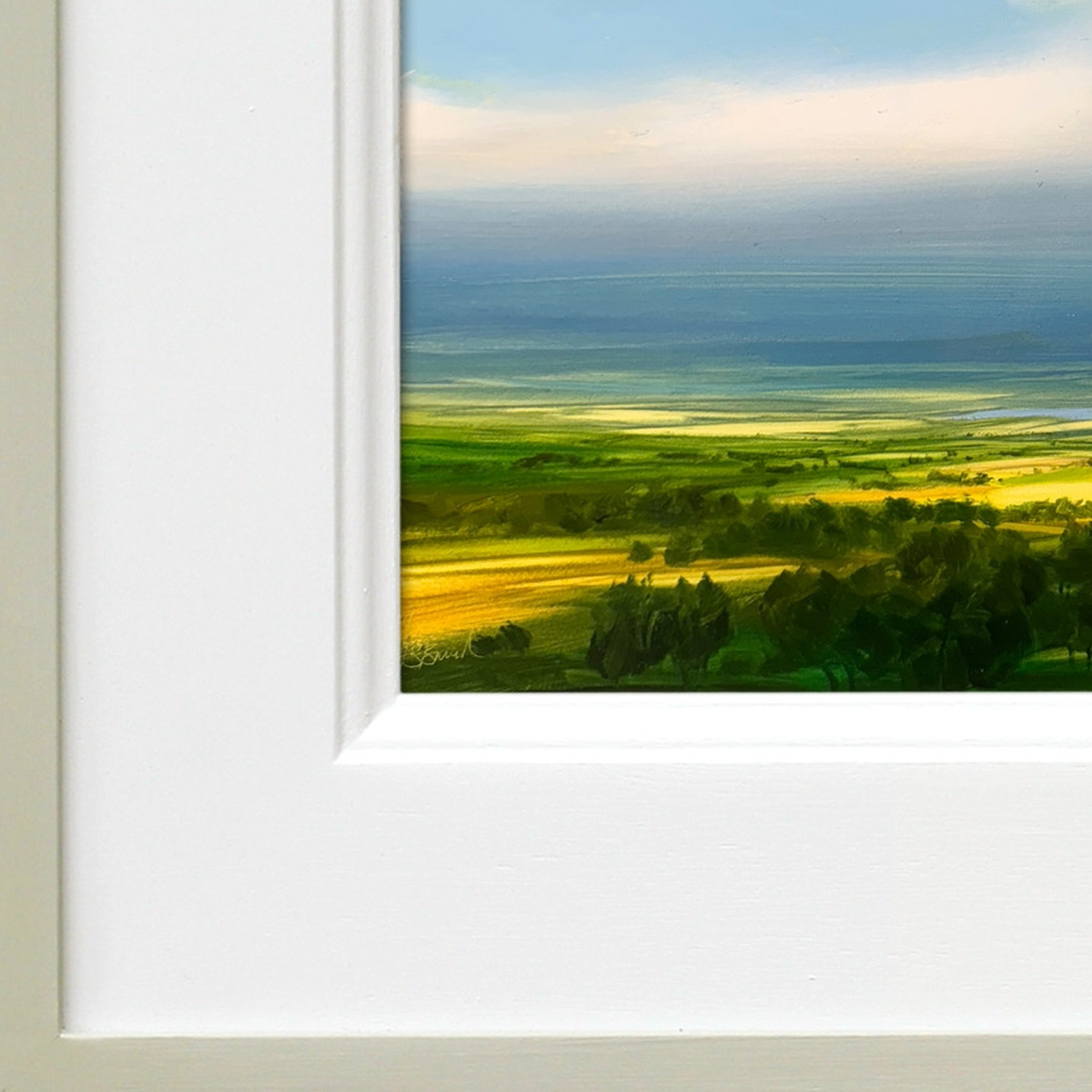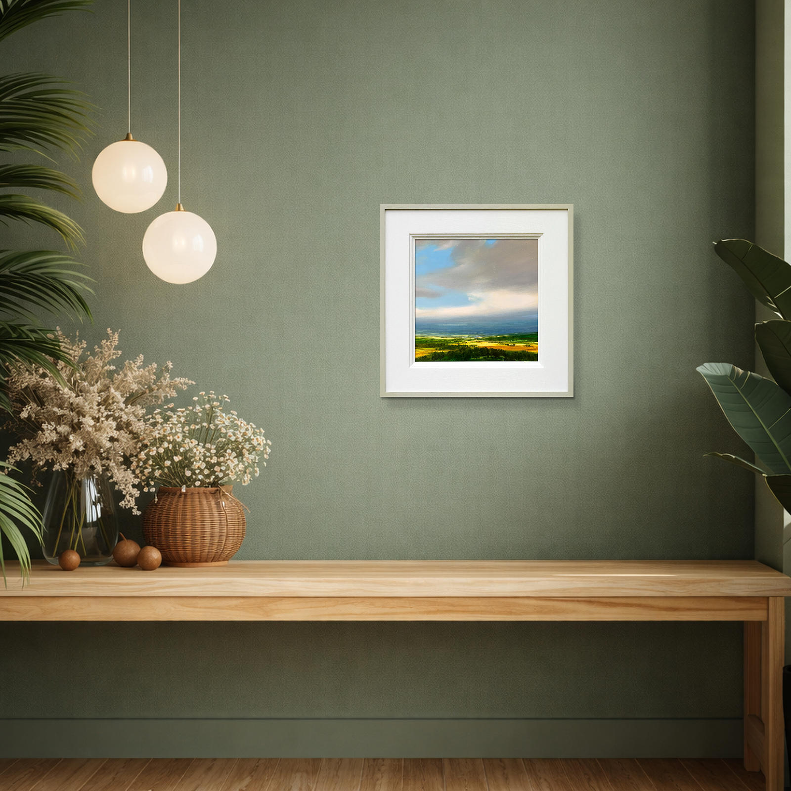 Striking original oil painting by best-selling artist Harry Brioche. This lovely small landscape painting encapsulates Harry’s wonderful style beautifully and will brighten up any space. Framed in the artist’s trademark hand painted frame and ready to hang.