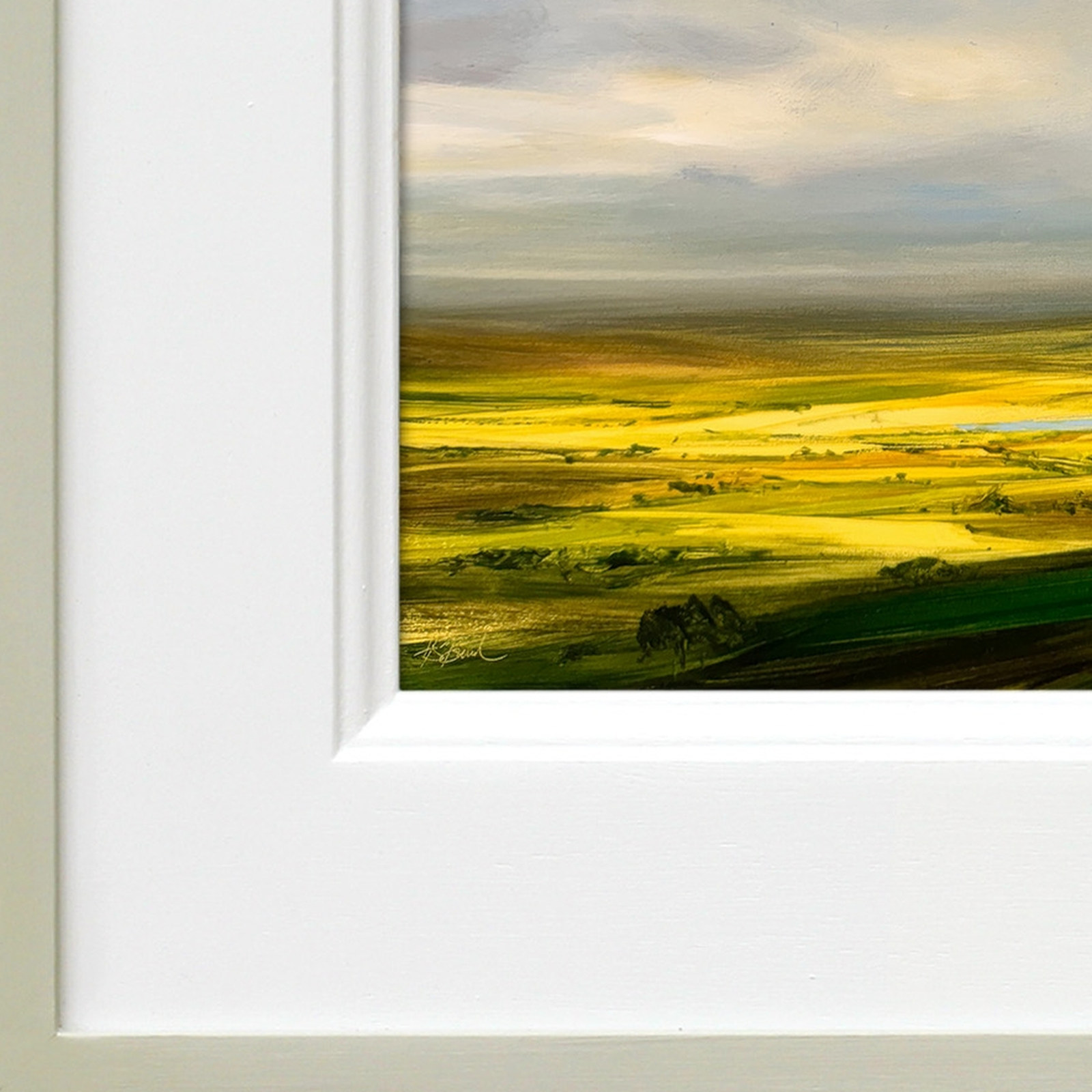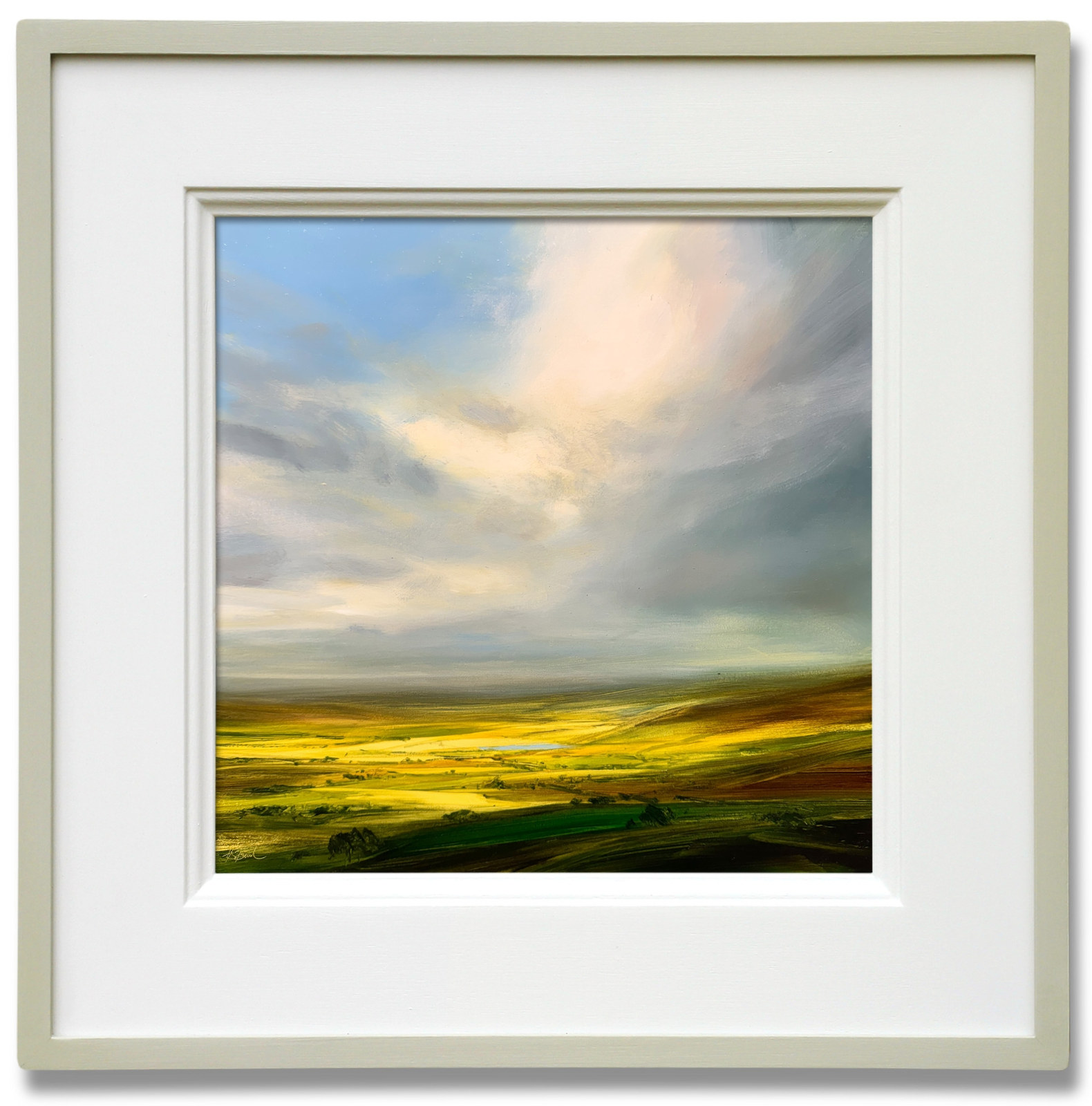 Striking original oil painting by best-selling artist Harry Brioche. This lovely small landscape painting encapsulates Harry’s wonderful style beautifully and will brighten up any space. Framed in the artist’s trademark hand painted frame and ready to hang.