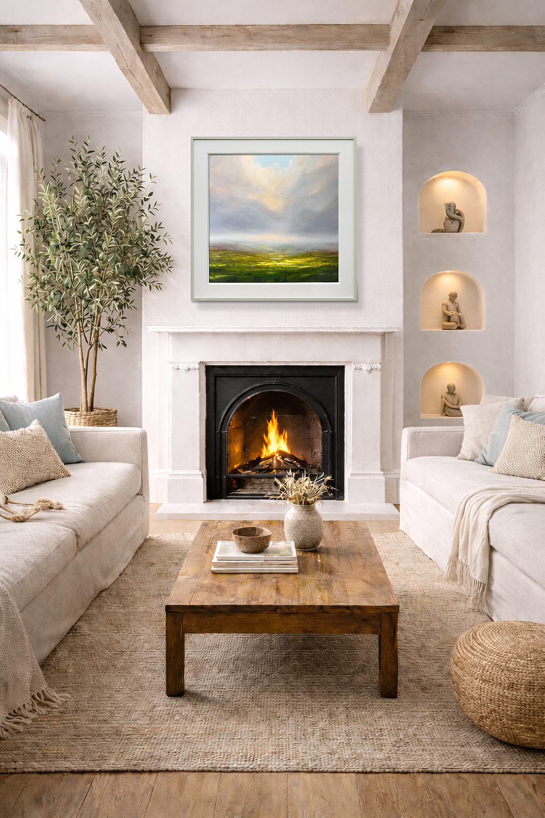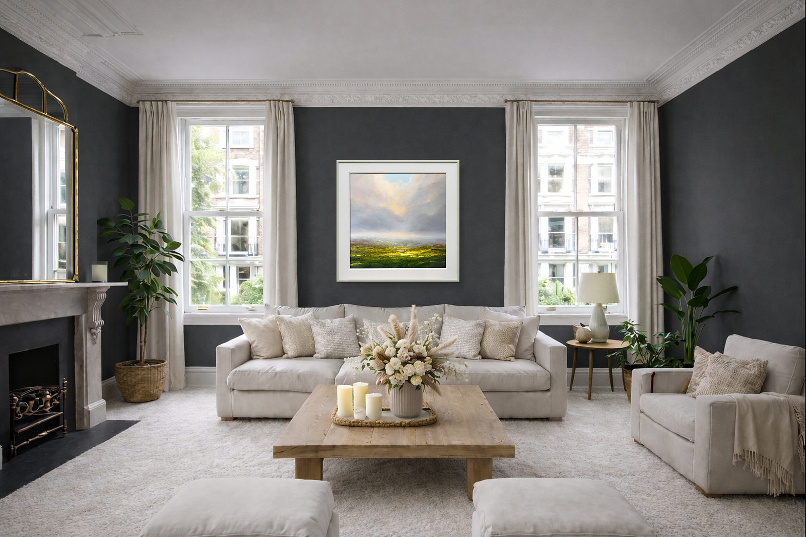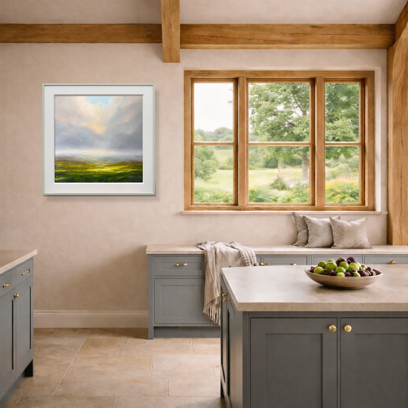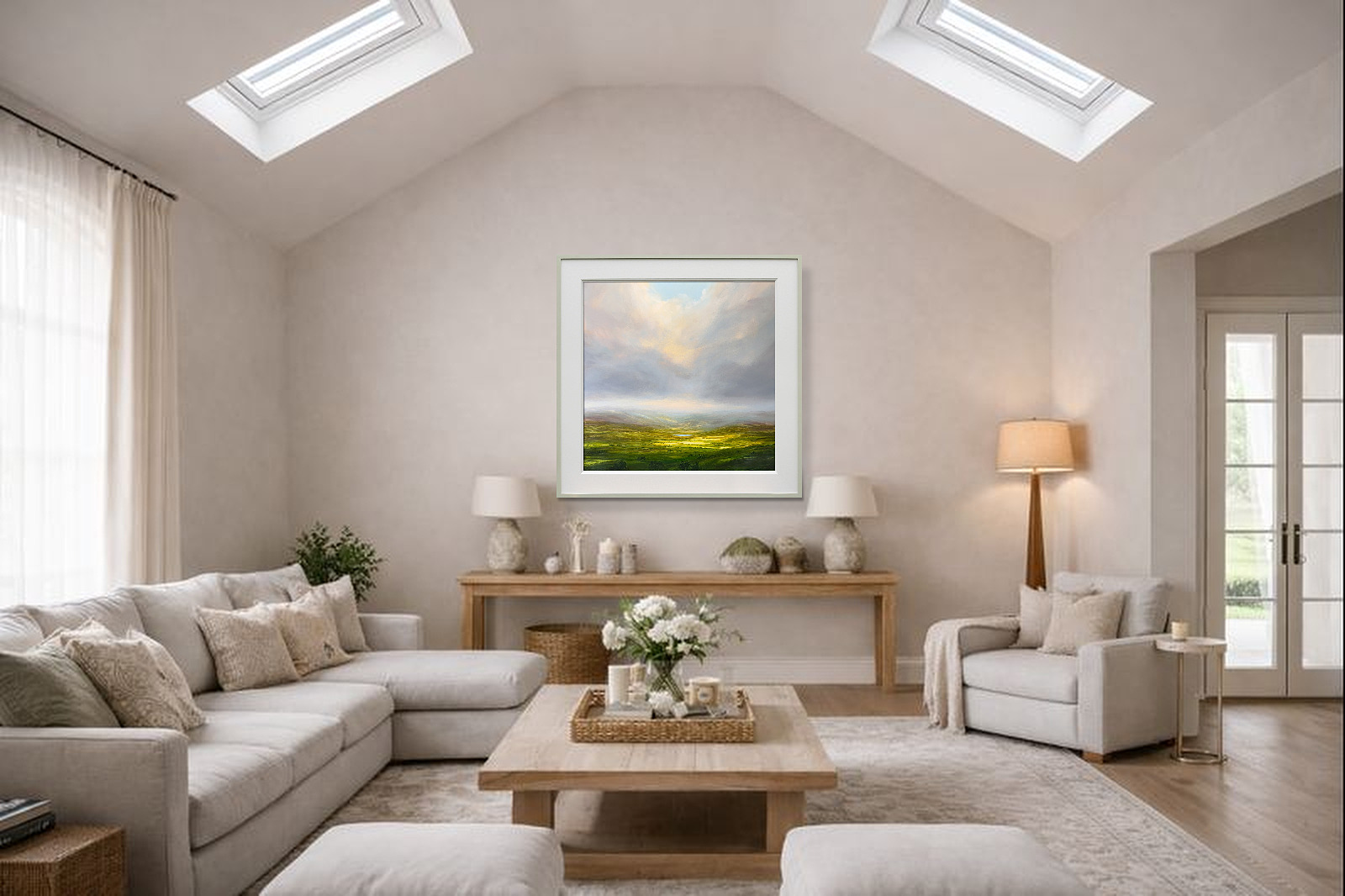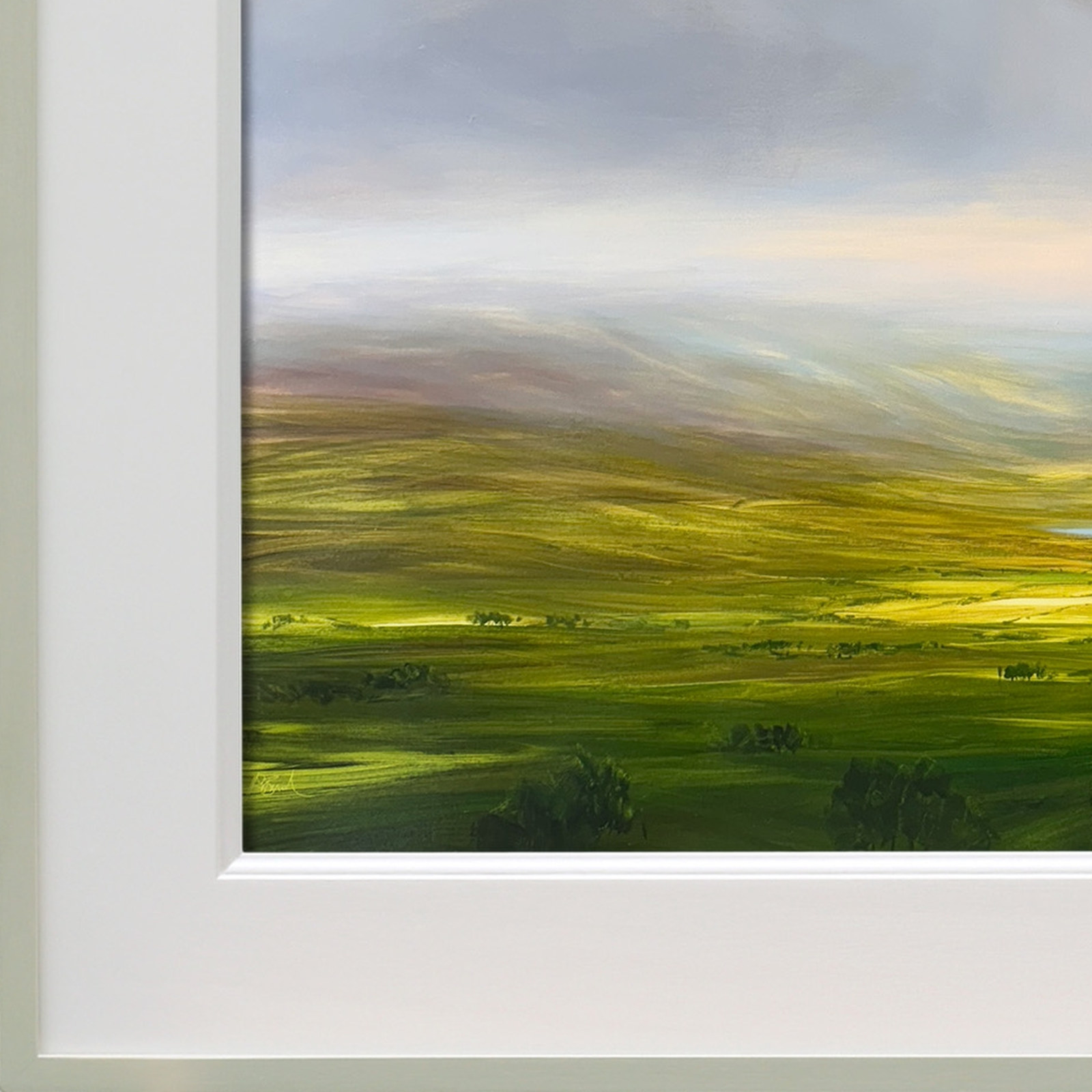 Stunning large landscape oil painting by best-selling artist Harry Brioche. Framed in the artist’s trademark hand painted frame and ready to hang.