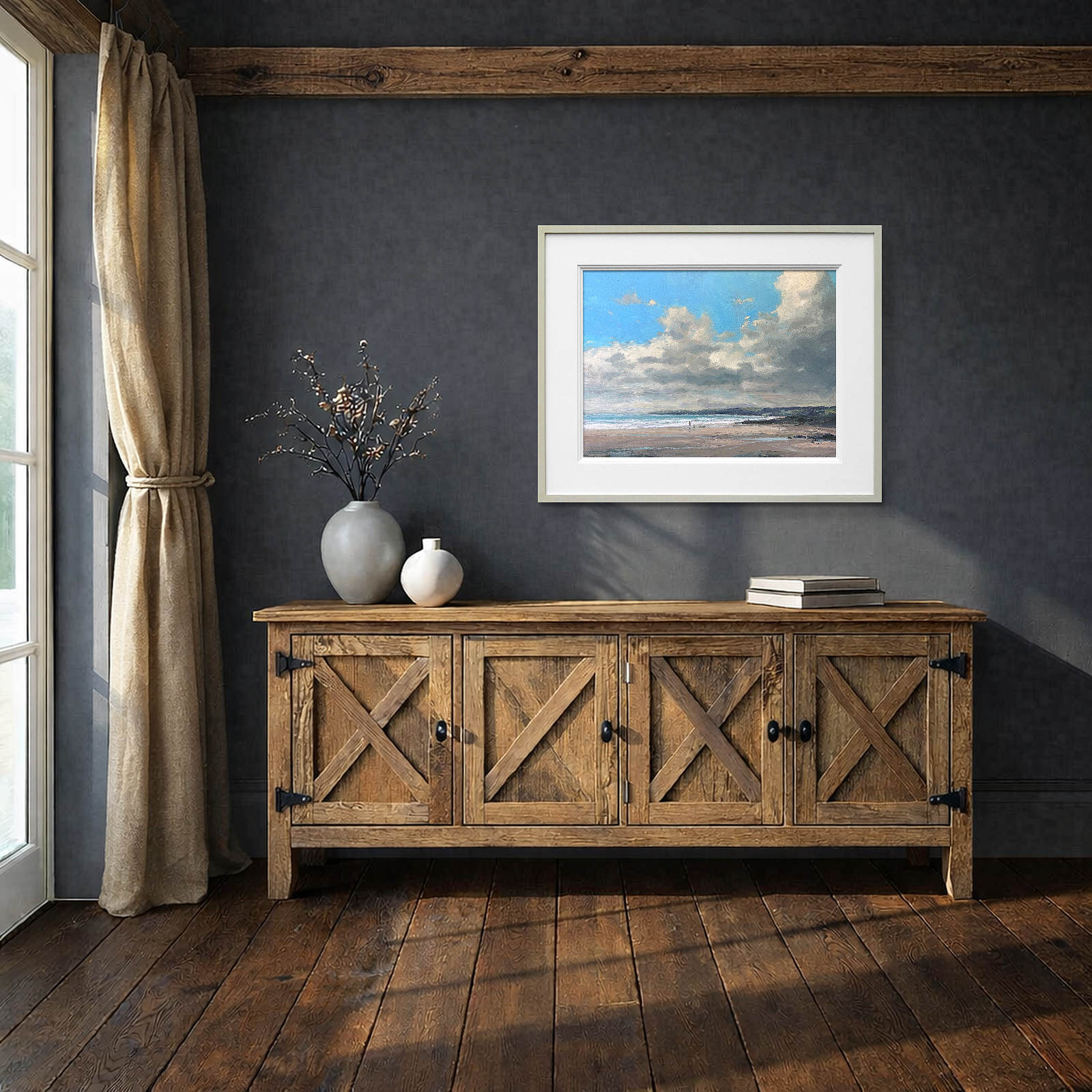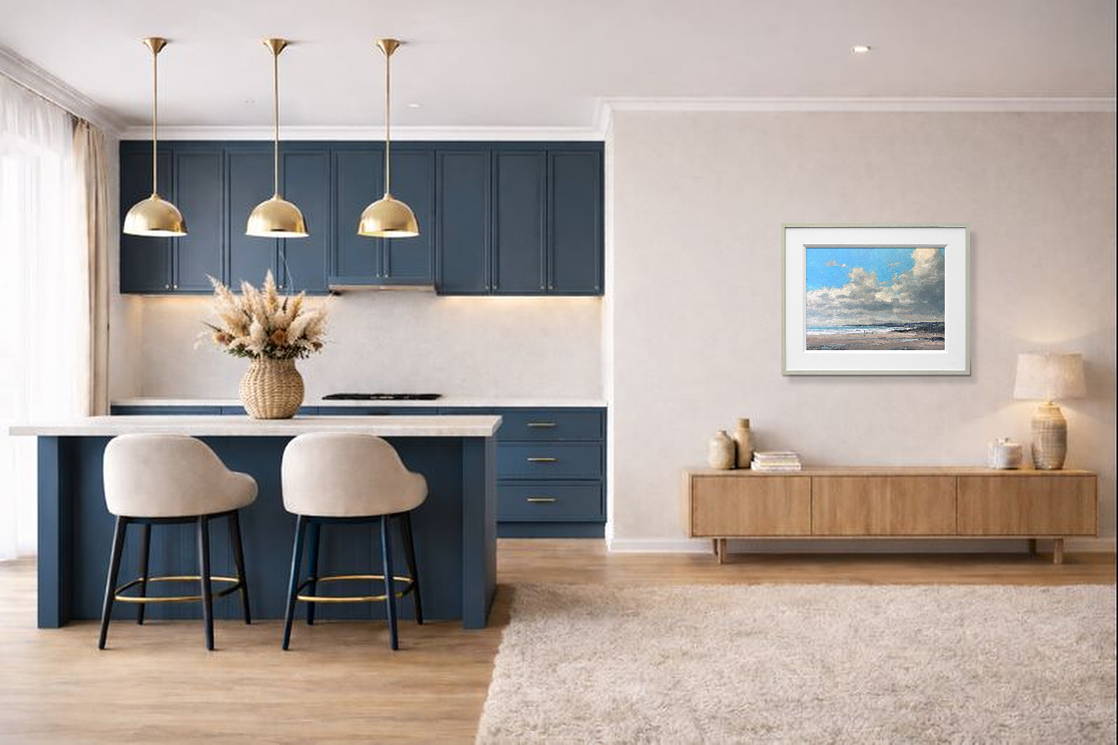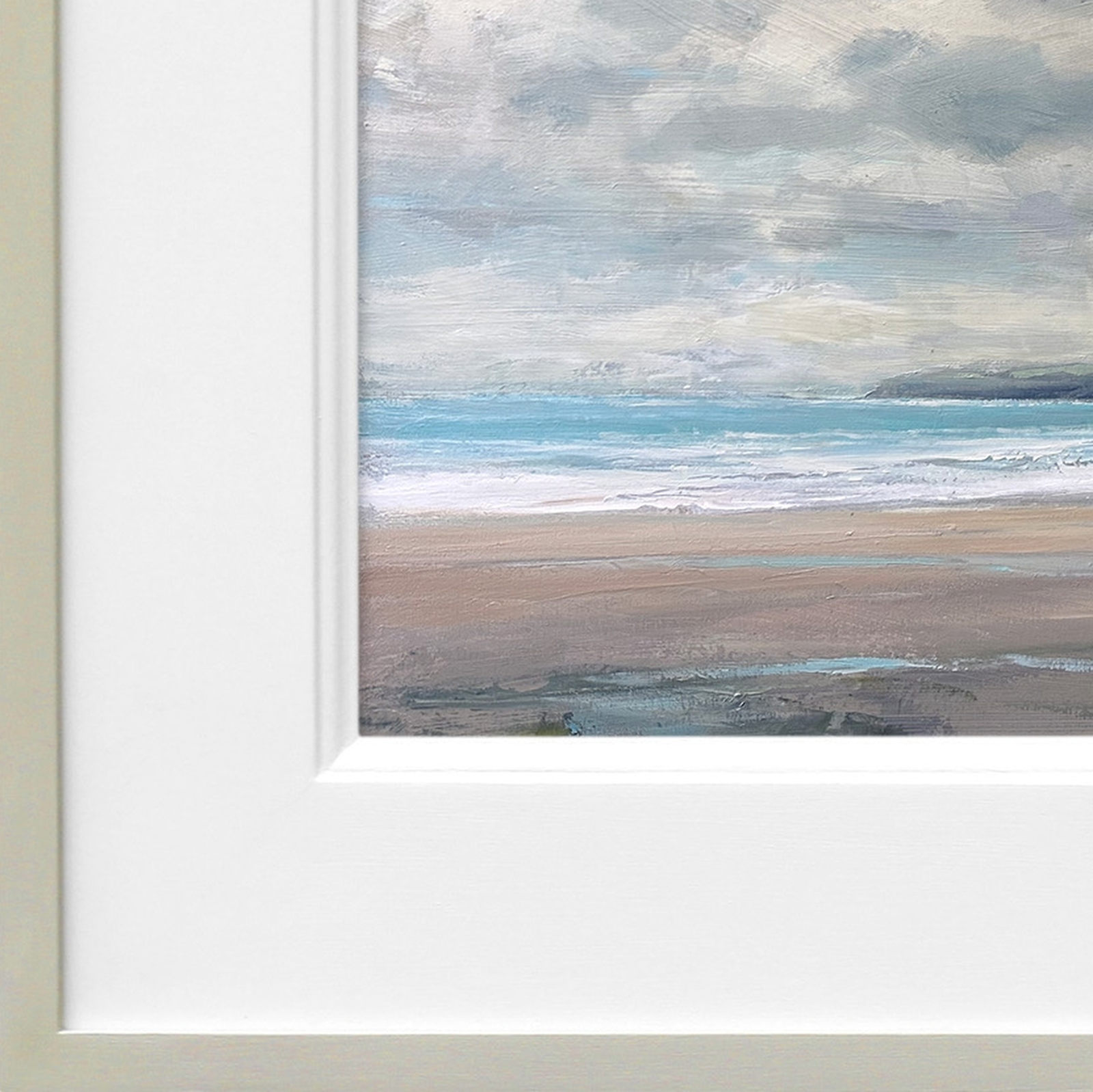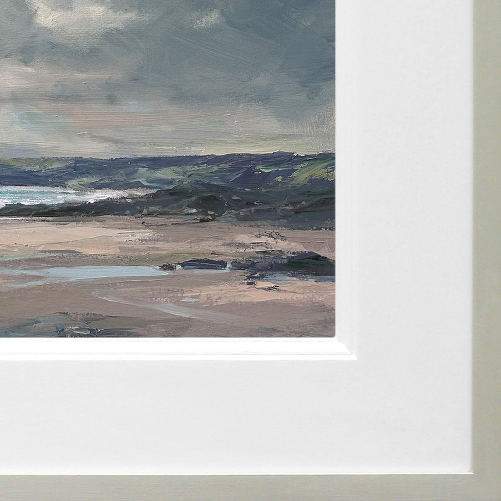 Stunning coastal oil painting by best-selling artist Harry Brioche. Framed in the artist’s trademark hand painted frame and ready to hang.