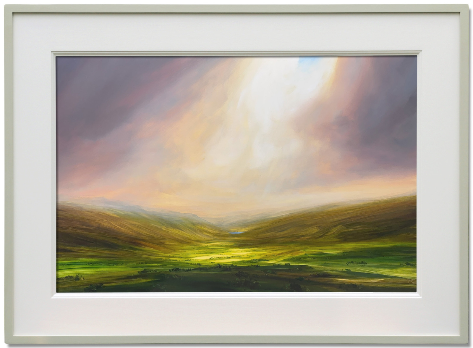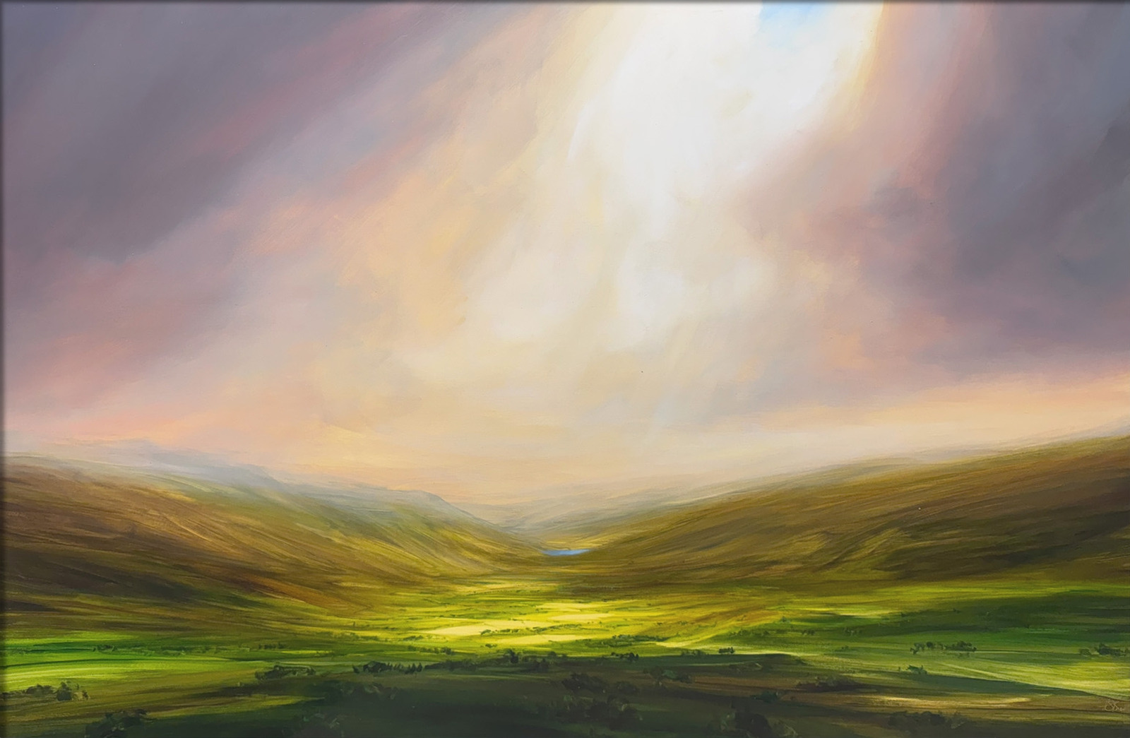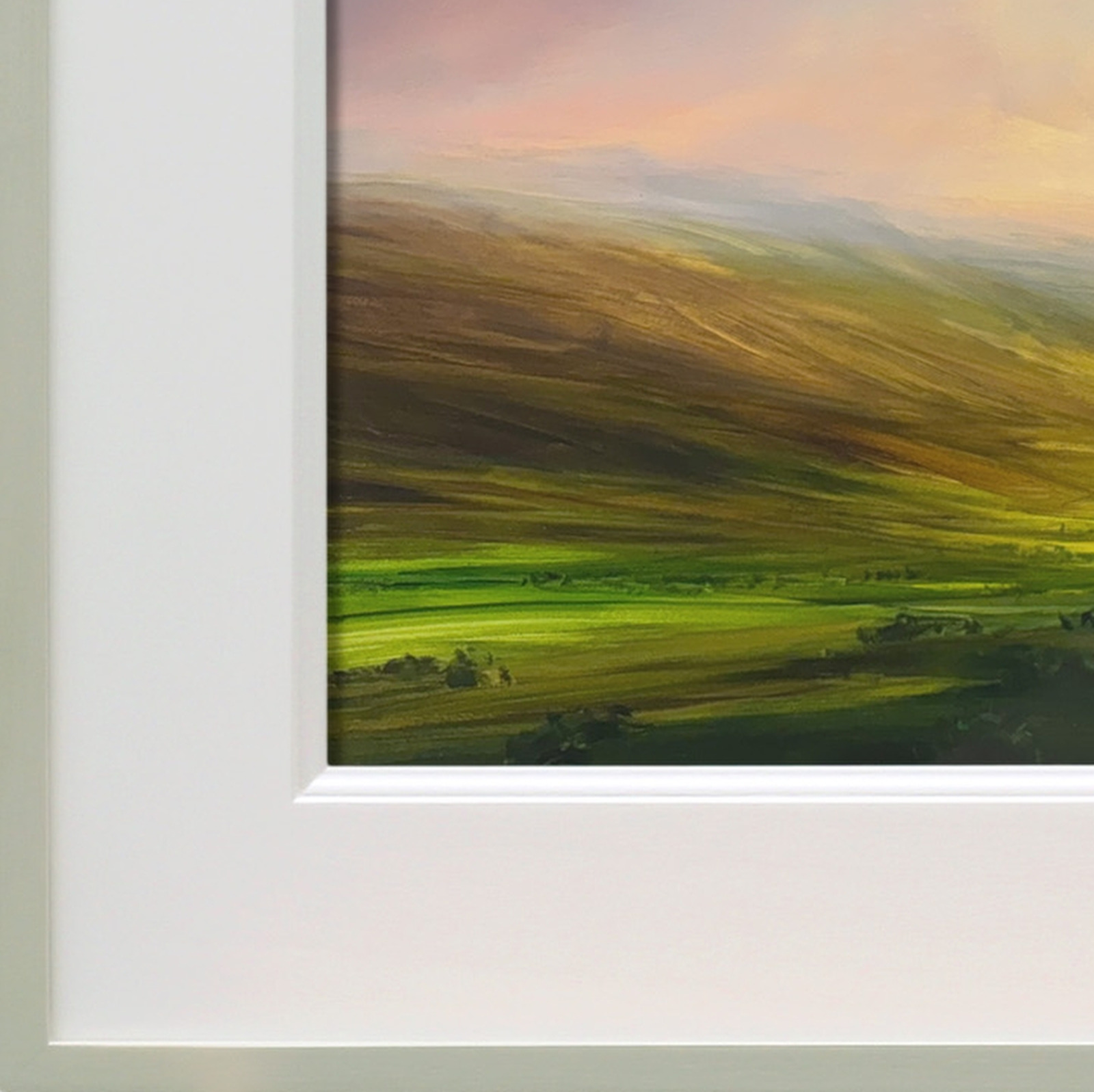 Stunning large landscape oil painting by best-selling artist Harry Brioche. Framed in the artist’s trademark hand painted frame and ready to hang.