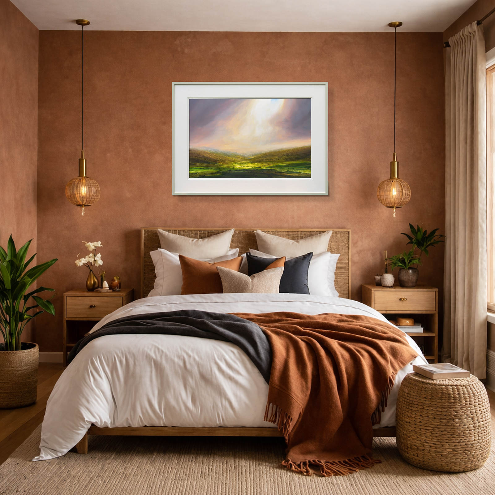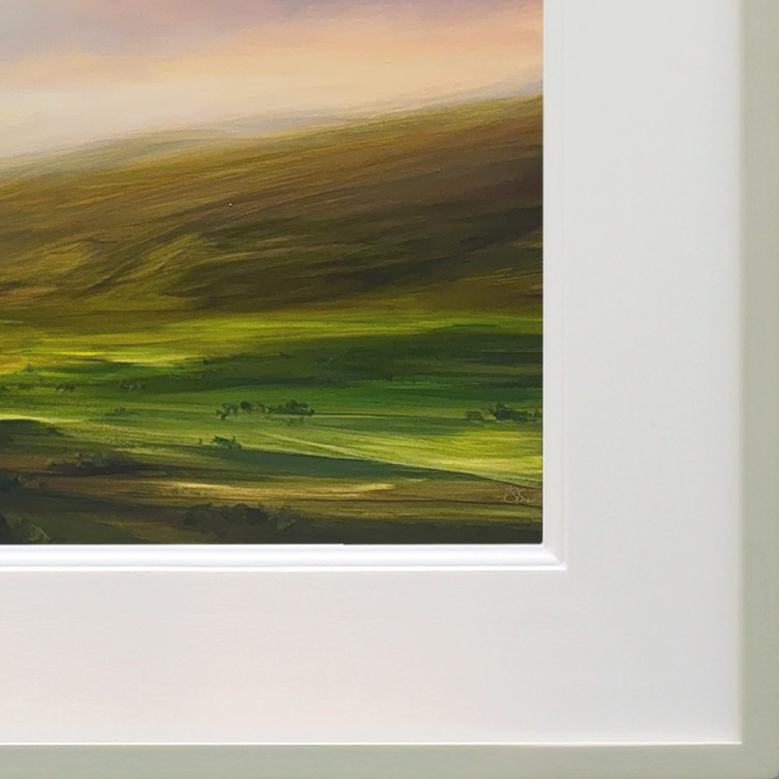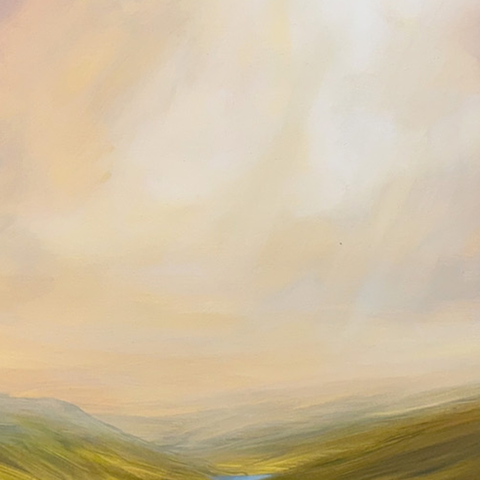Stunning large landscape oil painting by best-selling artist Harry Brioche. Framed in the artist’s trademark hand painted frame and ready to hang.