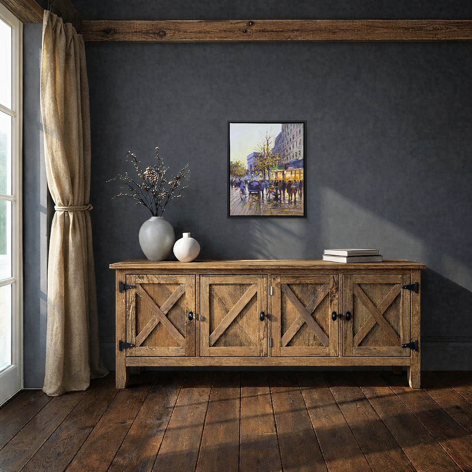 Henderson Cisz is an acclaimed artist best known for his atmospheric cityscapes. This original oil painting featuring Paris captures the city’s splendour and charm beautifully. Painted on canvas and presented in contemporary black frame as shown.