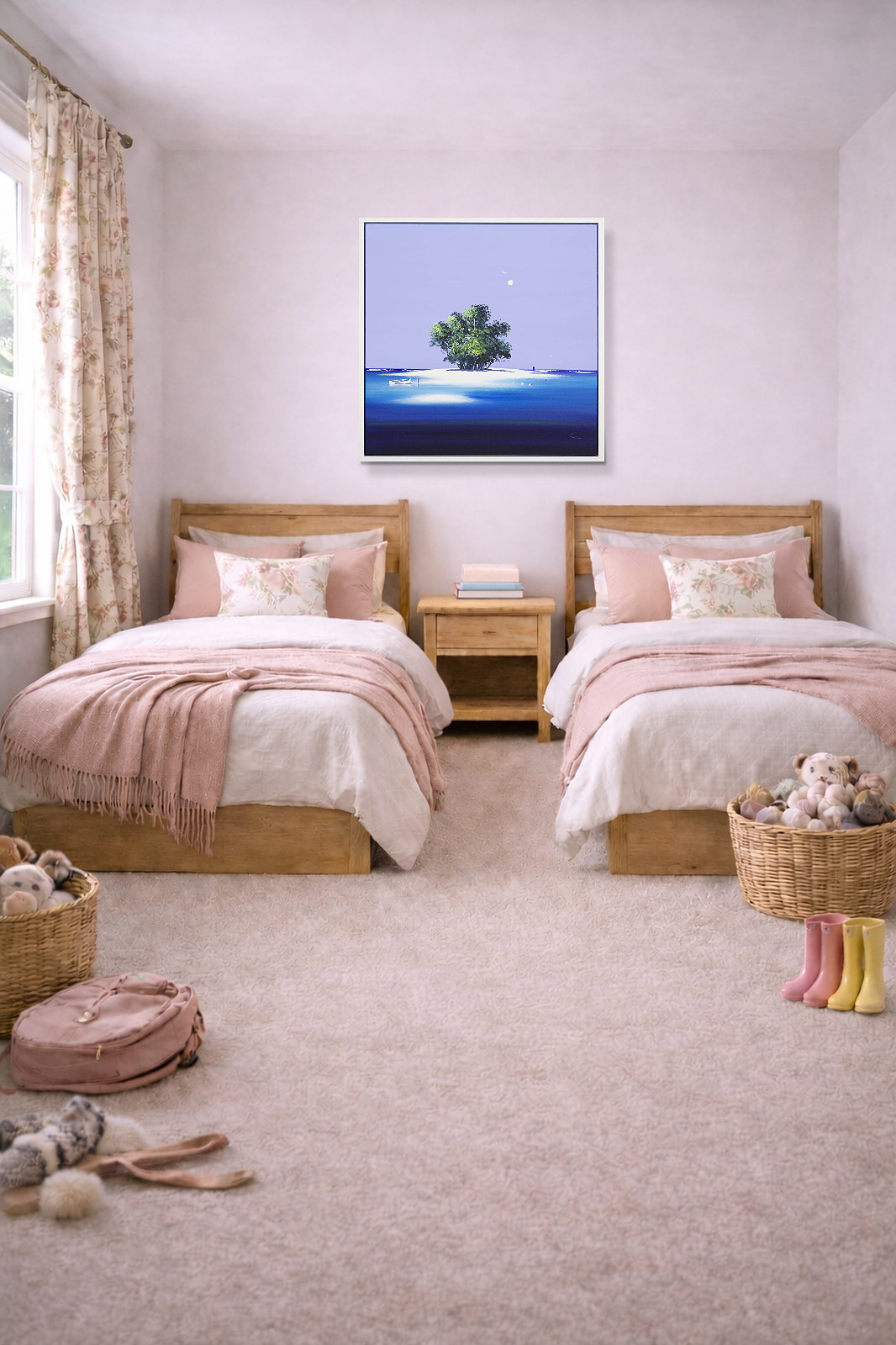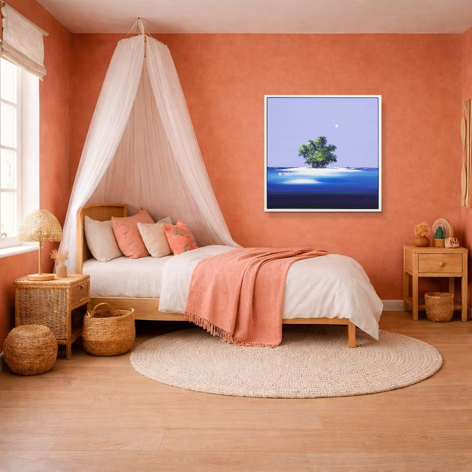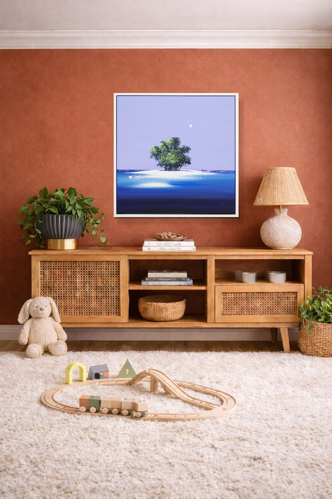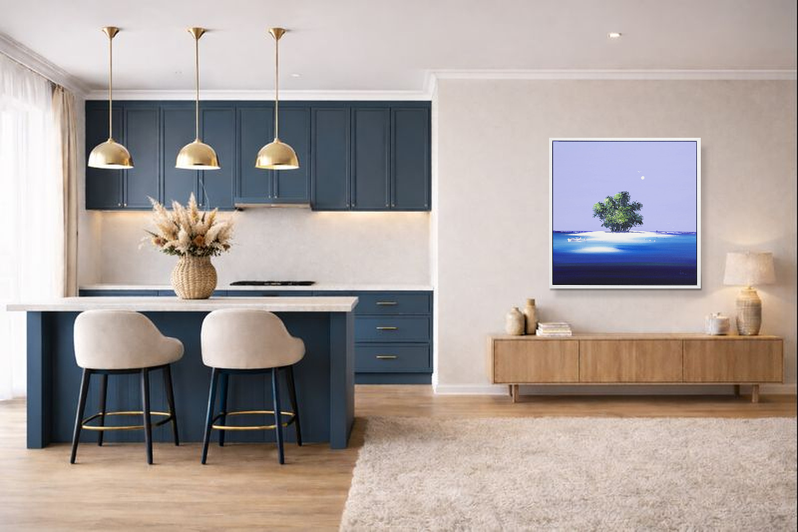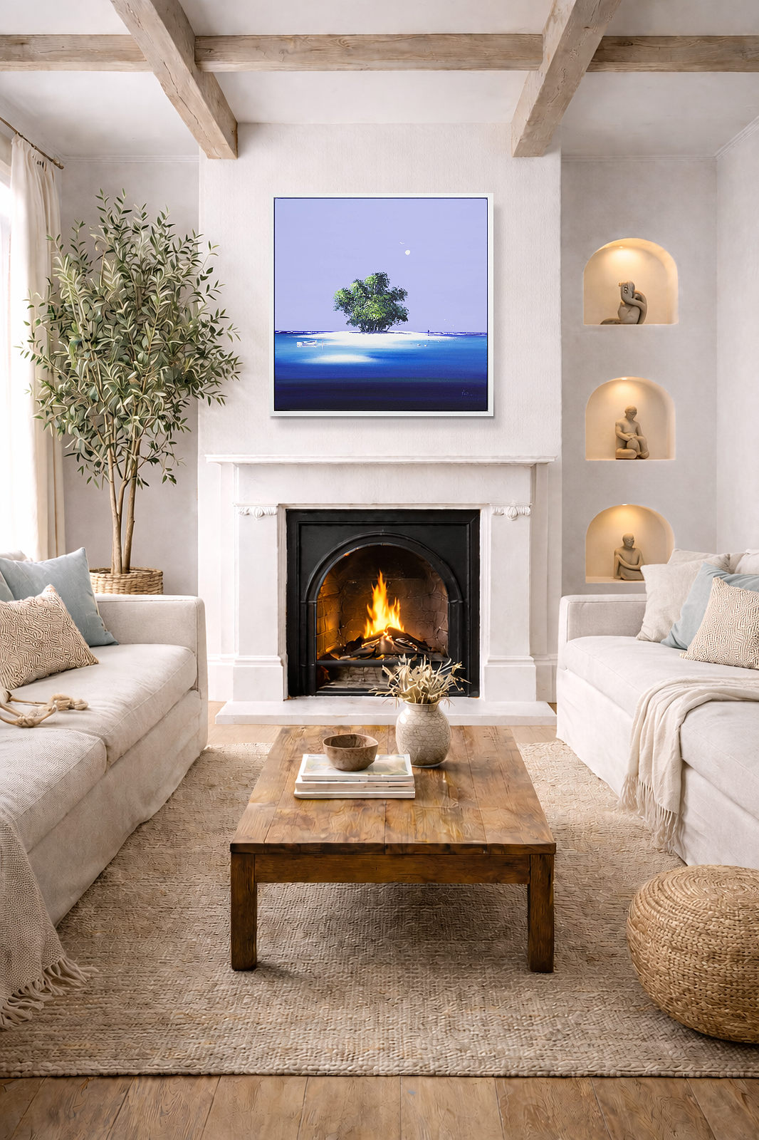 Calming seascape by the acclaimed Brazilian born artist, Henderson Cisz. Painted on a deep edged linen canvas in oils and presented in contemporary white frame as shown.