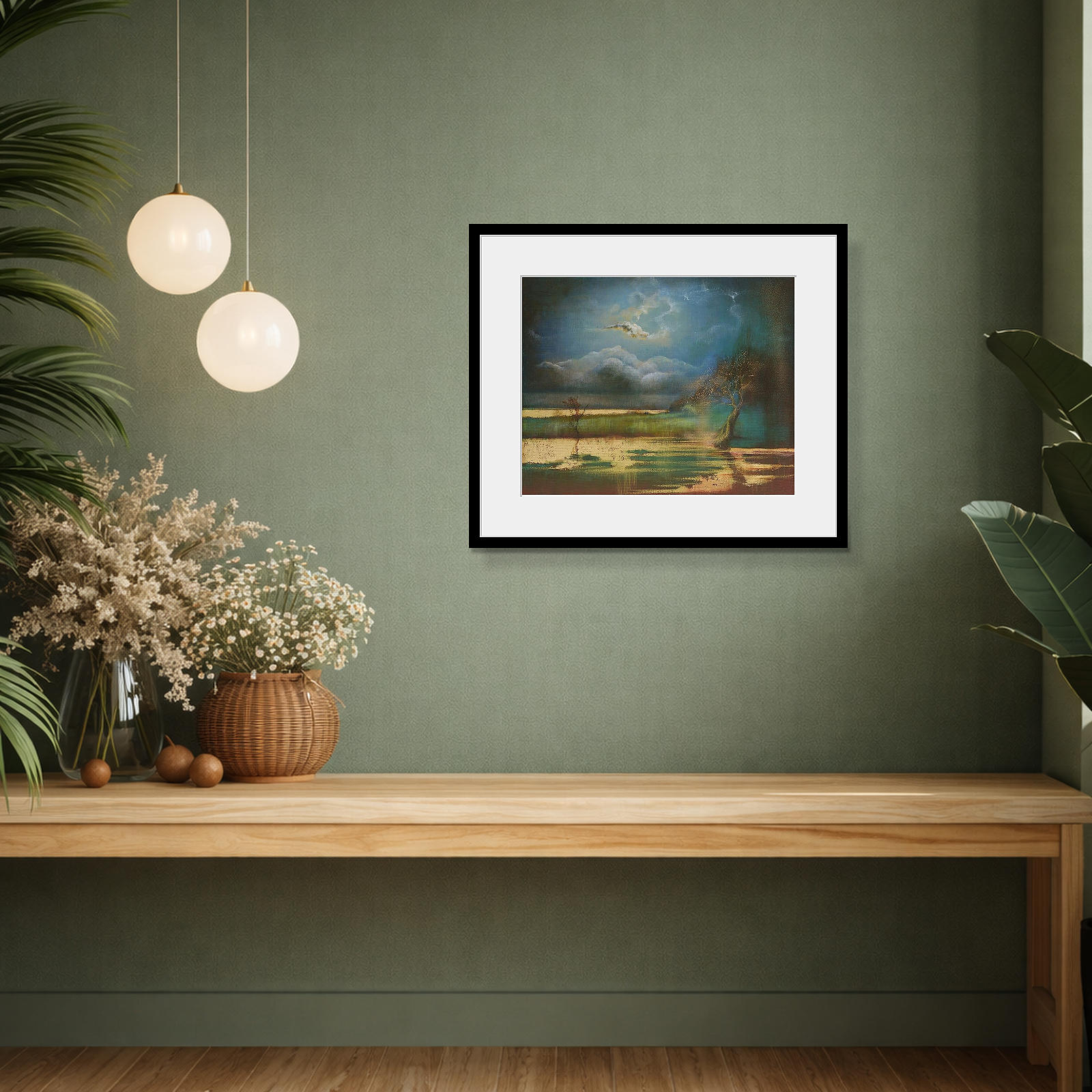 Here we have pictured the artwork in an oak or matt black finish as shown.  For other frame finishes please specify at checkout or get in touch with us.