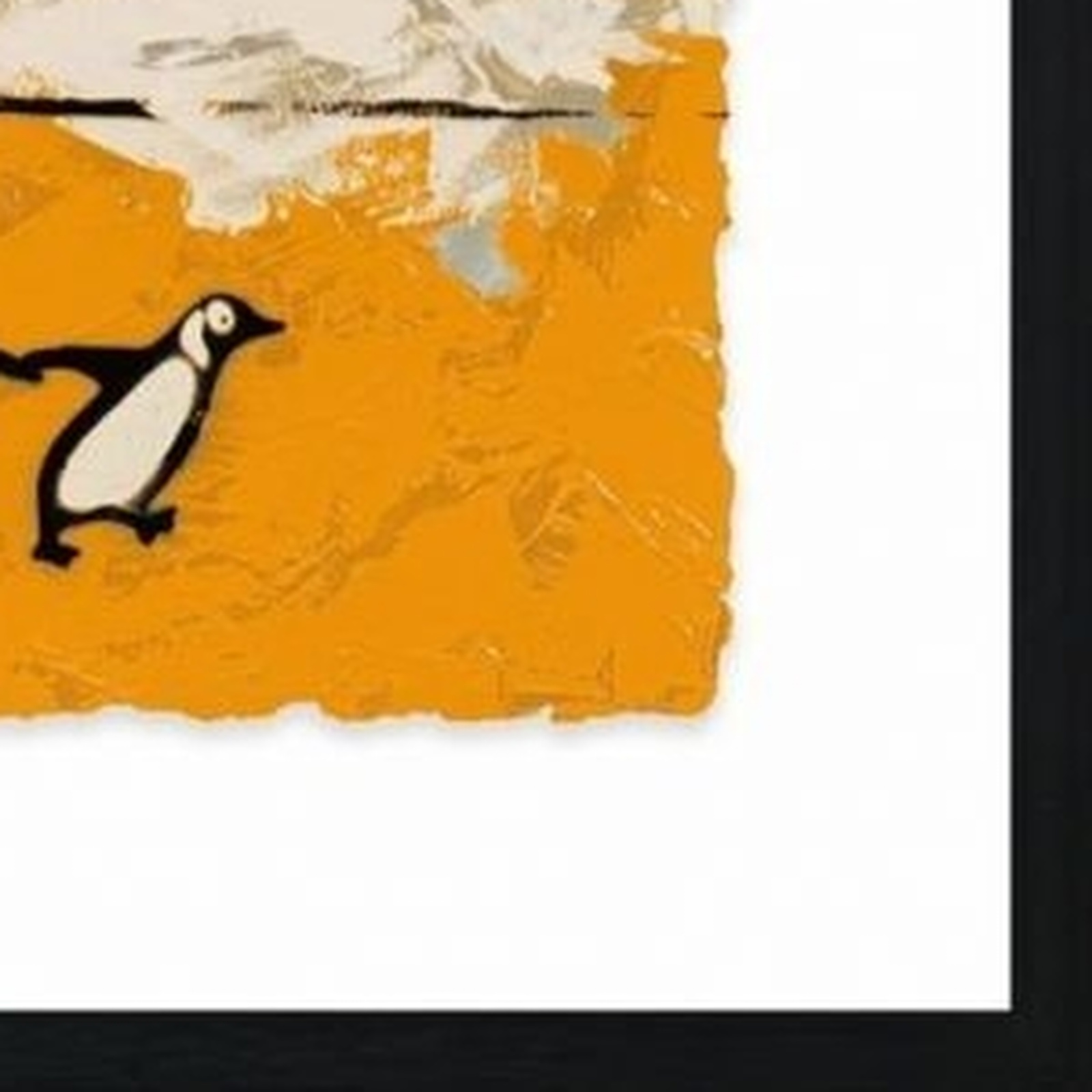 A playful studio edition of 500 with a contemporary and humorous twist by artist Hue Folk. Printed on paper then finished with brushmark and palette knife varnishes. Presented with a deckled edge, framed in a slim black frame as shown and ready to hang.