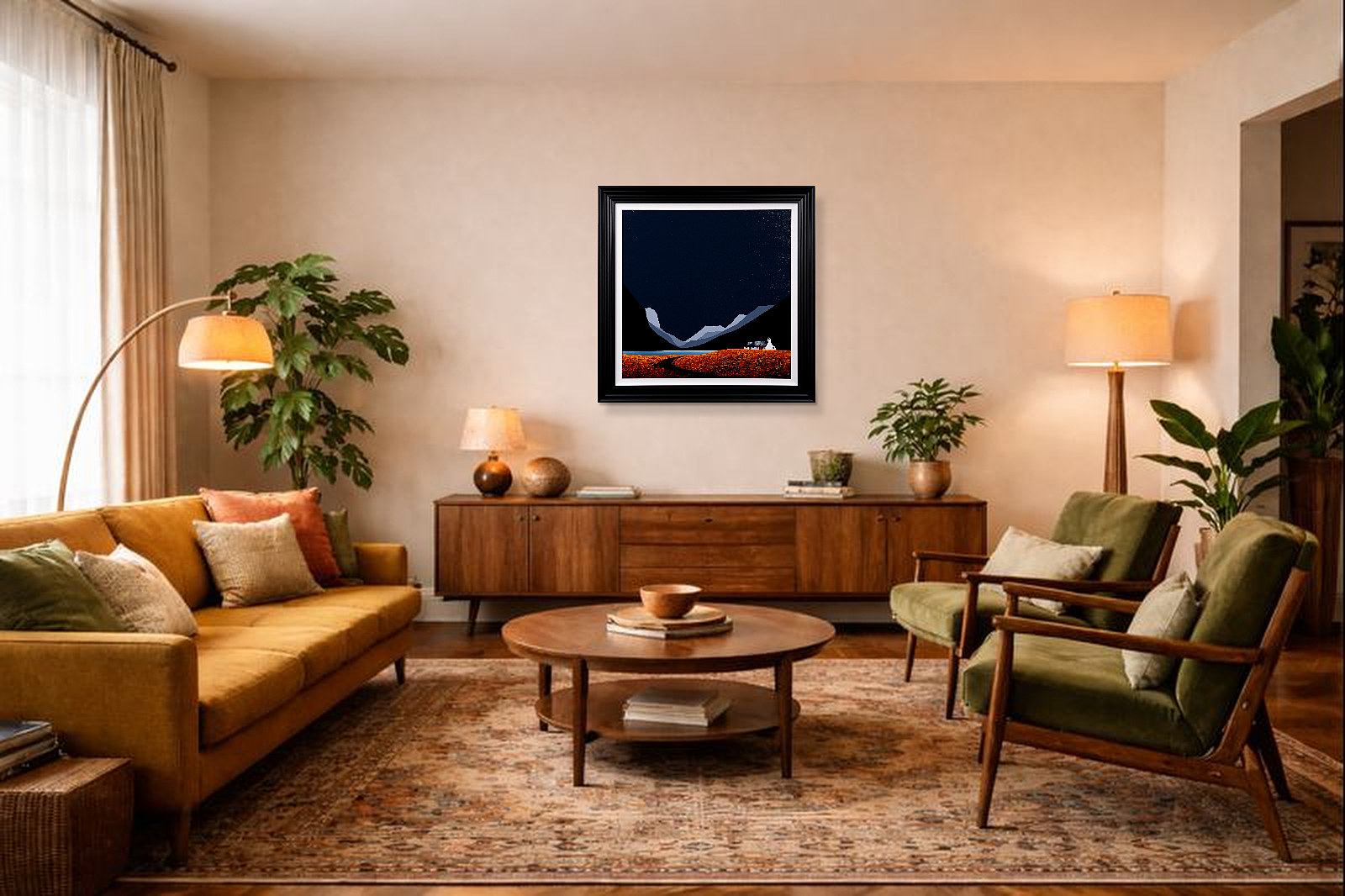 - 2. When prompted, press 'Visualise On Wall' and aim your phone at your floor while it calibrates*. A graphic will appear to help scale and position the artwork. You need to ensure this is correctly aligned to where the base of the wall meets the floor