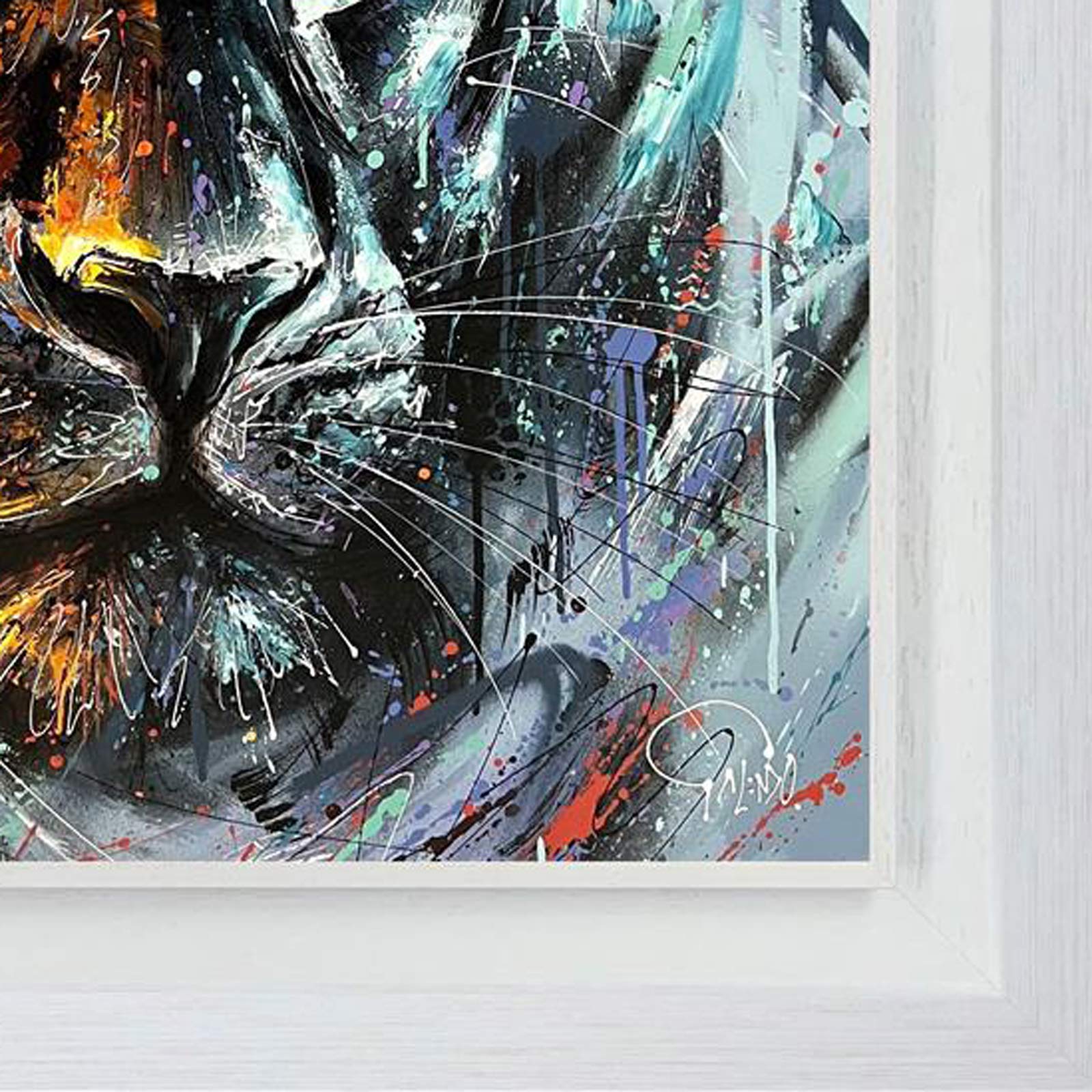 Energised animal artwork by up-and-coming British artist Joe Galindo. This Studio Edition is limited to just 50 copies and supplied framed in white as pictured. Each piece is hand embellished with texture piping in acrylics straight from the tube.