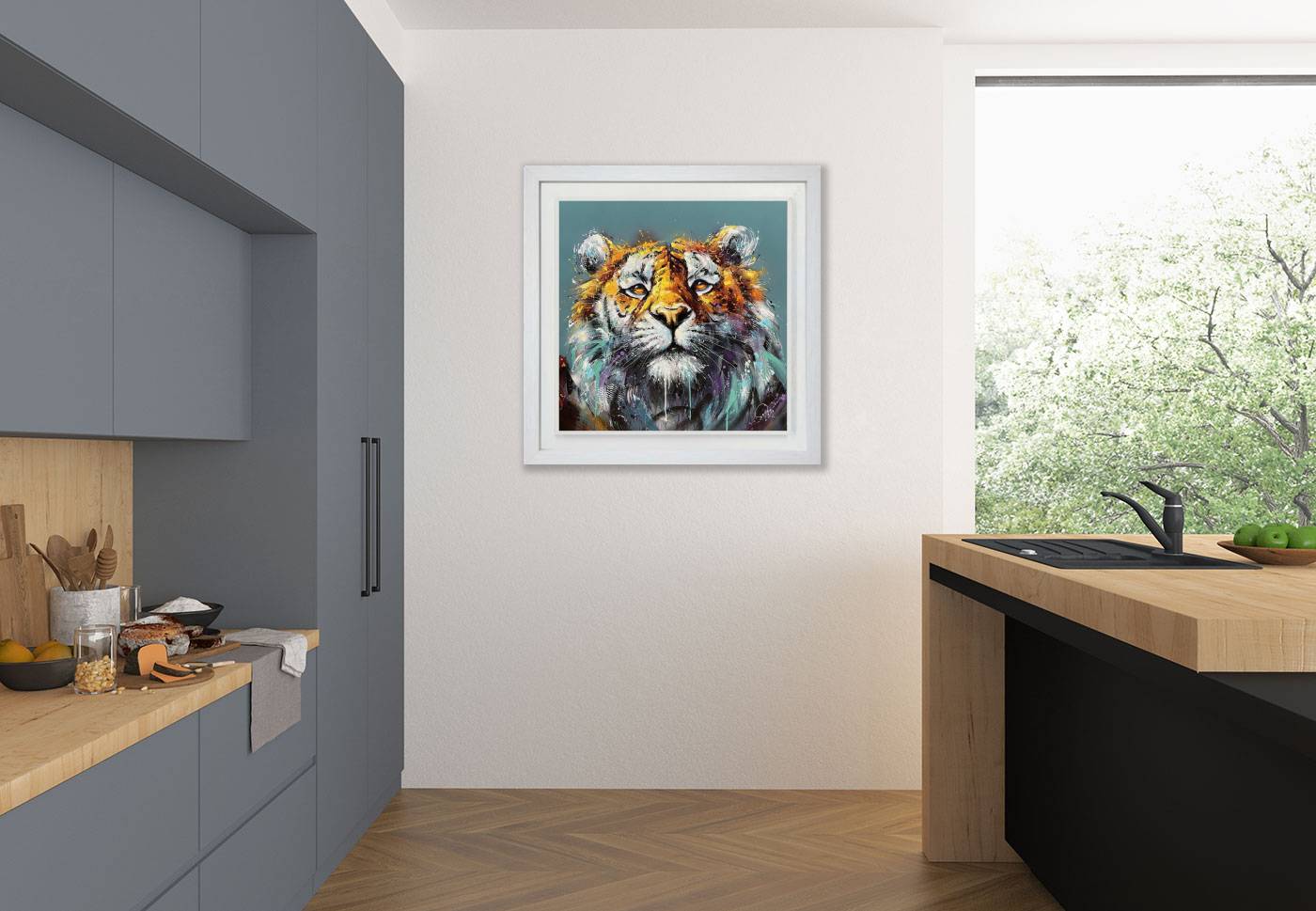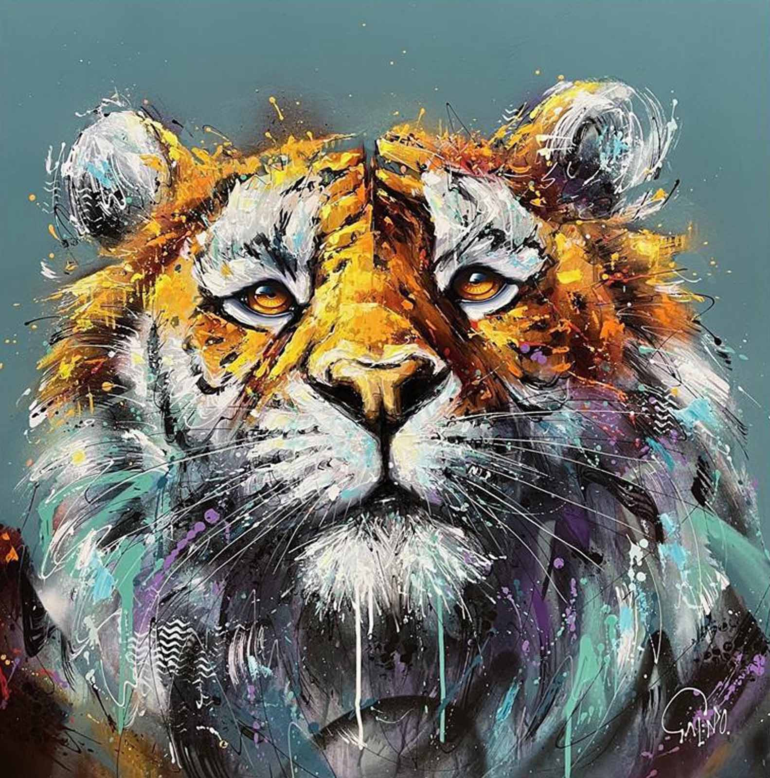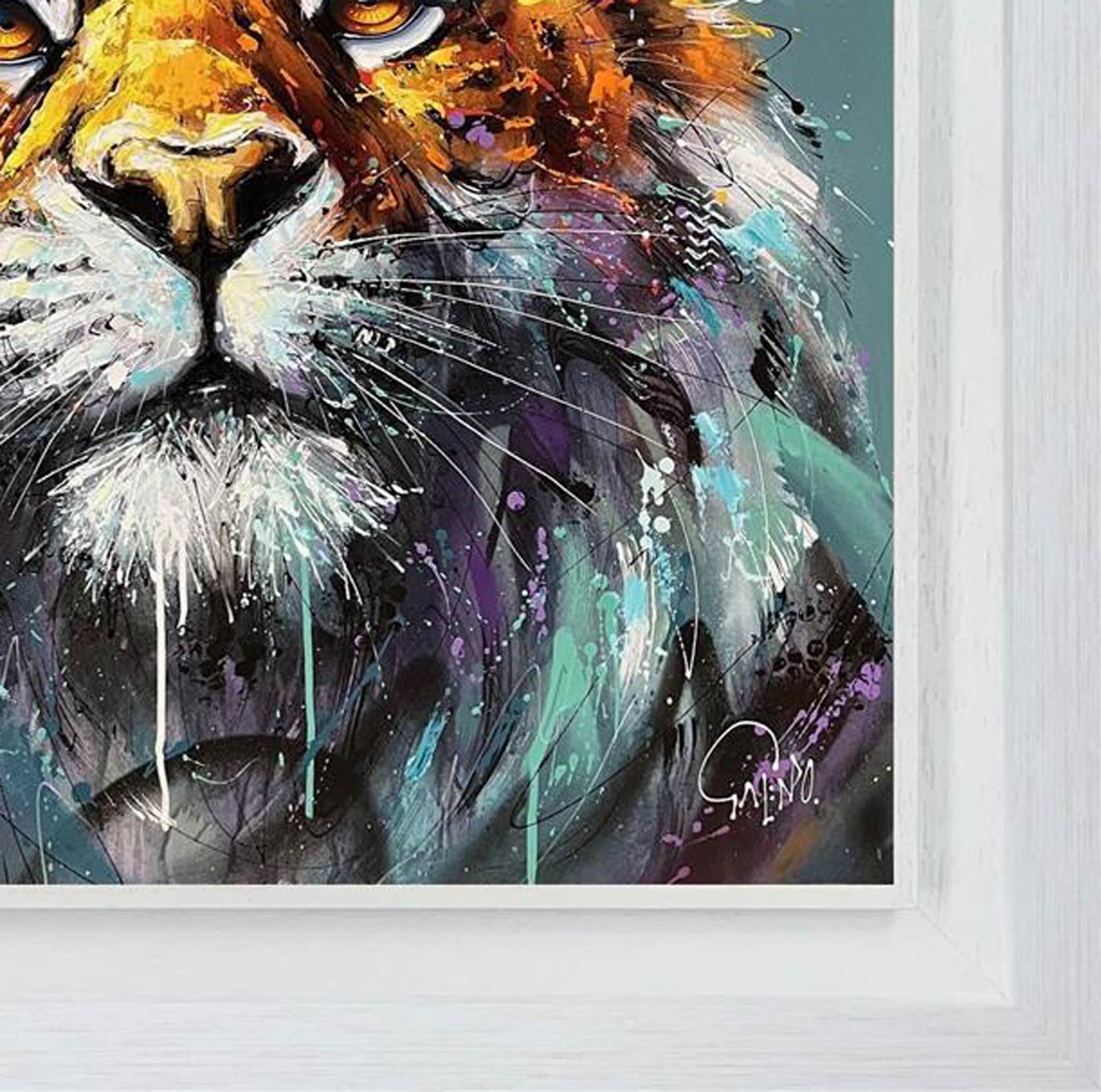 Energised animal artwork by up-and-coming British artist Joe Galindo. This Studio Edition is limited to just 50 copies and supplied framed in white as pictured. Each piece is hand embellished with texture piping in acrylics straight from the tube.