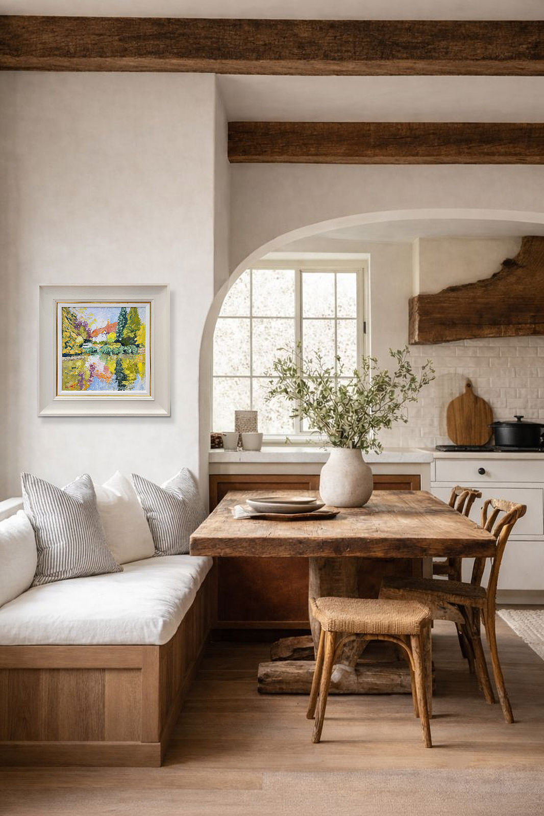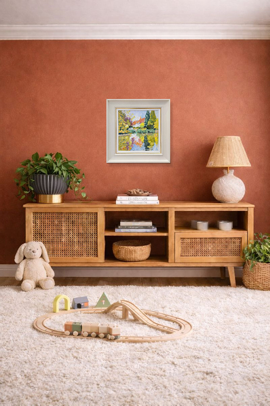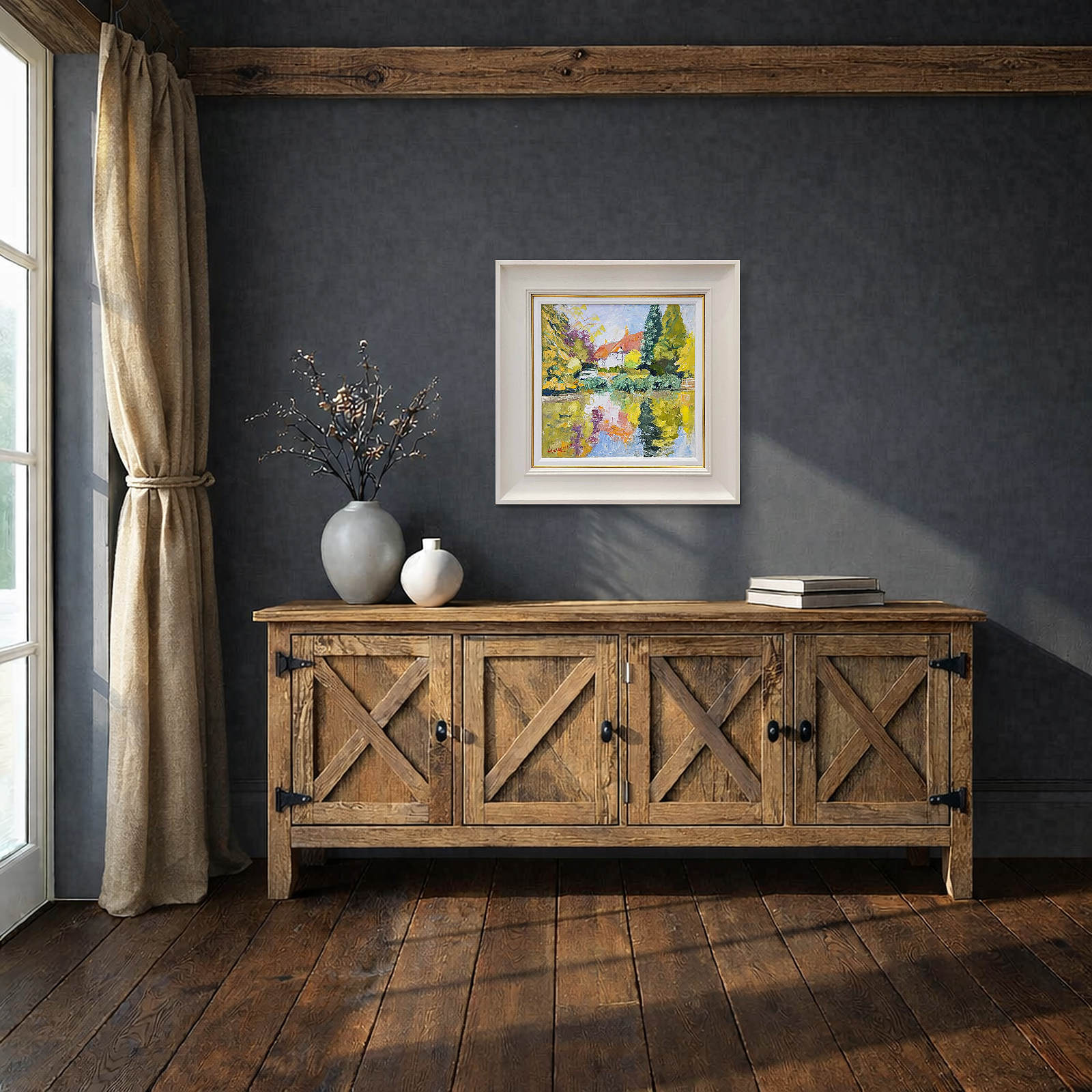 An idyllic scene captured in original oil by John Lawrence. Framed with a golden edged slip and framed as shown.