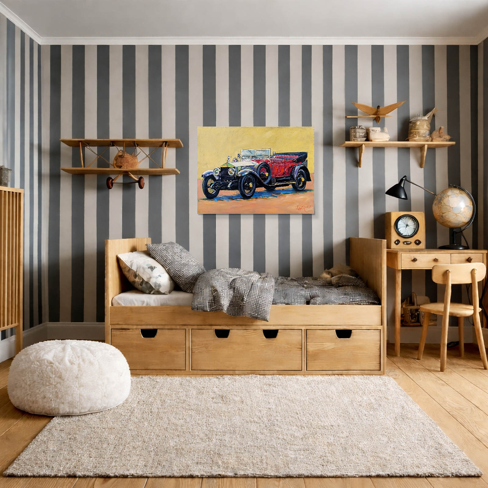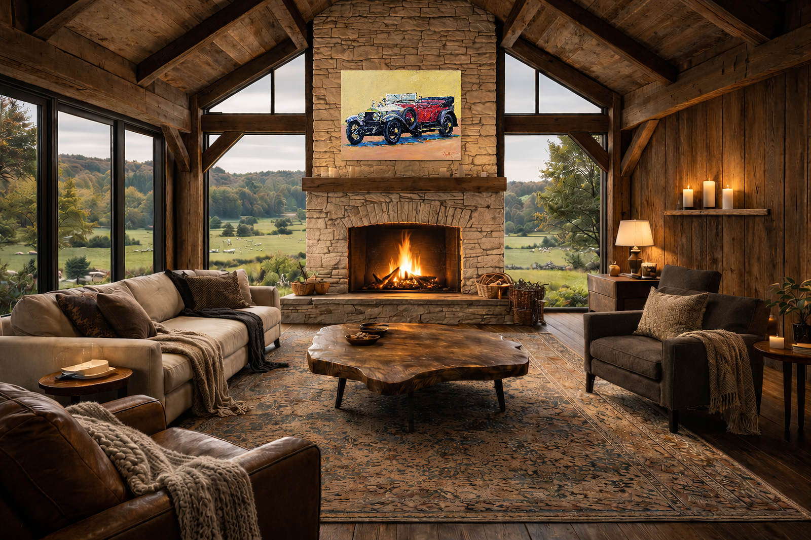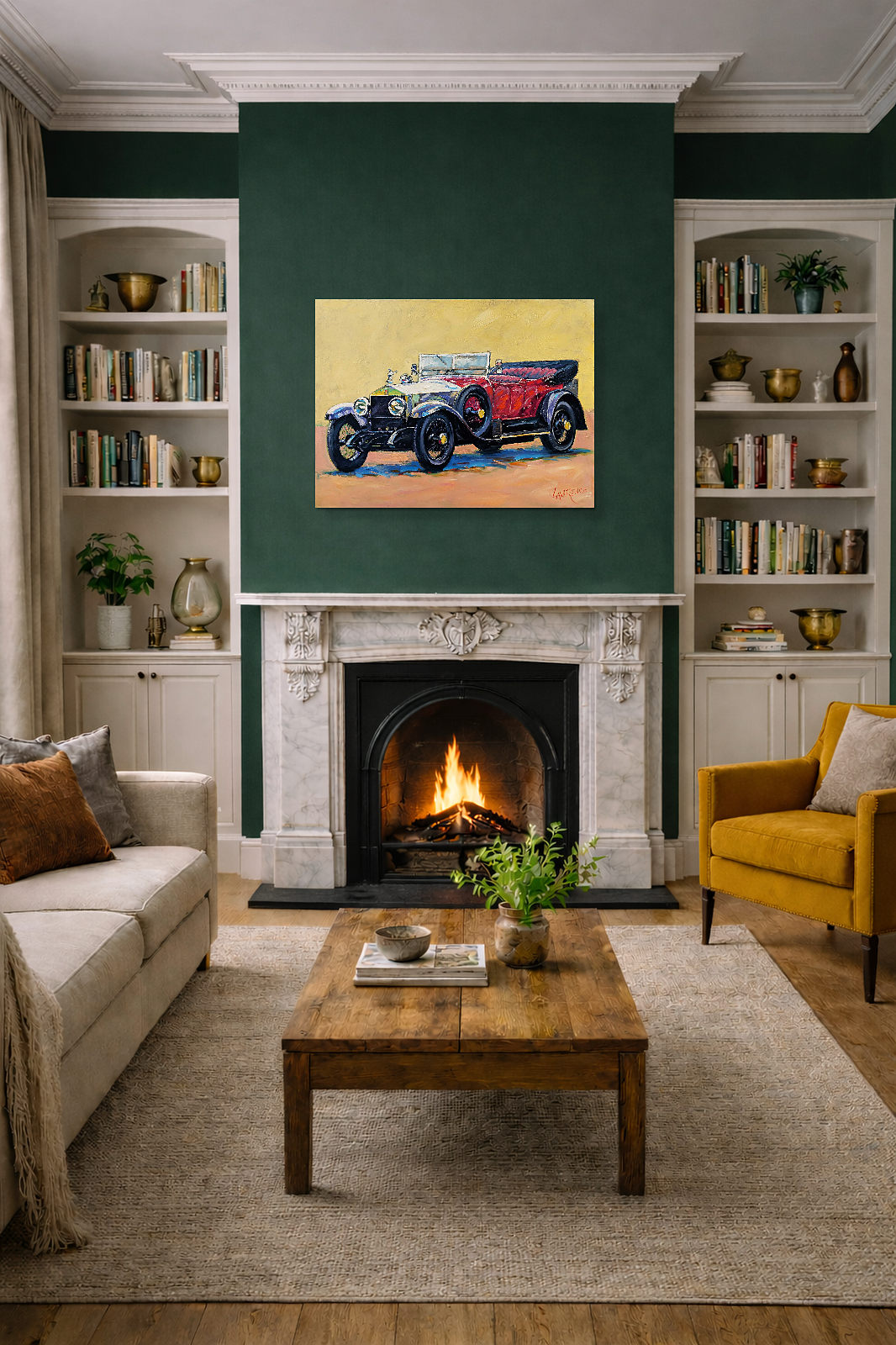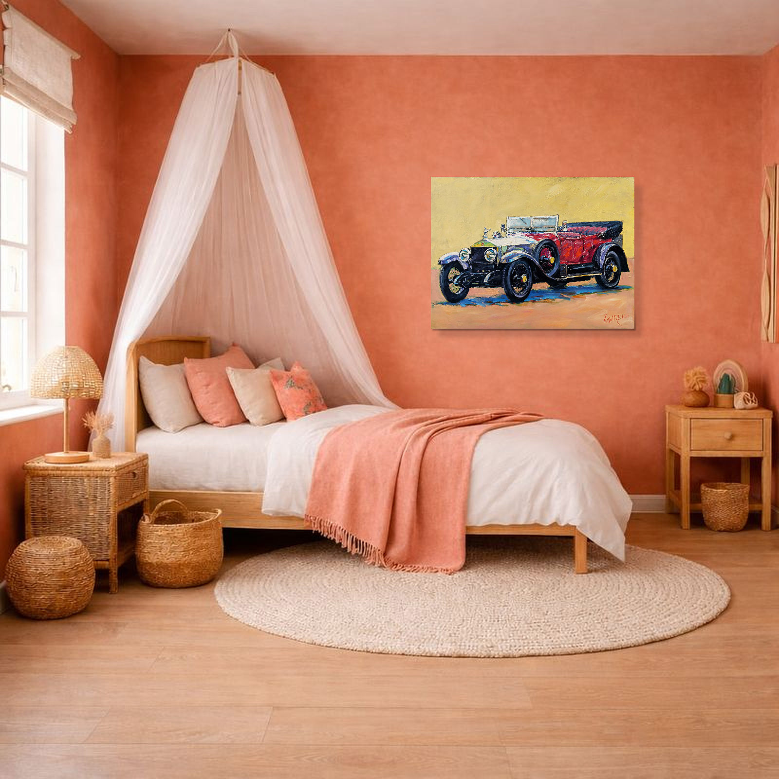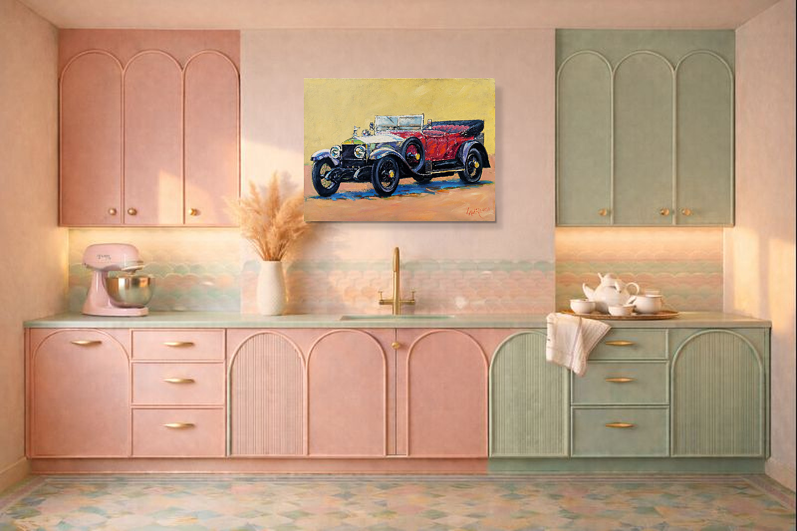 A majestical classic car painted in beautiful form by John Lawrence.
