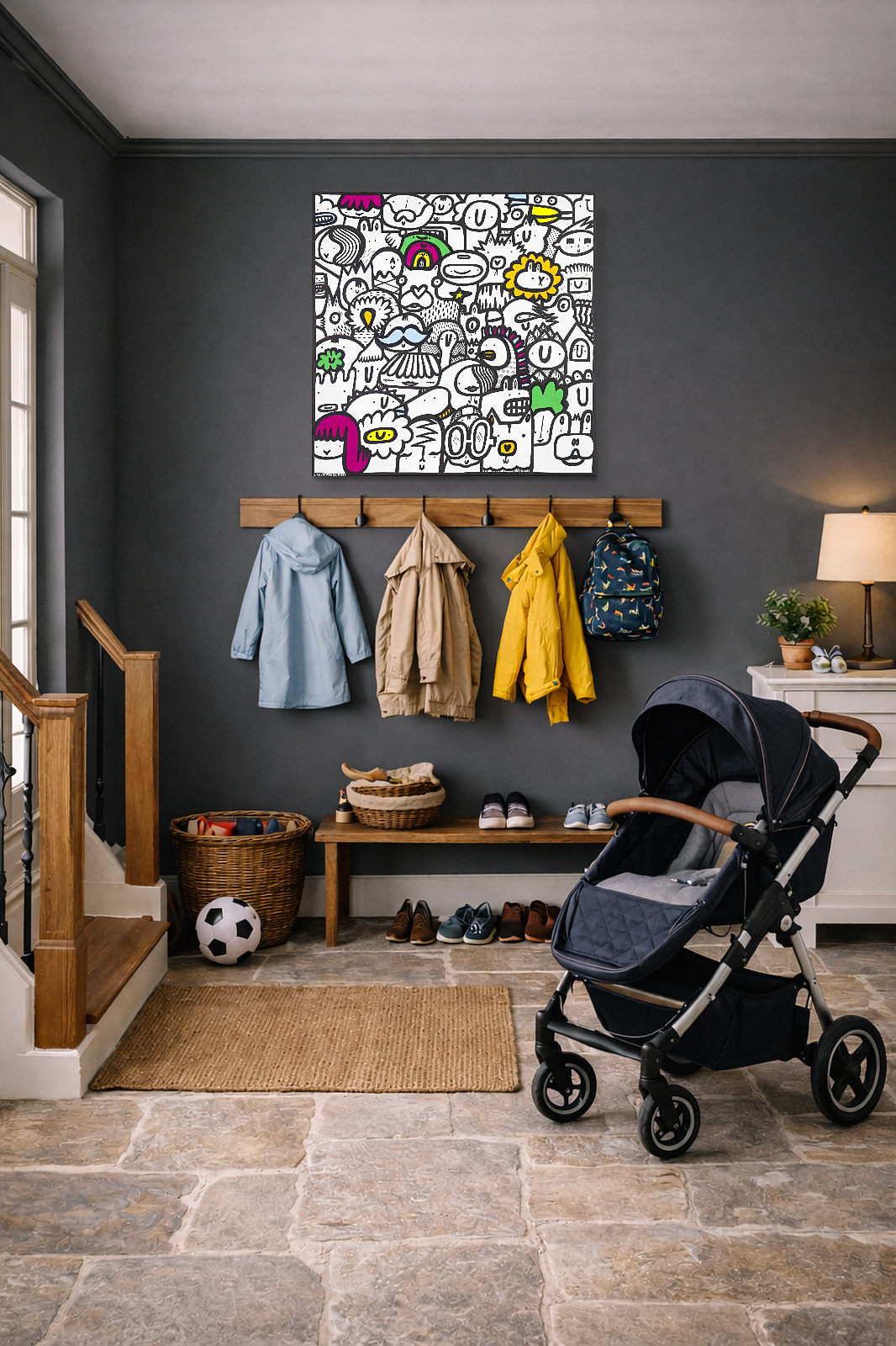 Fun filled original artwork with accents of colour by internationally acclaimed artist Kev Munday. The canvas is ready to be displayed unframed or for framing options please get in touch with us.