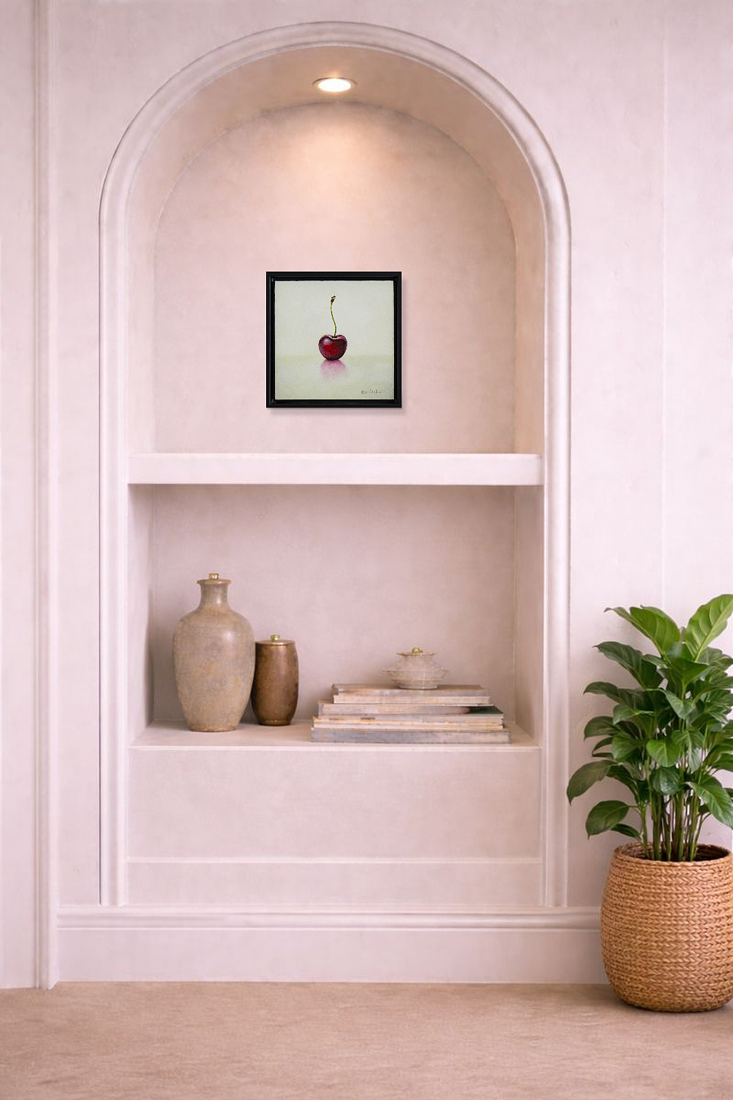 Contemporary still life oil painting set against a soft backdrop by artist Kiss Csaba. Presented in a floating matt black frame as shown and ready to hang.