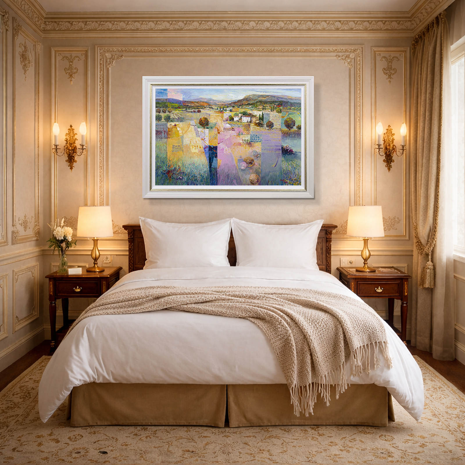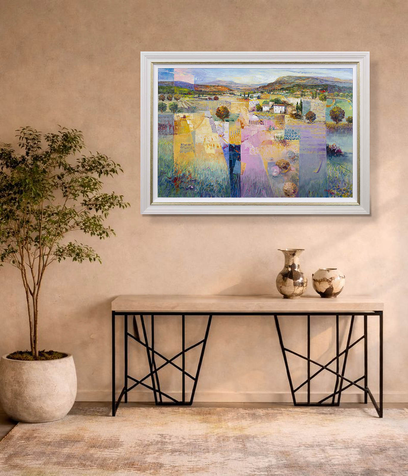 Stunning original oil painting by Italian artist Mario Malfer inspired by the Tuscan hills and surrounding countryside. Presented in a painted frame with golden trim and white slip as shown and ready to hang.