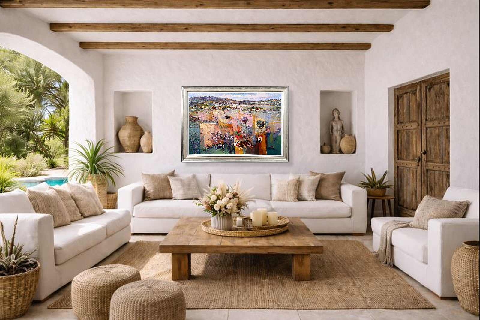 A captivating large-scale original oil painting by Italian artist Mario Malfer inspired by the warmth and natural beauty of rural Tuscany. The broader format enhances the depth, structure and richness of the landscape, making this a superb focal point. Presented in silver frame and white slip as shown and ready to hang.