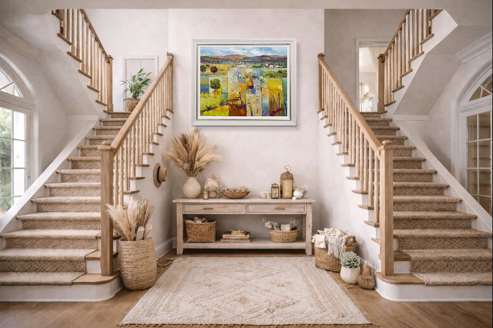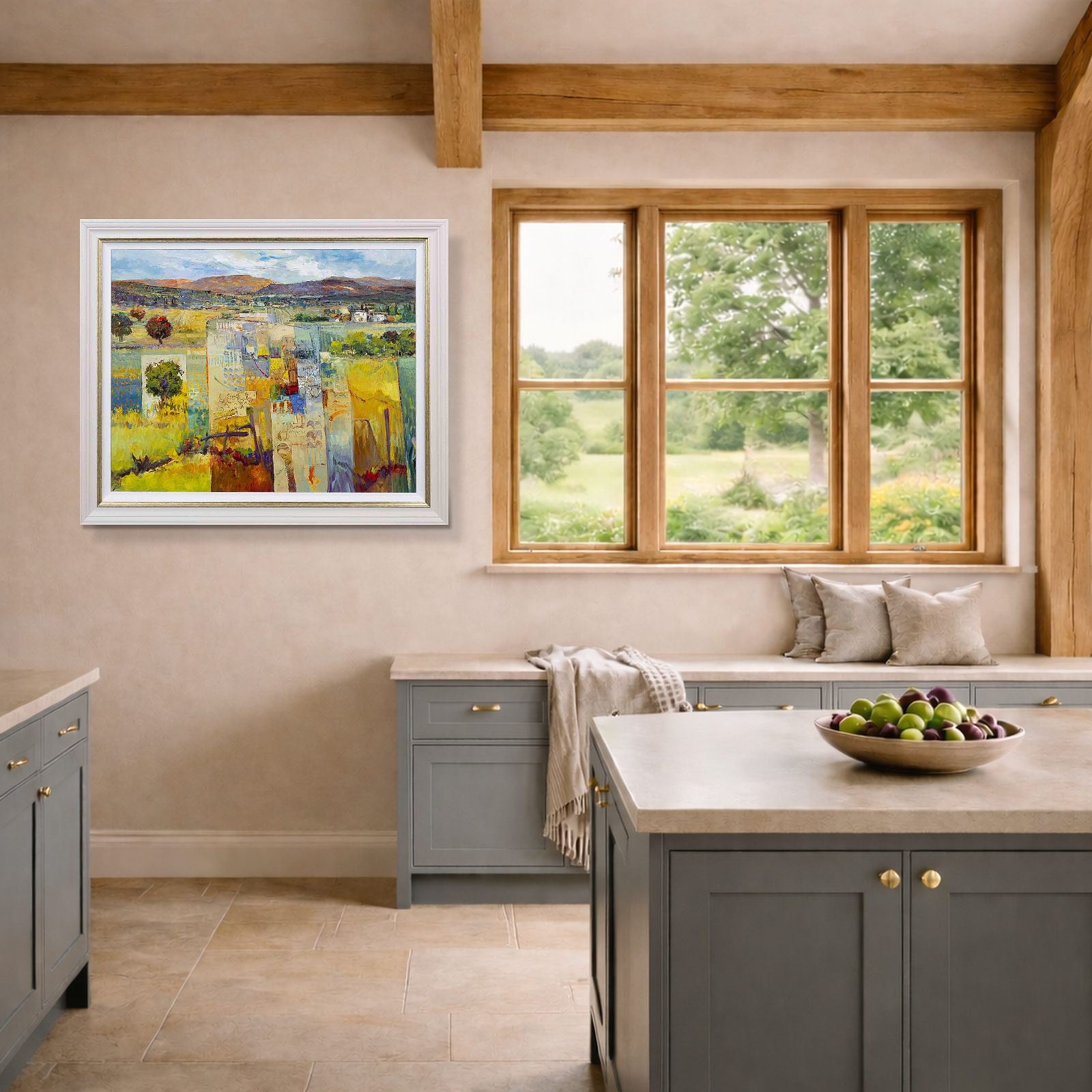 Stunning original oil painting by Italian artist Mario Malfer inspired by the Tuscan hills and surrounding countryside. Presented in a painted frame with golden trim and white slip as shown and ready to hang.