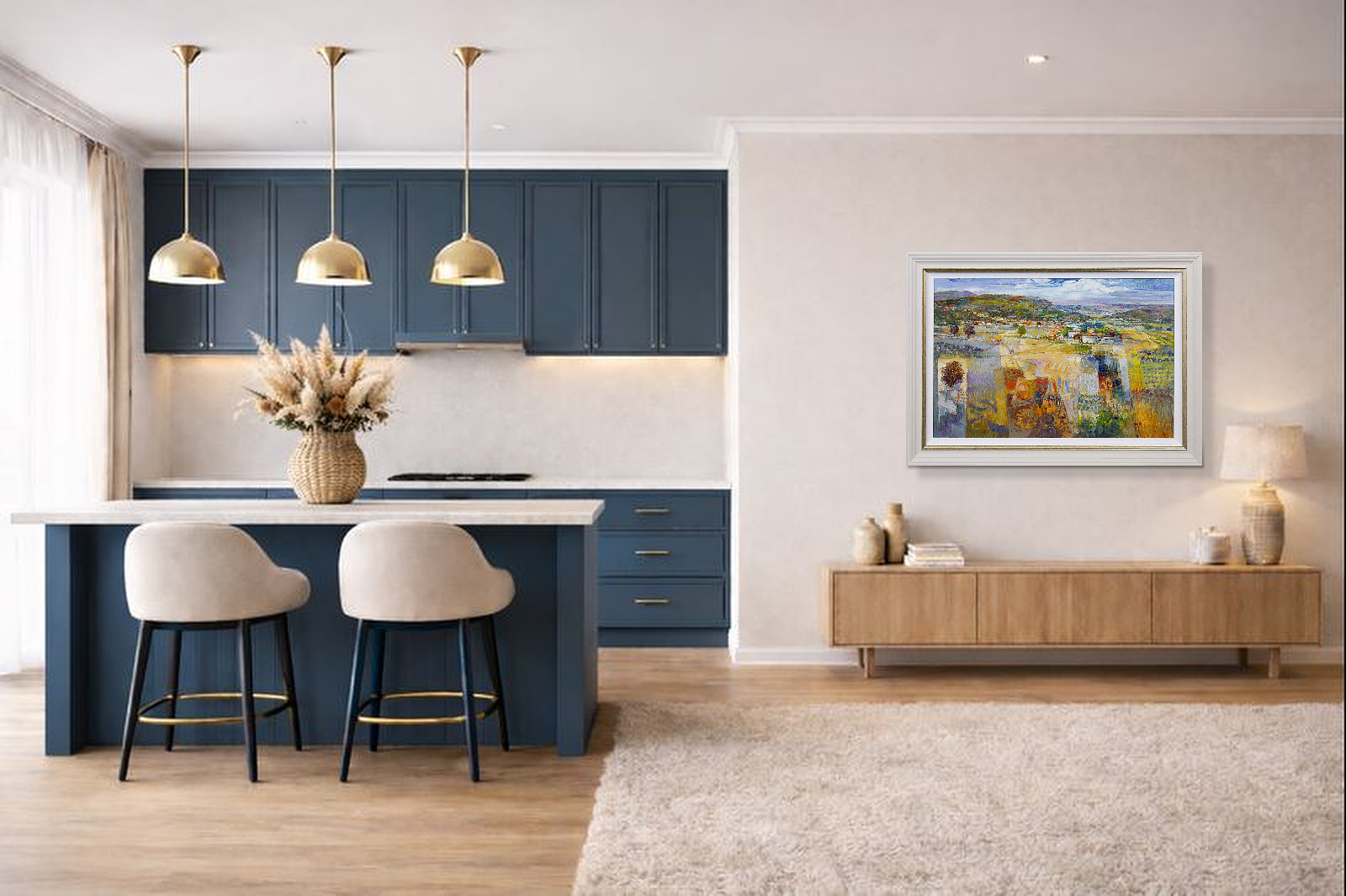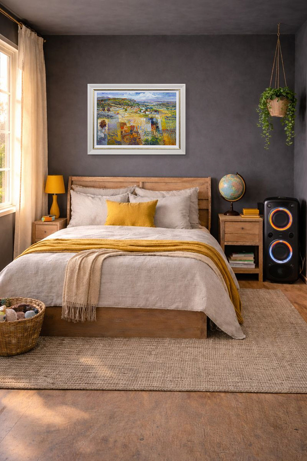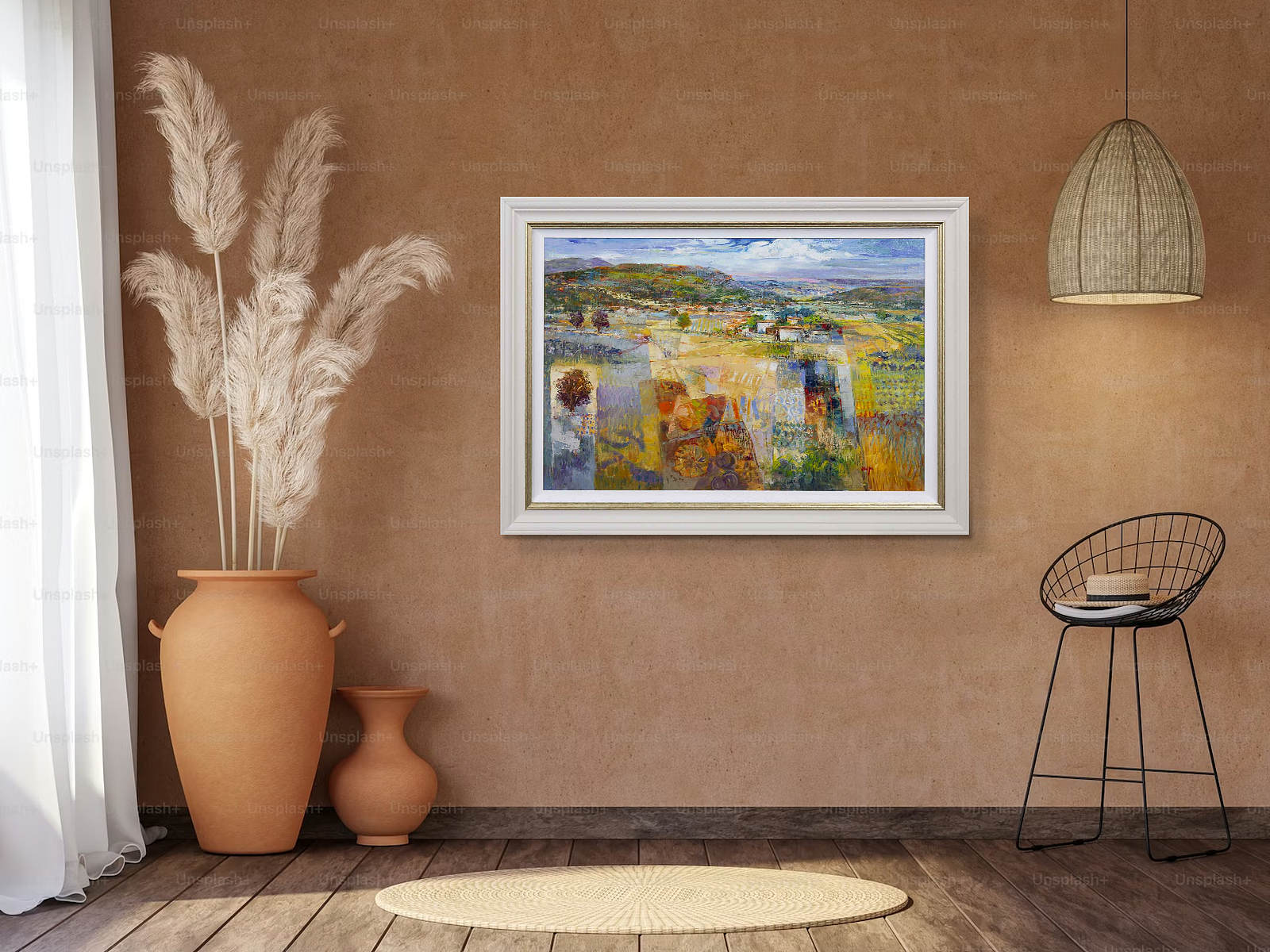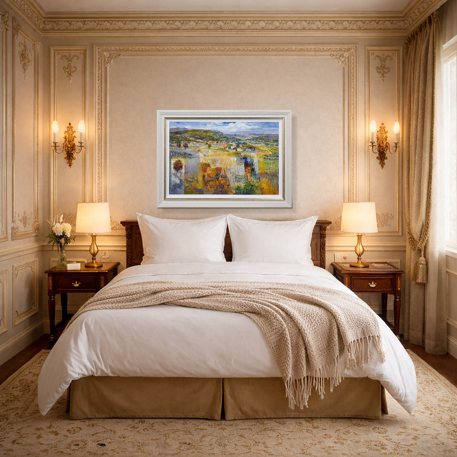 Stunning original oil painting by Italian artist Mario Malfer inspired by the Tuscan hills and surrounding countryside. Presented in a painted frame with golden trim and white slip as shown and ready to hang.