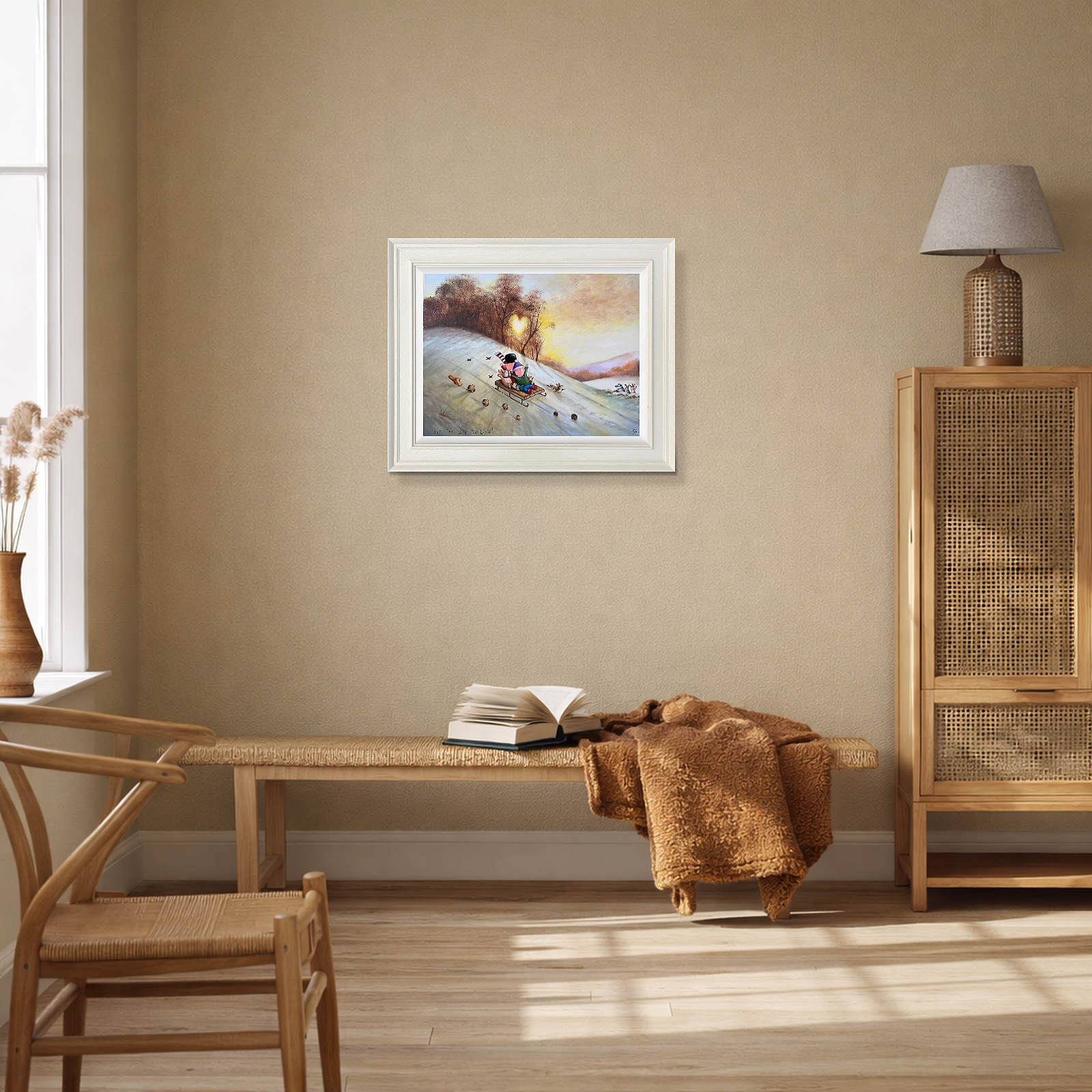 Romantic original oil painting by the popular artist Michael Abrams. Presented in a painted finish neutral tone frame as shown and ready to hang on the wall.